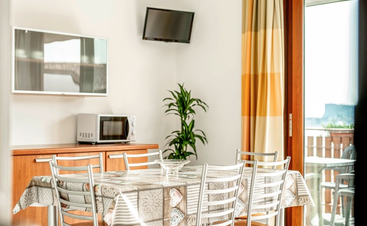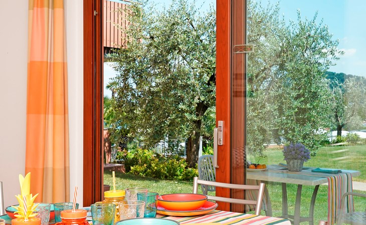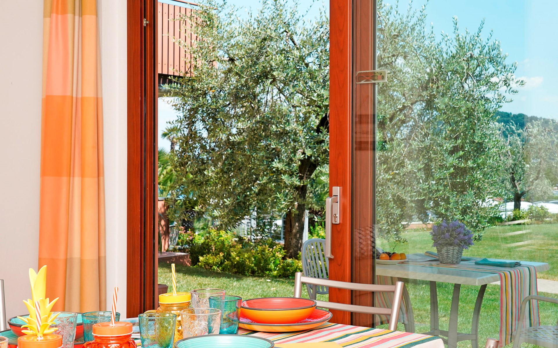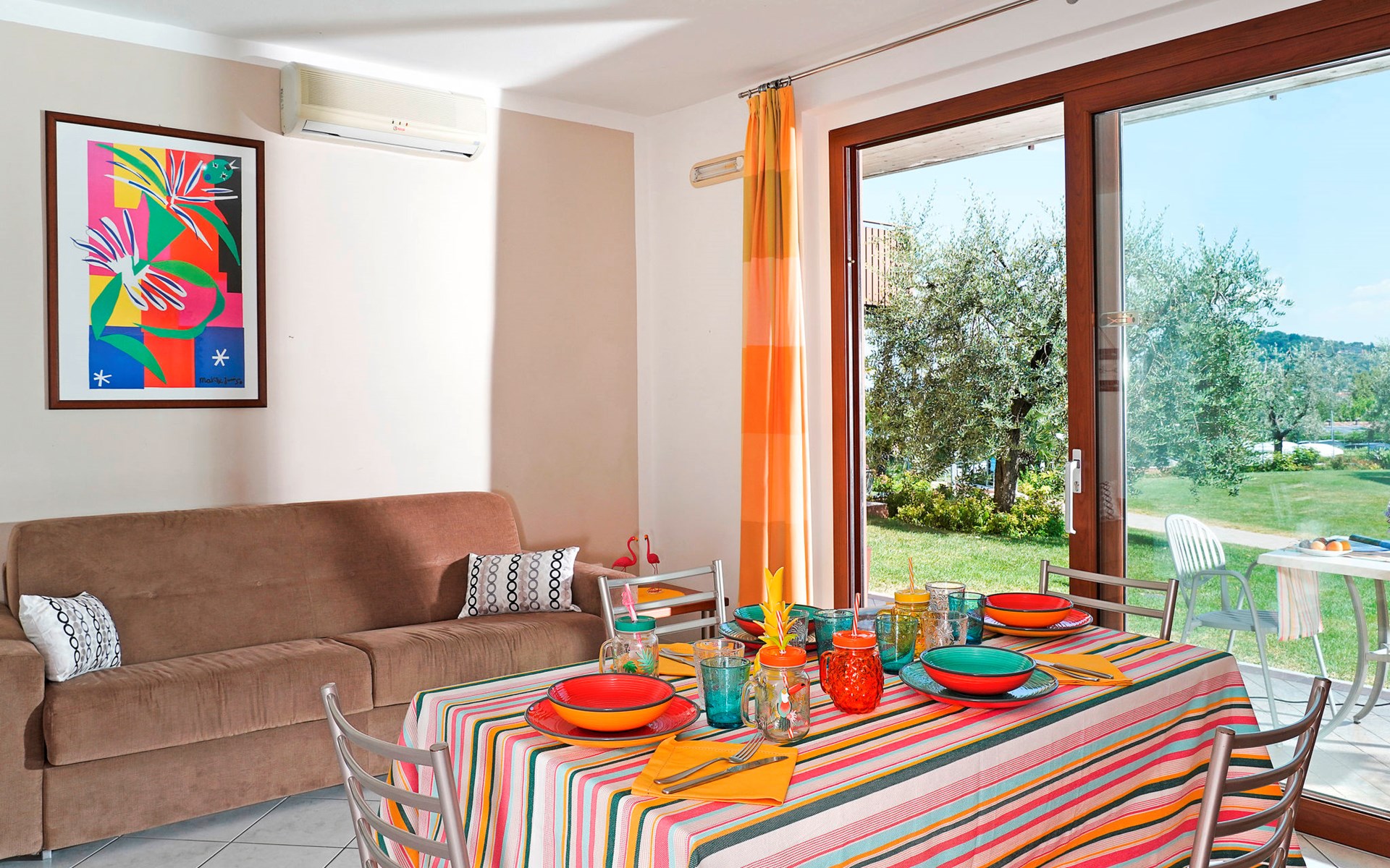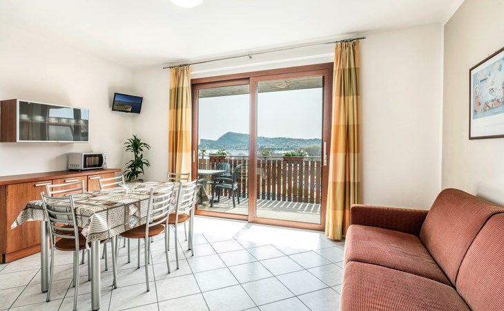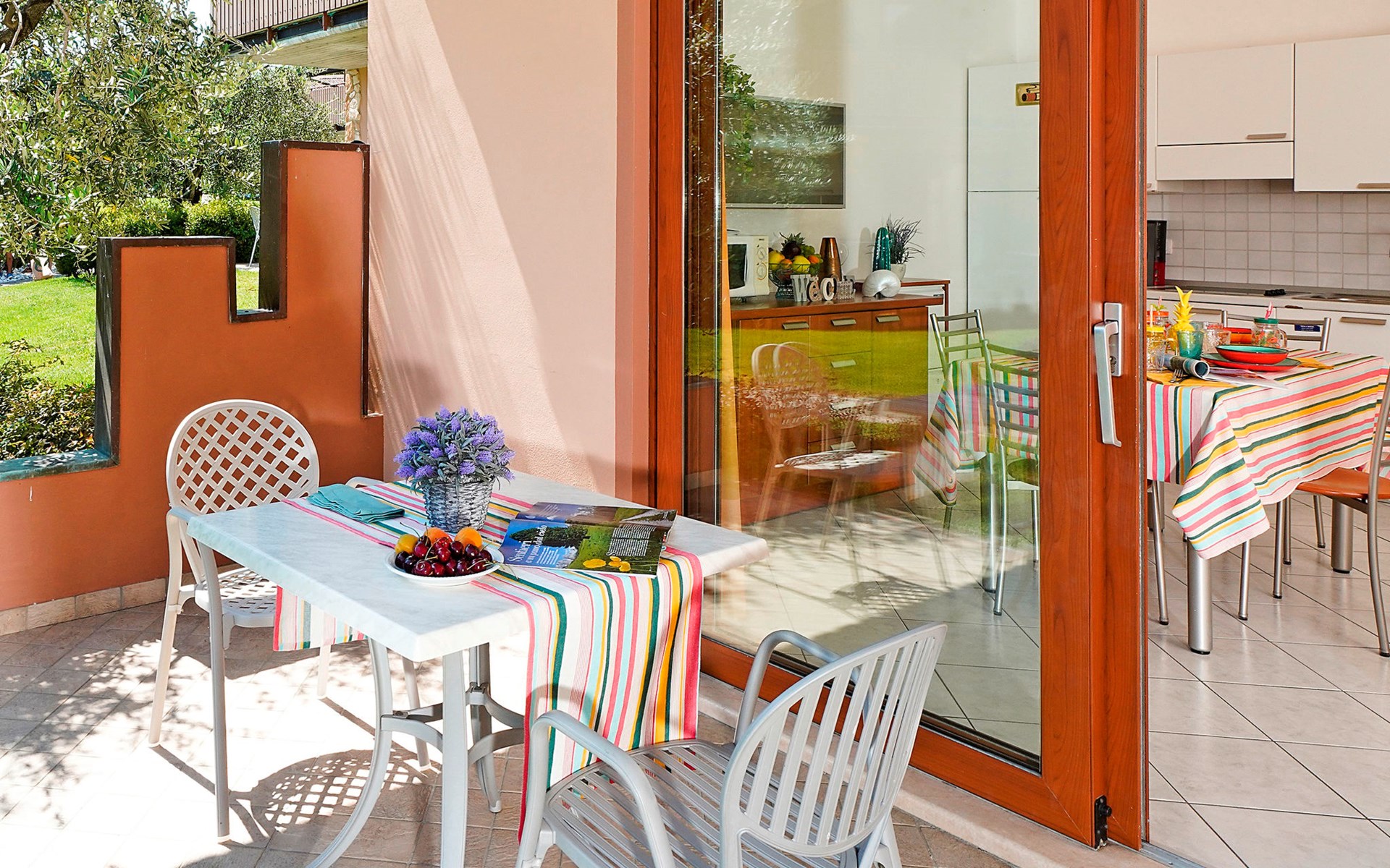 Modern resort "Onda Blu", 2 storeys. 32 houses in the resort. 80 apartments in the residence. On the outskirts, 800 m from the centre of Pieve di Manerba, 200 m from the lake, 200 m from the beach, direct access to the beach. For shared use: property 30'000 m2 (fenced), well-kept terraced garden lawn and trees, swimming pool (25 x 10 m, seasonal availability: 01.Jan. - 31.Dec.). WC in the pool area, children's pool, outdoor shower, children's playground. In the complex: reception, restaurant, bar, WiFi (extra). Table tennis (extra). Washing machine (for shared use, extra), bicycle rental. Breakfast and half board possible on request (extra). Parking (limited number of spaces) on the premises. E-charging station. Shop 800 m, bus stop 230 m, railway station "Desenzano del Garda" 16 km, pebble beach 200 m. Golf course (27 hole) 6 km. Nearby attractions: Porto Torchio 2 km, Manerba del Garda 3 km, Salò 9 km, Desenzano 14 km, Brescia 40 km. Please note: suitable for families. Private mooring (extra) on request.