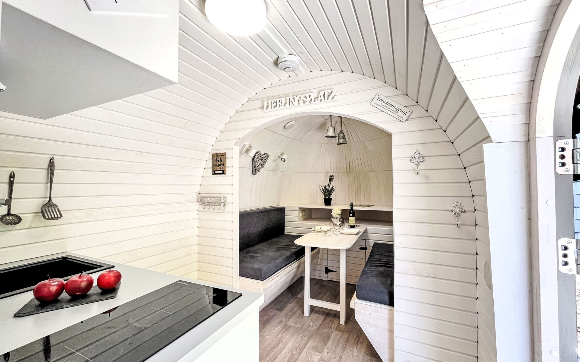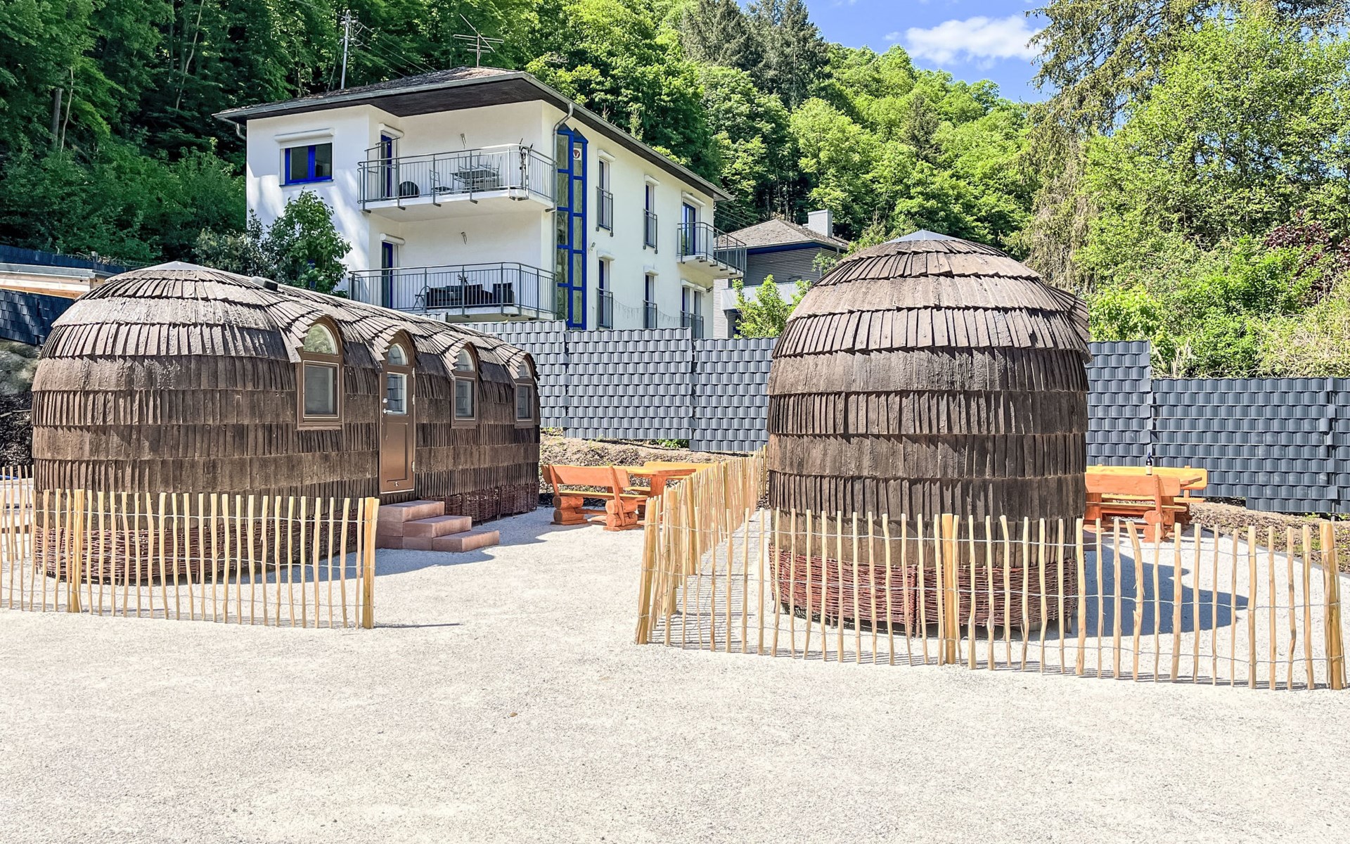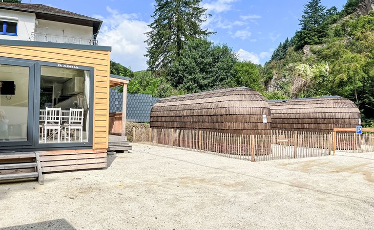 Small, beautiful resort "Tinyhäuser Vierseenblick". 4 houses in the resort. 2 km from the centre of Boppard am Rhein, in a quiet position, 200 m from the edge of the forest. Parking at the house. Shop 2 km, supermarket 2 km, restaurant 950 m, bakery 1.9 km, café 1.8 km, 20 minute walk to the centre, bus stop "Bahnhof Boppard" 1.8 km, railway station "Bahnhof Boppard" 1.8 km, ferry "Boppard-Filsen" 2.2 km. Golf course (18 hole) 12 km, walking paths from the house 200 m, cycle lane 1 km, chair lift 850 m, children's playground 150 m. Nearby attractions: Mittelrhein Klettersteig 1 km, Feindliche Brüder - Höhenburg Kamp-Bornh 10 km, Marksburg - Höhenburg Braubach 35 km, Loreley 20 km, Vierseenblick mit Sessellift 1 km, Bopparder Hamm - Weingebiet 2 km. Well-known lakes can easily be reached: Mittelrheinufer 2 km. Hiking paths: Wanderweg zum Vierseenblick 260 m, Traumschleife Elfenlay 1.5 km, Rheinsteig 3.5 km. Please note: car recommended. The complex has night security. The tiny houses are located at the "Vierseenblick" hiking parking lot, just steps from hiking trails around the Bopparder Hamm. Please note: TV and Wi-Fi are not available.