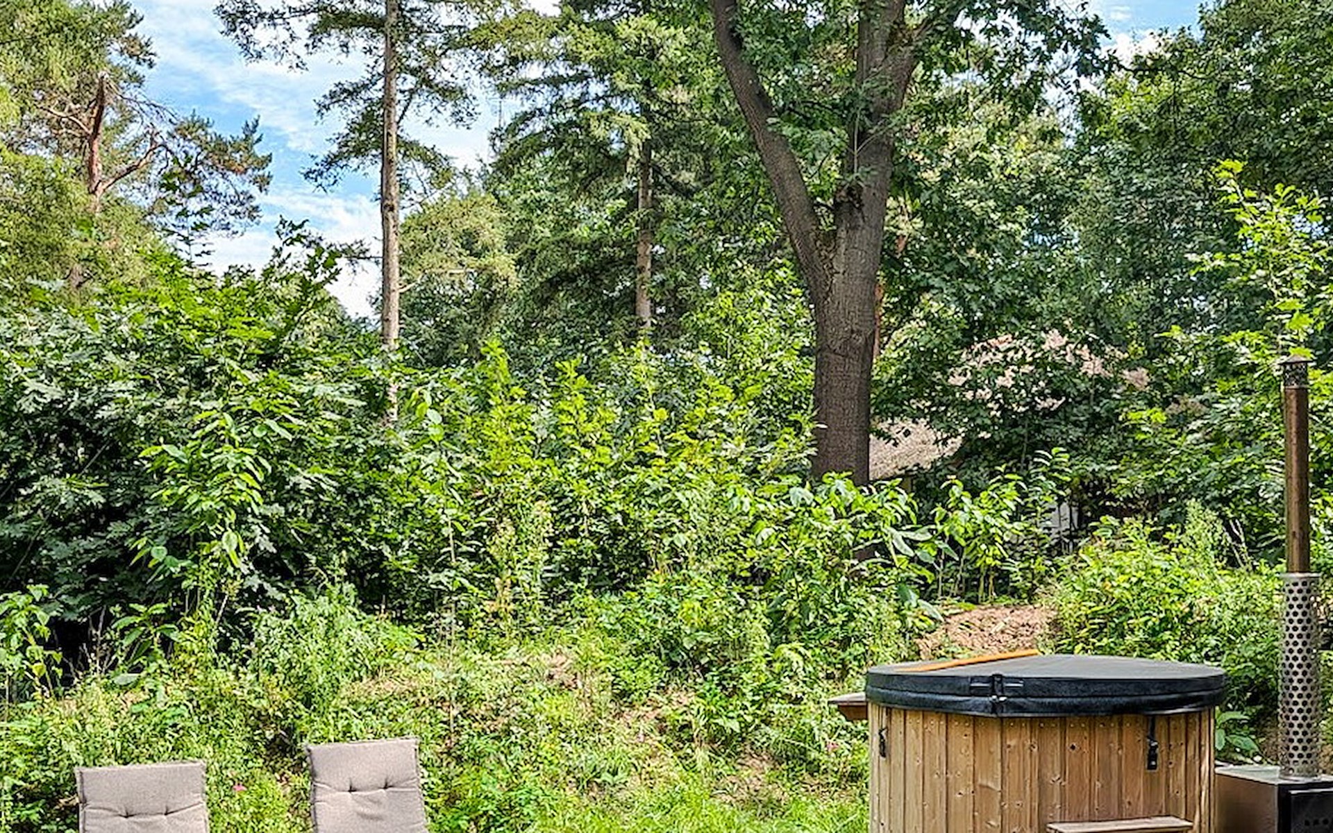 Outdoors, you will find a garden with an outdoor sauna and a wood-fired hot tub. There is also a furnished terrace with a lounge set, picnic table and parasol.