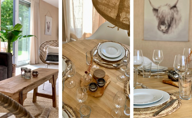 The holiday home is tastefully and attractively furnished. The cozy and comfortable sofa in the living room seats three people. Two comfortable chairs complete the seating area. The dining room has a large dining table with five chairs. The entire accommodation is comfortably heated by underfloor heating.