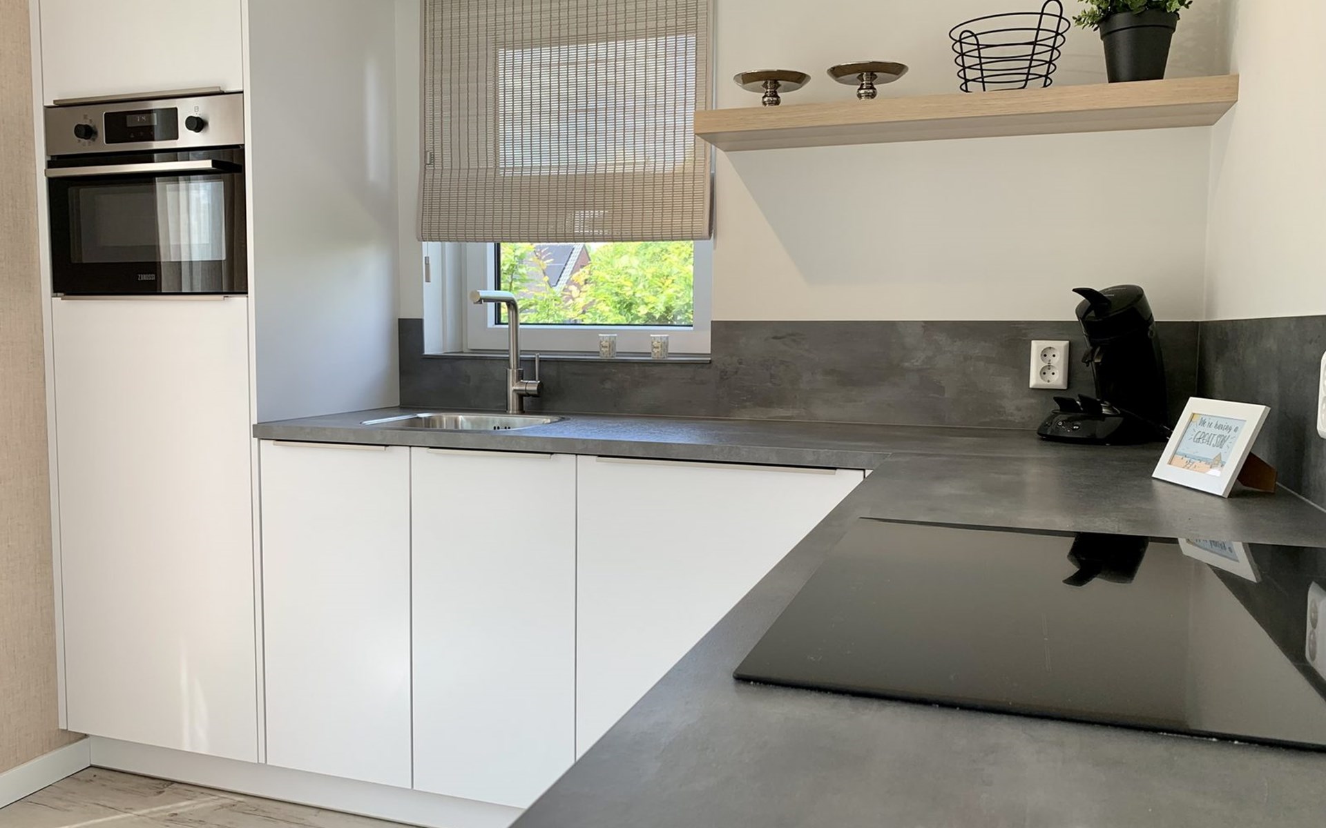 The modern and well-equipped kitchen is fully equipped with appliances. There is a dishwasher, combination microwave oven, filter coffee maker, citrus juicer, toaster, kettle, refrigerator with freezer compartment, induction hob, plenty of cutlery and a large selection of dishes. A washing machine is located in a separate room.