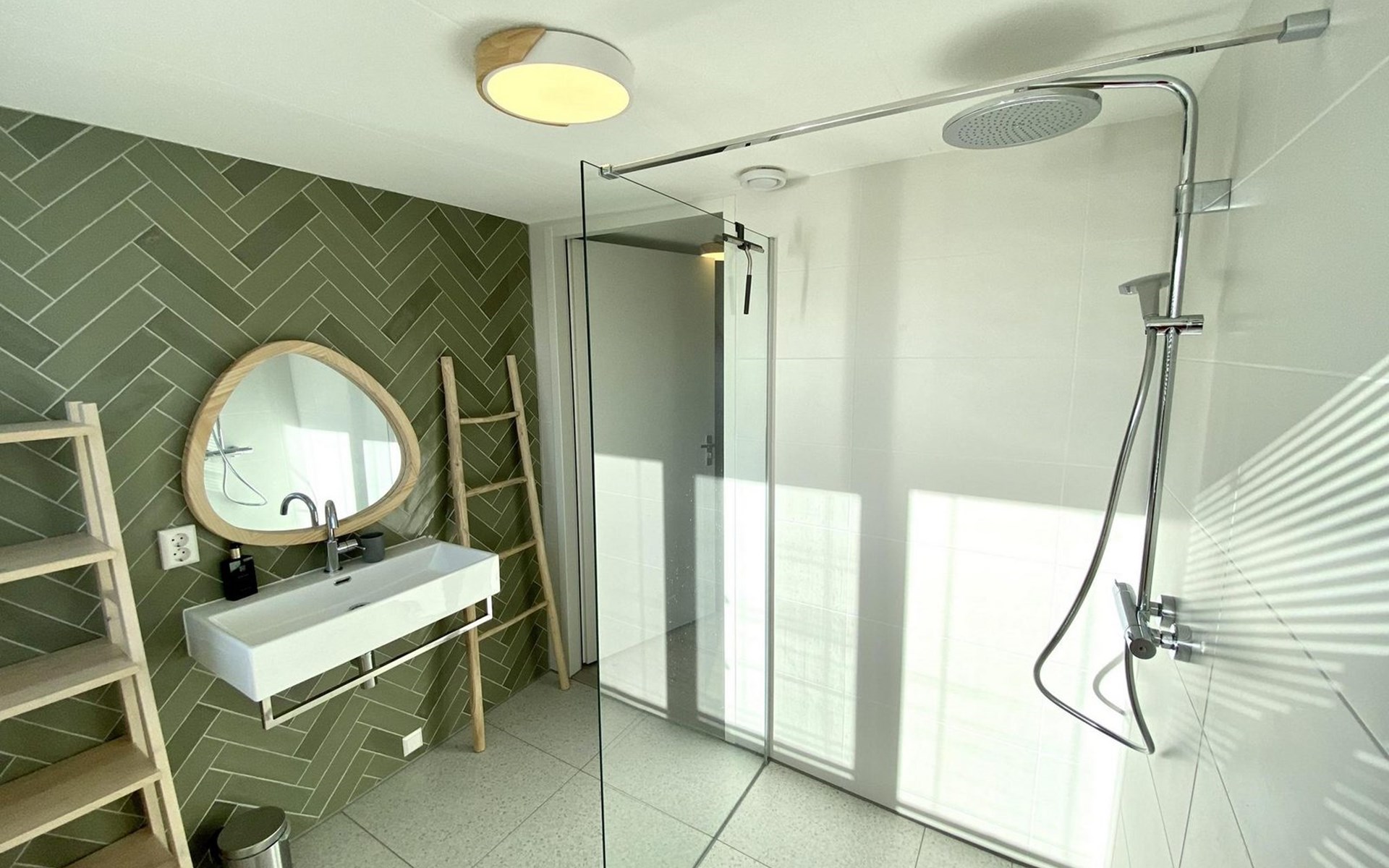 The luxurious and spacious bathroom is located on the first floor and has a sink and a shower. There is a separate toilet on the ground floor and first floor.
