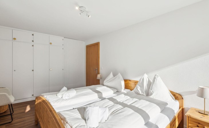 House Sursilvana / 2nd floor – left / Elevator / Wi-Fi yes / 1 room with double bed / 1 room with bunk bed and single bed / 1 bathroom with WC and bathtub / 1 separate WC All lakeside apartments House number 4-6 are located in the center of Lenzerheide and feature a south-facing balcony, as well as being directly on the ski slope/cross-country ski trail and within close proximity to the free sports bus and various shopping options. A great starting point for all winter/summer activities for the whole family. (In the same House Sursilvana there are the following vacation apartments No. 05 and No. 08)
