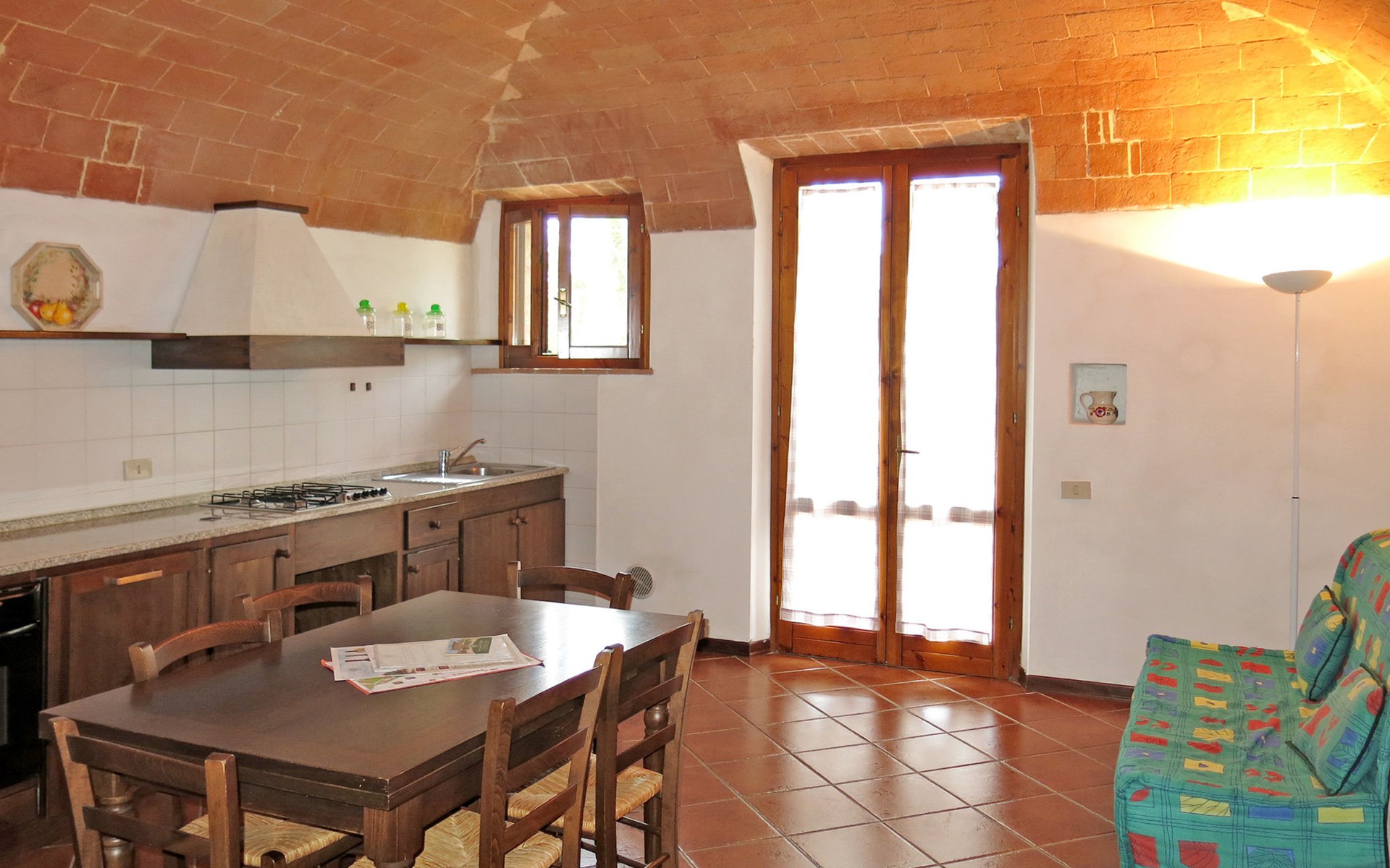 Agriturismo, 2 storeys. 7 houses in the residence. 9 apartments in the residence. 5 km from the centre of Peccioli, 15 km from the centre of Lajatico, in a quiet position on top of a hill, 50 km from the sea. For shared use: property 5 ha with trees, meadow, swimming pool (16 x 8 m, depth 140 cm, seasonal availability: 24.Apr. - 02.Oct.). Shower/WC in the pool area, outdoor shower, tennis (extra), garden furniture, children's playground. In the house: table tennis, table football, washing machine (for shared use, extra). 900 m long motor access (via unmade road). Roofed, parking on the premises. Shop 2.5 km, supermarket 5 km, bus stop 1 km, natural swimming pond 10 km. Riding stable 5 km, walking paths from the house 2 km. Nearby attractions: Volterra 30 km, Pisa 50 km. Hiking paths: Mountain Bike Le Serre 8 km, Bosco di Ortaglia 8 km. Local sale of farm products.