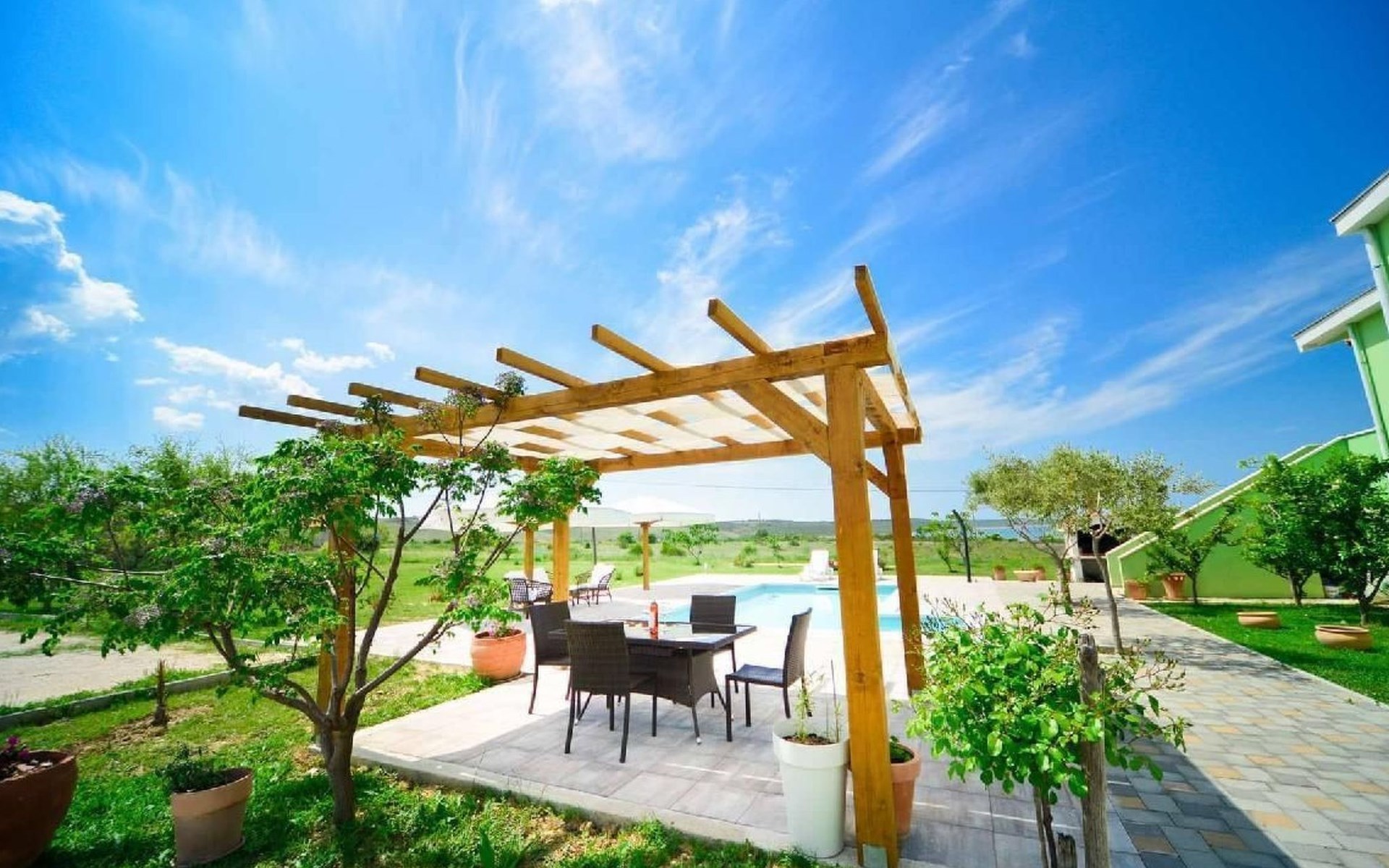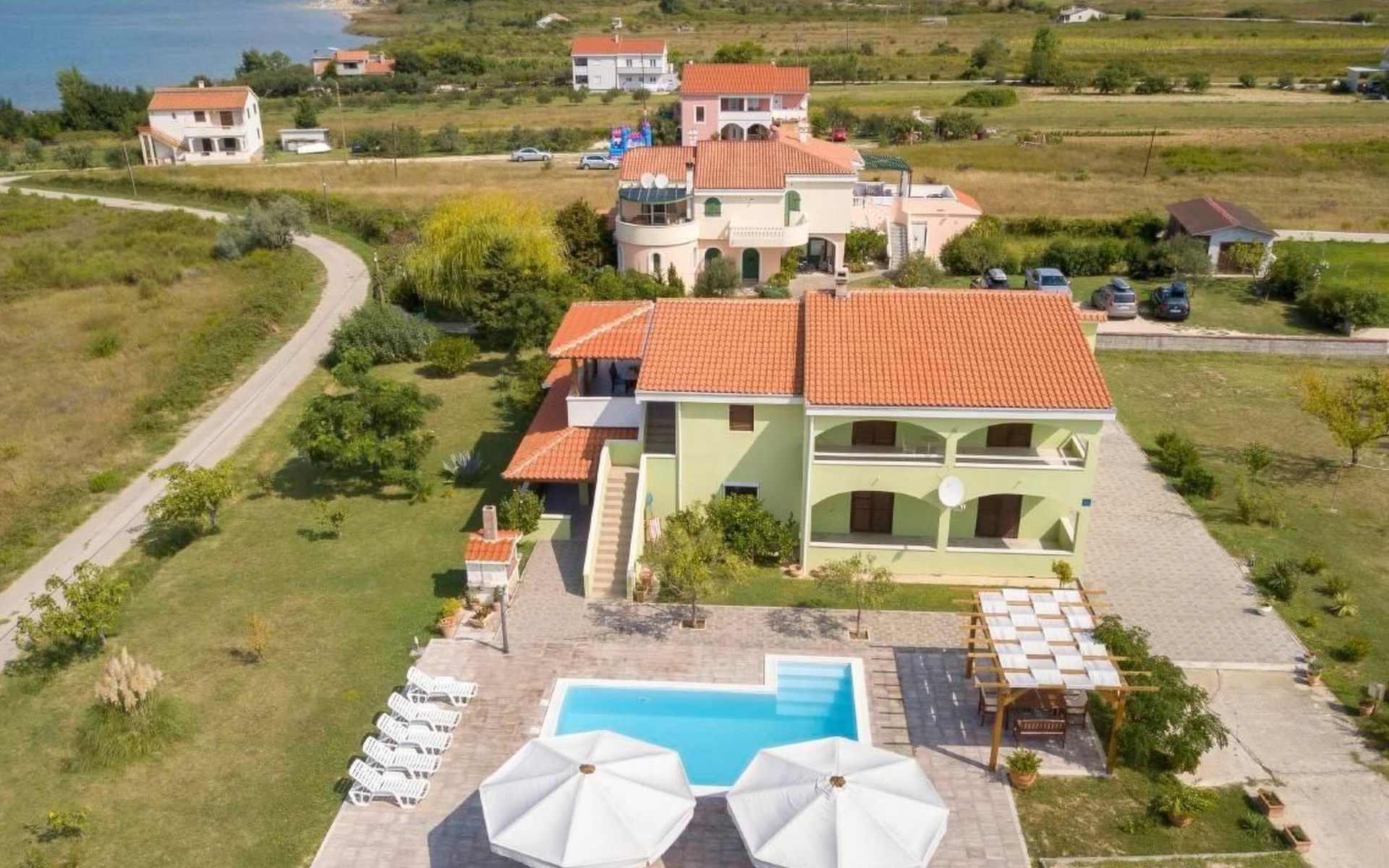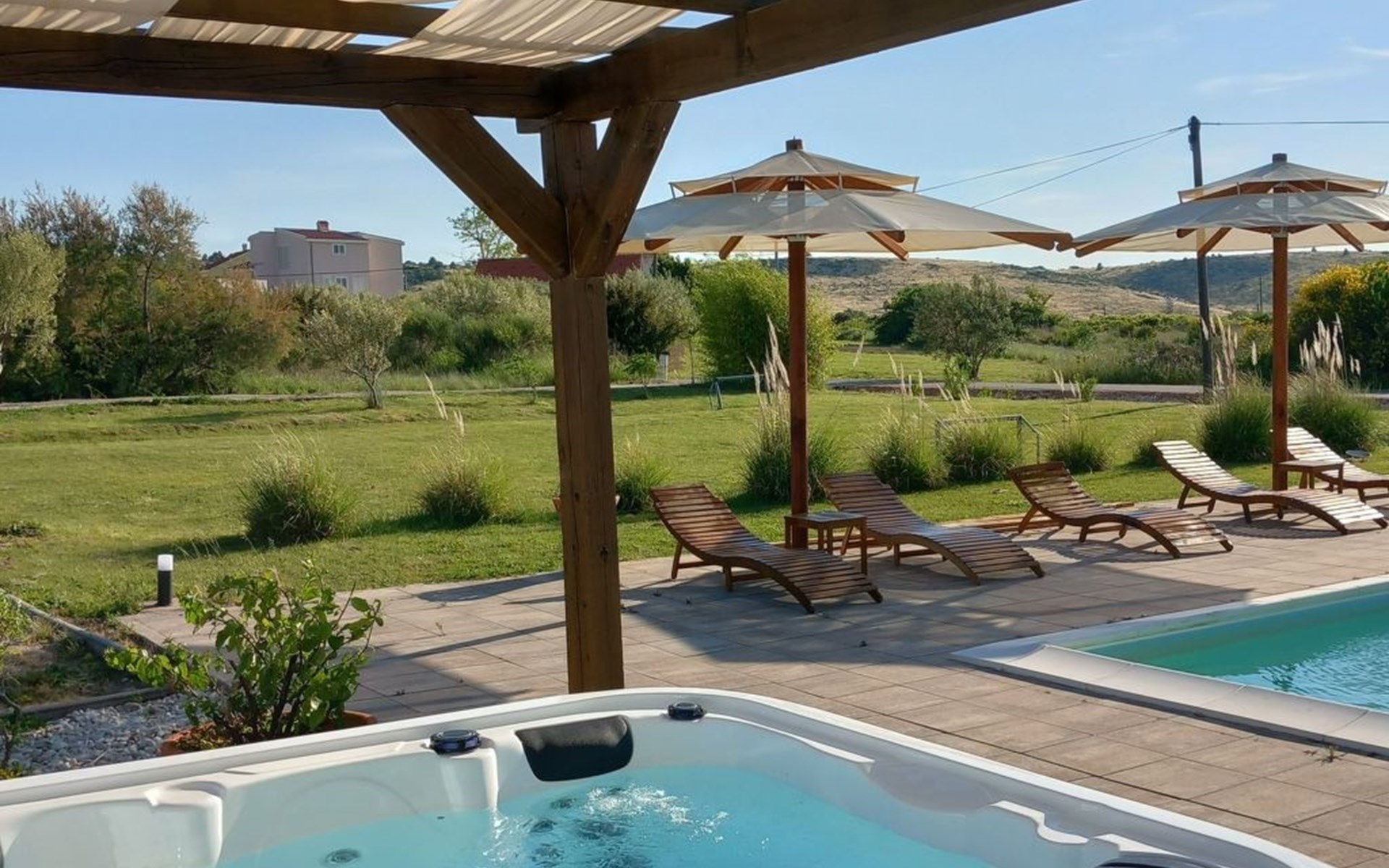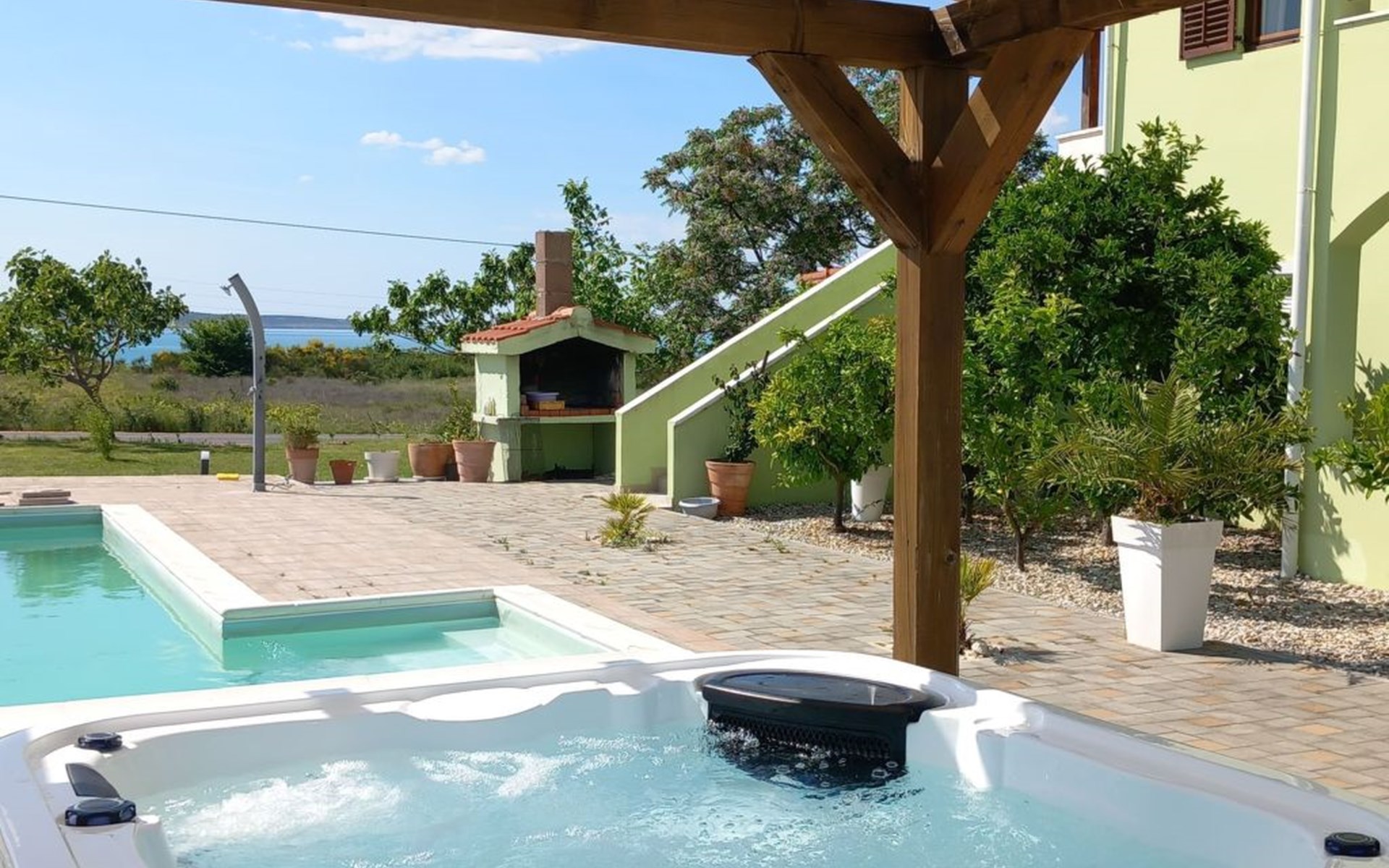 Pool (33 sqm) and Whirpool are shared with one more apartment. House is distanced 80m from the sea, and 350m from sandy beach, though there are several beaches nearby.