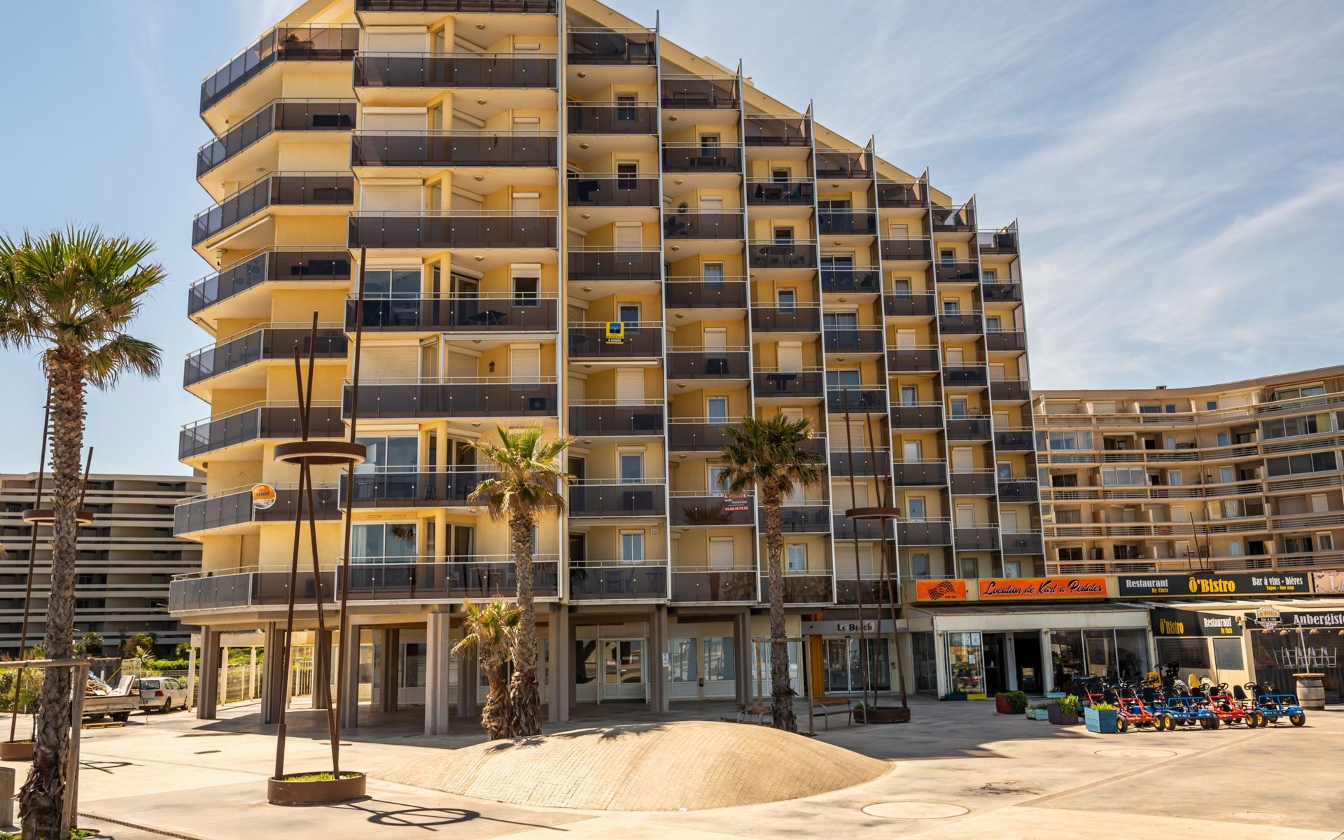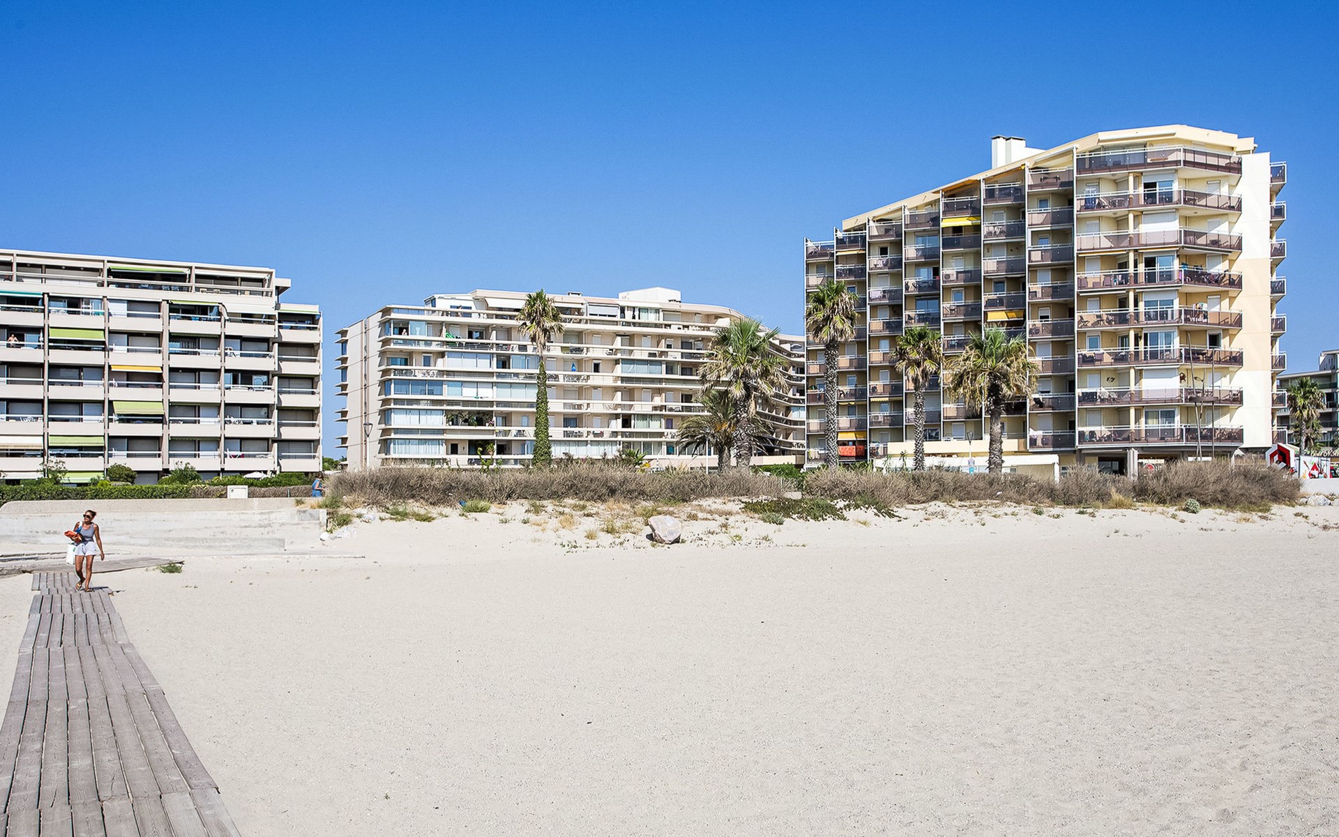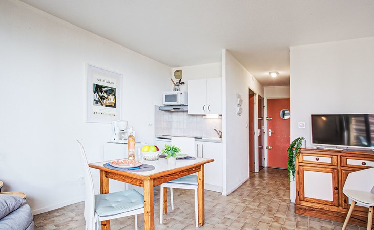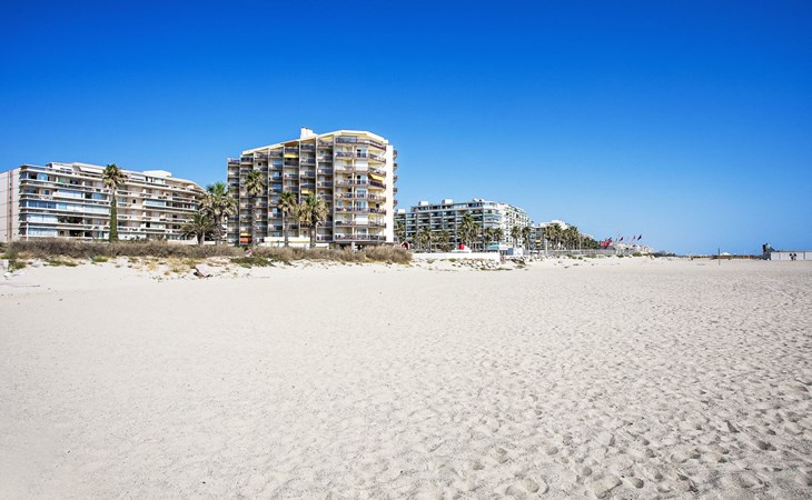 Canet Plage: Residence "Le Beach", 8 storeys. In the district of Canet Sud, 50 m from the sea, 50 m from the beach. In the complex: lift. Public parking on the road. Shop 50 m, shopping centre 8 km, restaurant, bakery, bus stop 50 m, railway station "Perpignan" 12 km, park "Aqualand St Cyprien" 12 km, diving center 18 km, outdoor swimming pool 3 km, indoor swimming pool 3 km, lake Etang de Canet 1 km. Sports harbour 5 km, golf course (18 hole) 8 km, minigolf 1 km. Nearby attractions: Perpignan 12 km, Collioure 25 km, Banyuls 37 km, Espagne 35 km, Andorre 180 km, Barcelone 200 km. Well-known lakes can easily be reached: Lac de Villeneuve de la Raho 19 km, Lac de St Jean Pla de Corts 39 km, Gorges du Gouleyrous 42 km. Hiking paths: Abbaye de St Martin du Canigou 70 km, Pic du Canigou 77 km, Lac des Bouillouses 105 km. Please note: entertainment in the season. Additional accommodations can be booked.