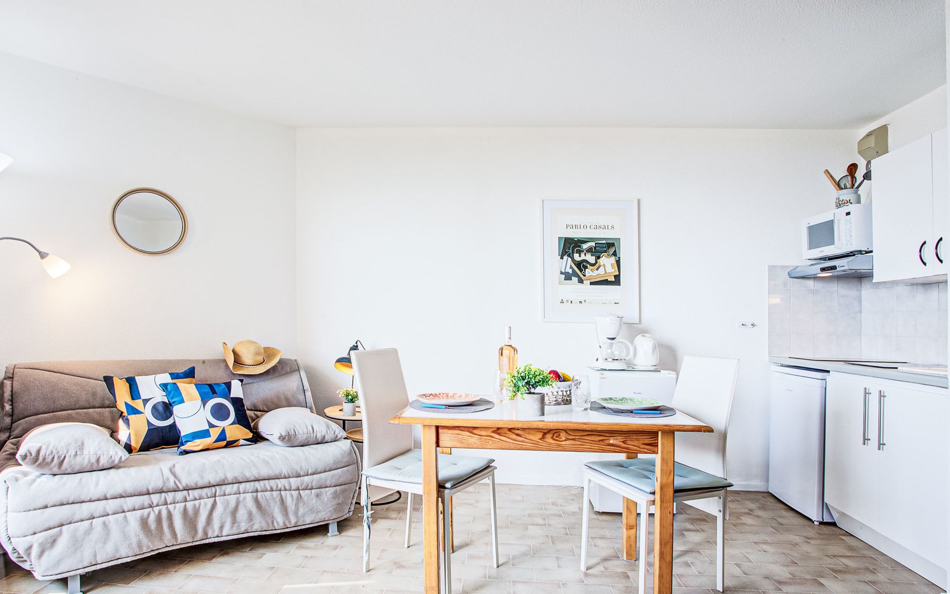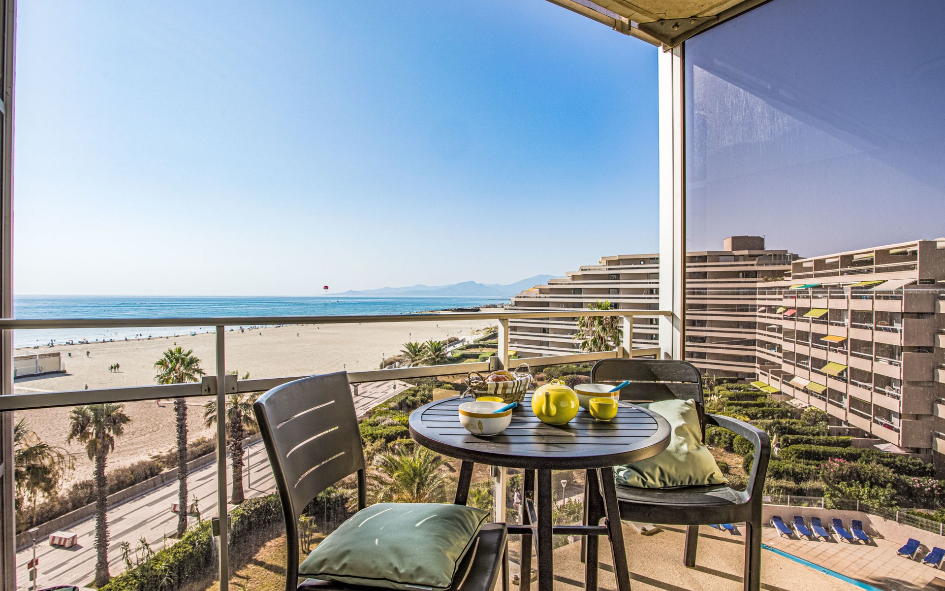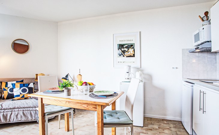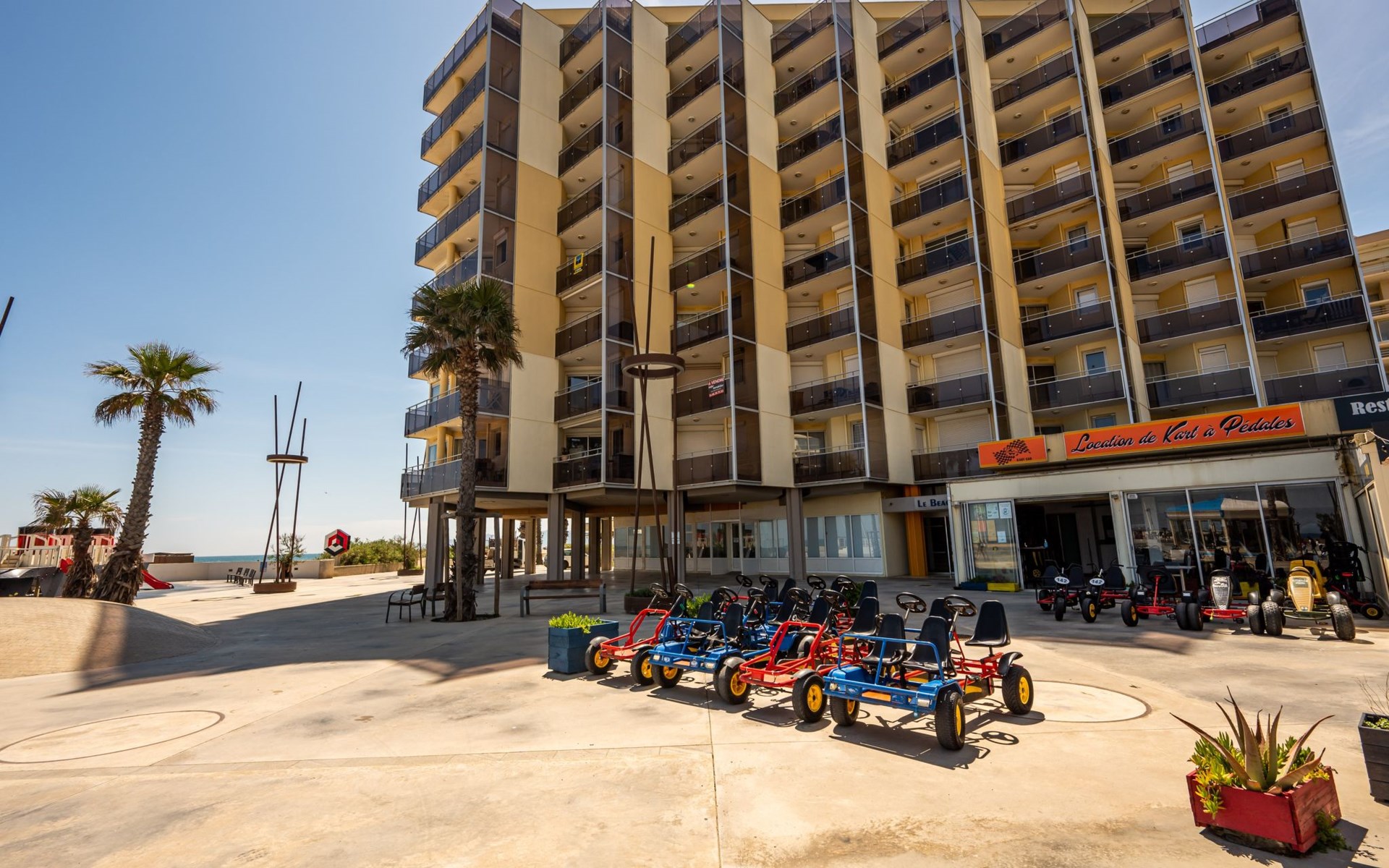 Canet Plage: Residence "Le Beach", 8 storeys. In the district of Canet Sud, 50 m from the sea, 50 m from the beach. In the complex: lift. Public parking on the road. Shop 50 m, shopping centre 8 km, restaurant, bakery, bus stop 50 m, railway station "Perpignan" 12 km, park "Aqualand St Cyprien" 12 km, diving center 18 km, outdoor swimming pool 3 km, indoor swimming pool 3 km, lake Etang de Canet 1 km. Sports harbour 5 km, golf course (18 hole) 8 km, minigolf 1 km. Nearby attractions: Perpignan 12 km, Collioure 25 km, Banyuls 37 km, Espagne 35 km, Andorre 180 km, Barcelone 200 km. Well-known lakes can easily be reached: Lac de Villeneuve de la Raho 19 km, Lac de St Jean Pla de Corts 39 km, Gorges du Gouleyrous 42 km. Hiking paths: Abbaye de St Martin du Canigou 70 km, Pic du Canigou 77 km, Lac des Bouillouses 105 km. Please note: entertainment in the season. Additional accommodations can be booked.
