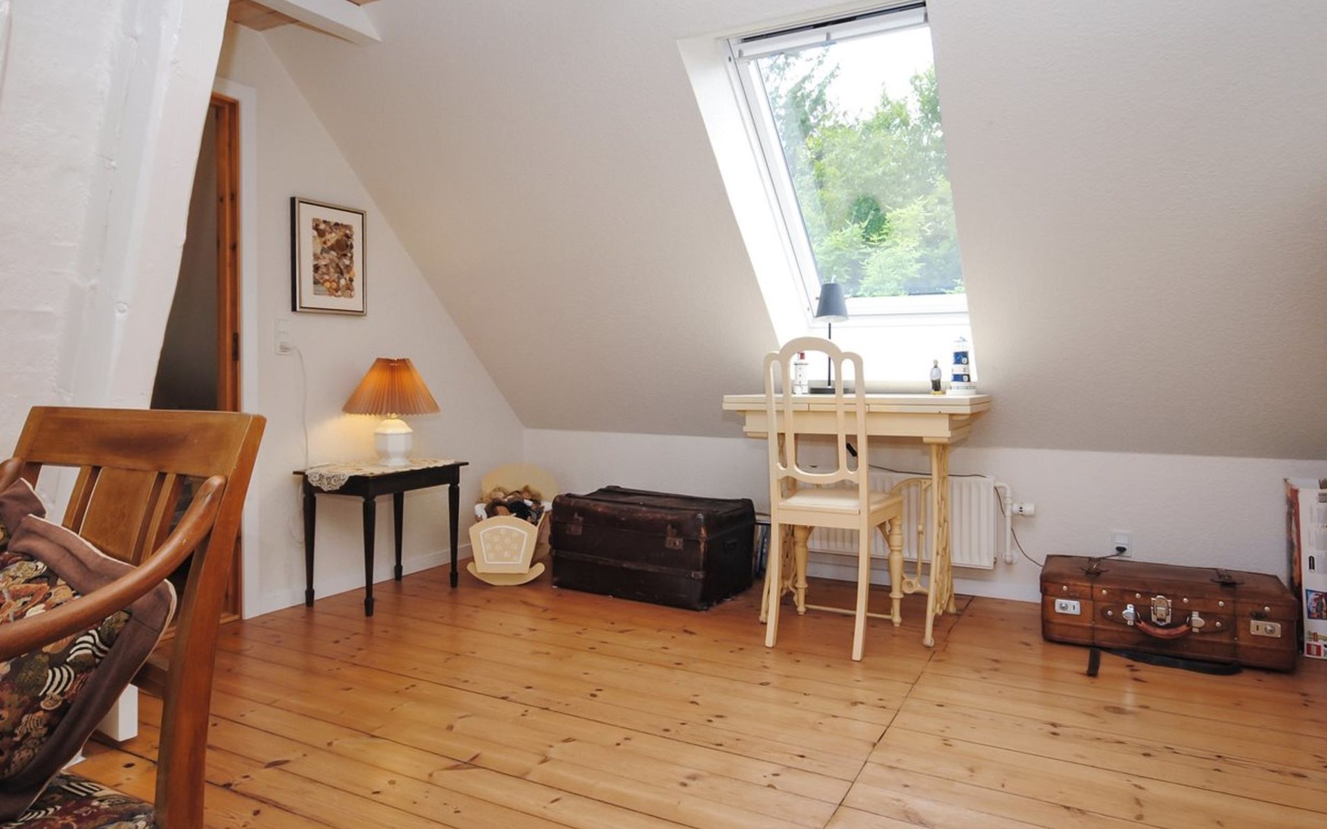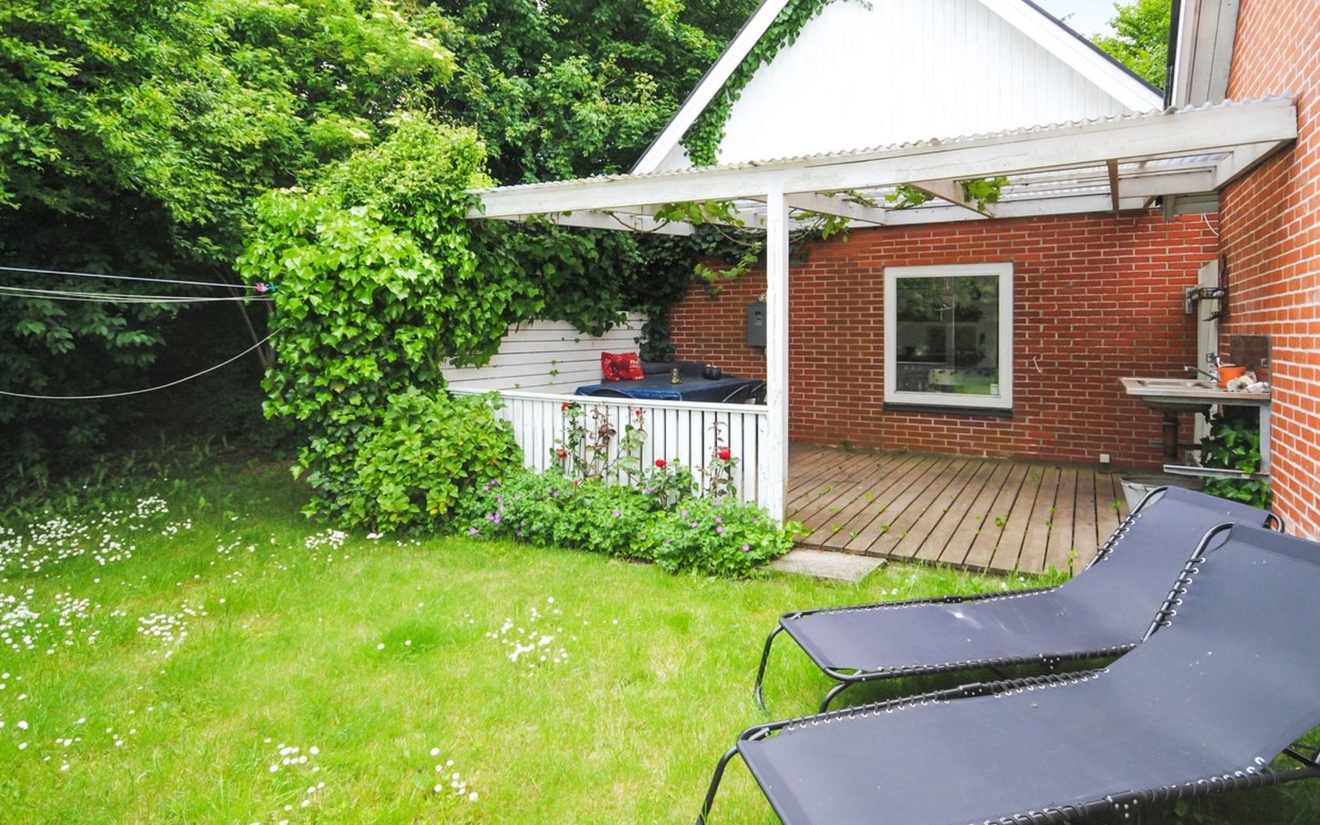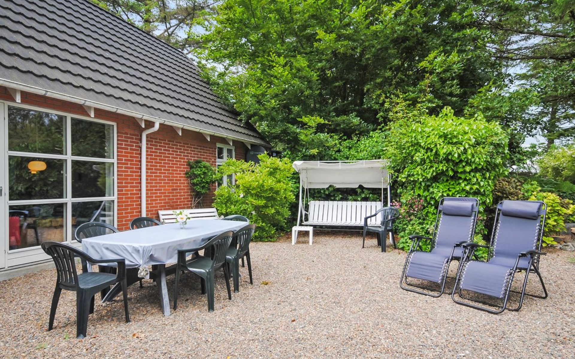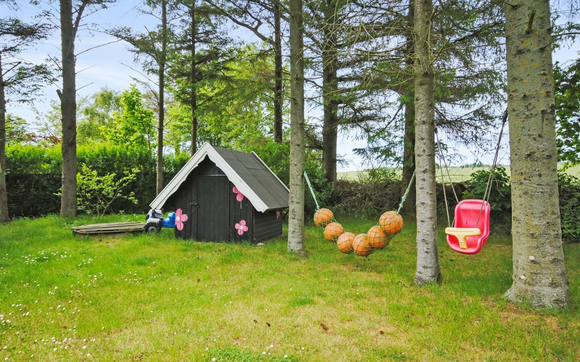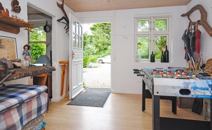 Single-family house, built in 1932. 7 km from the sea. For shared use: garden. Private: property 2'500 m2, well-kept garden (fenced). Outdoor shower, terrace (18 m2), barbecue, children's playground (swing). In the house: table football, washing machine, tumble dryer. Parking at the house. Grocery 7 km. The owner does not accept any youth groups.