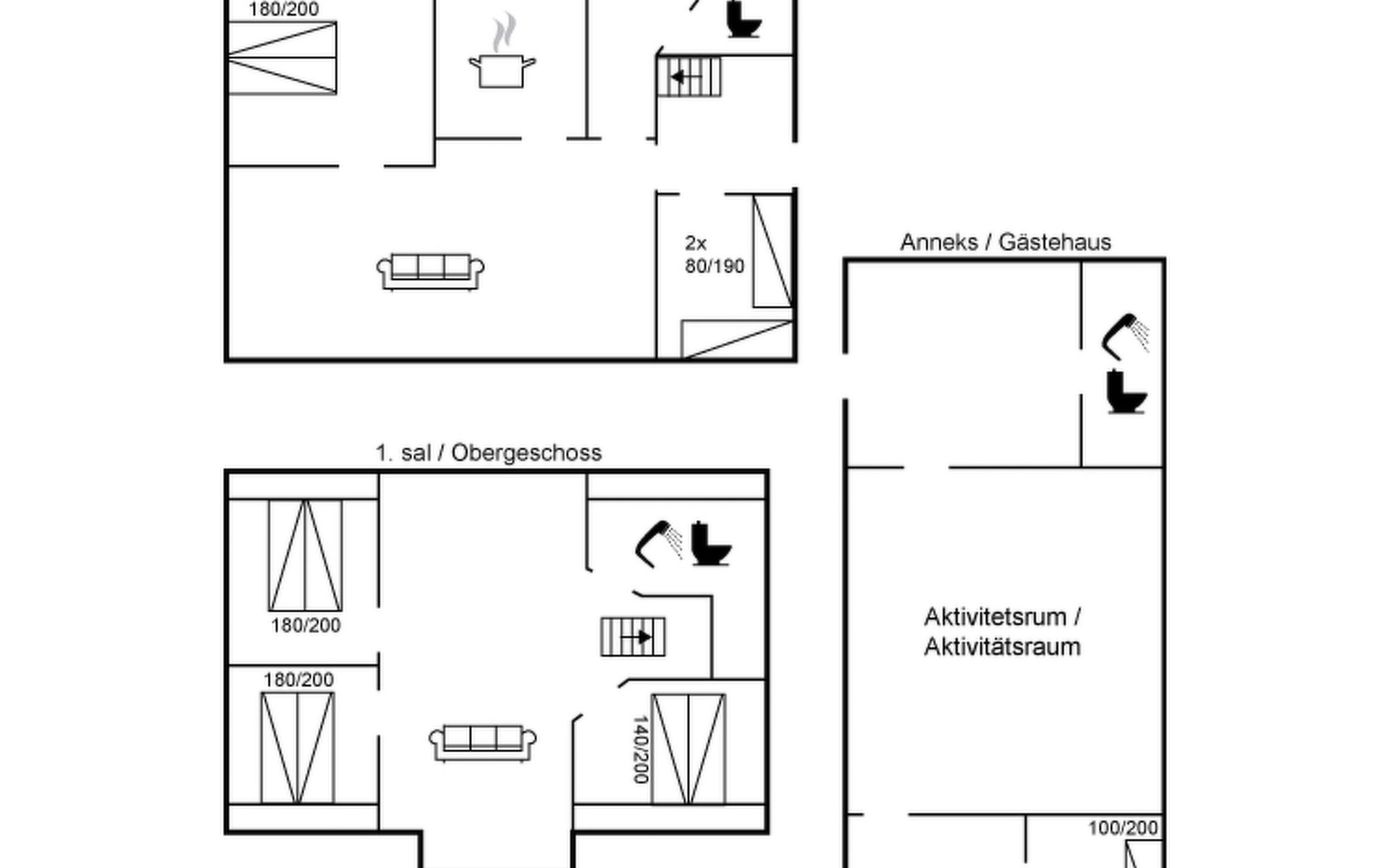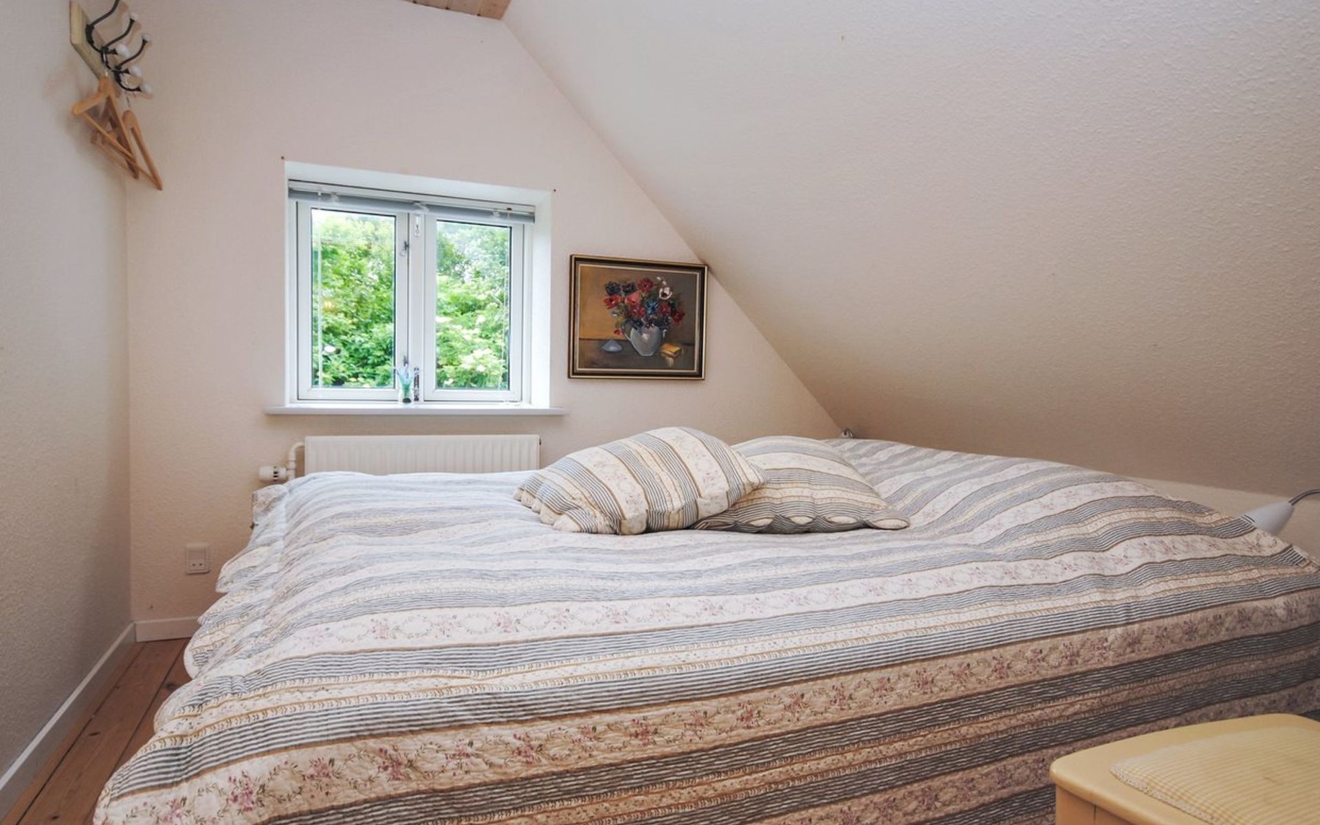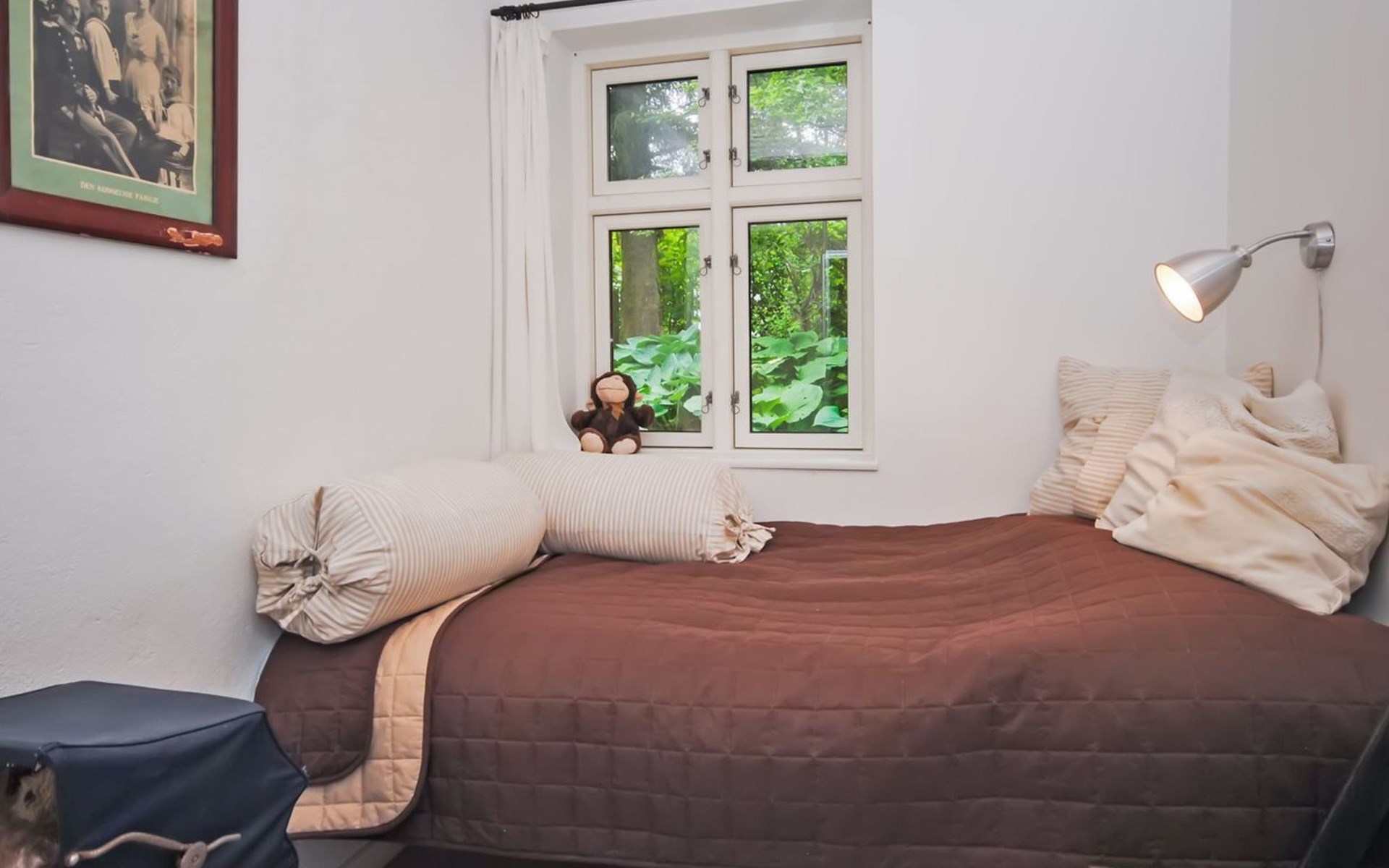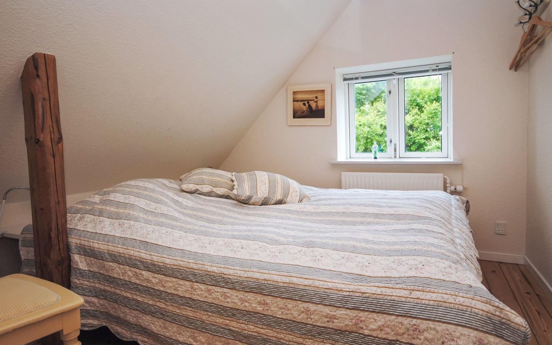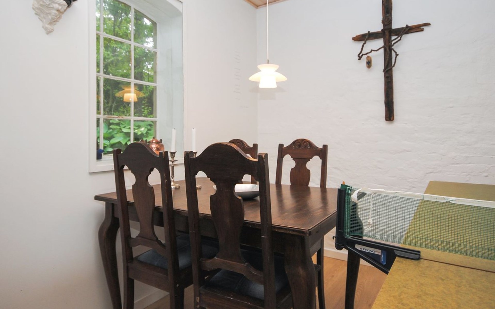 Single-family house, built in 1932. 7 km from the sea. For shared use: garden. Private: property 2'500 m2, well-kept garden (fenced). Outdoor shower, terrace (18 m2), barbecue, children's playground (swing). In the house: table football, washing machine, tumble dryer. Parking at the house. Grocery 7 km. The owner does not accept any youth groups.