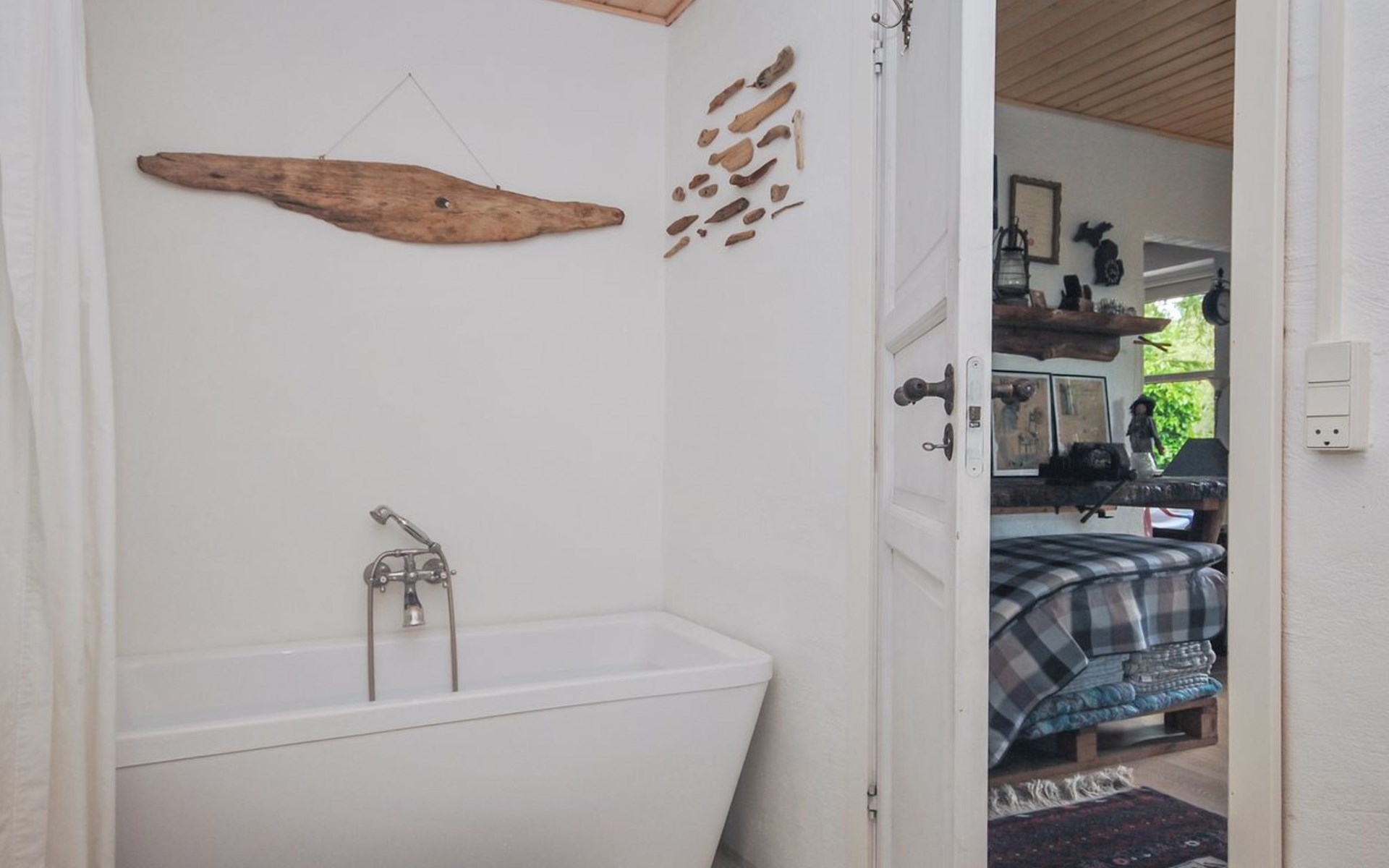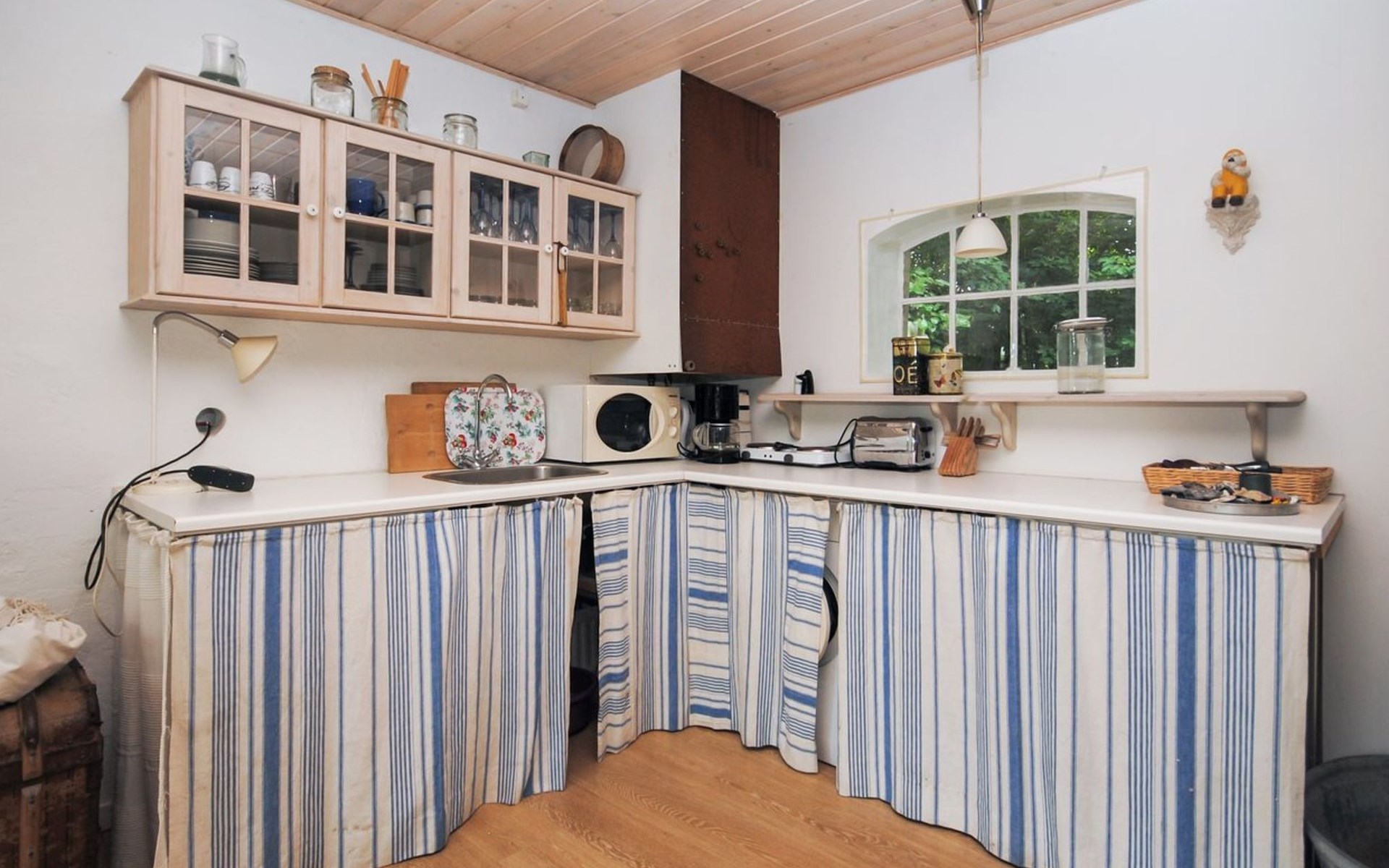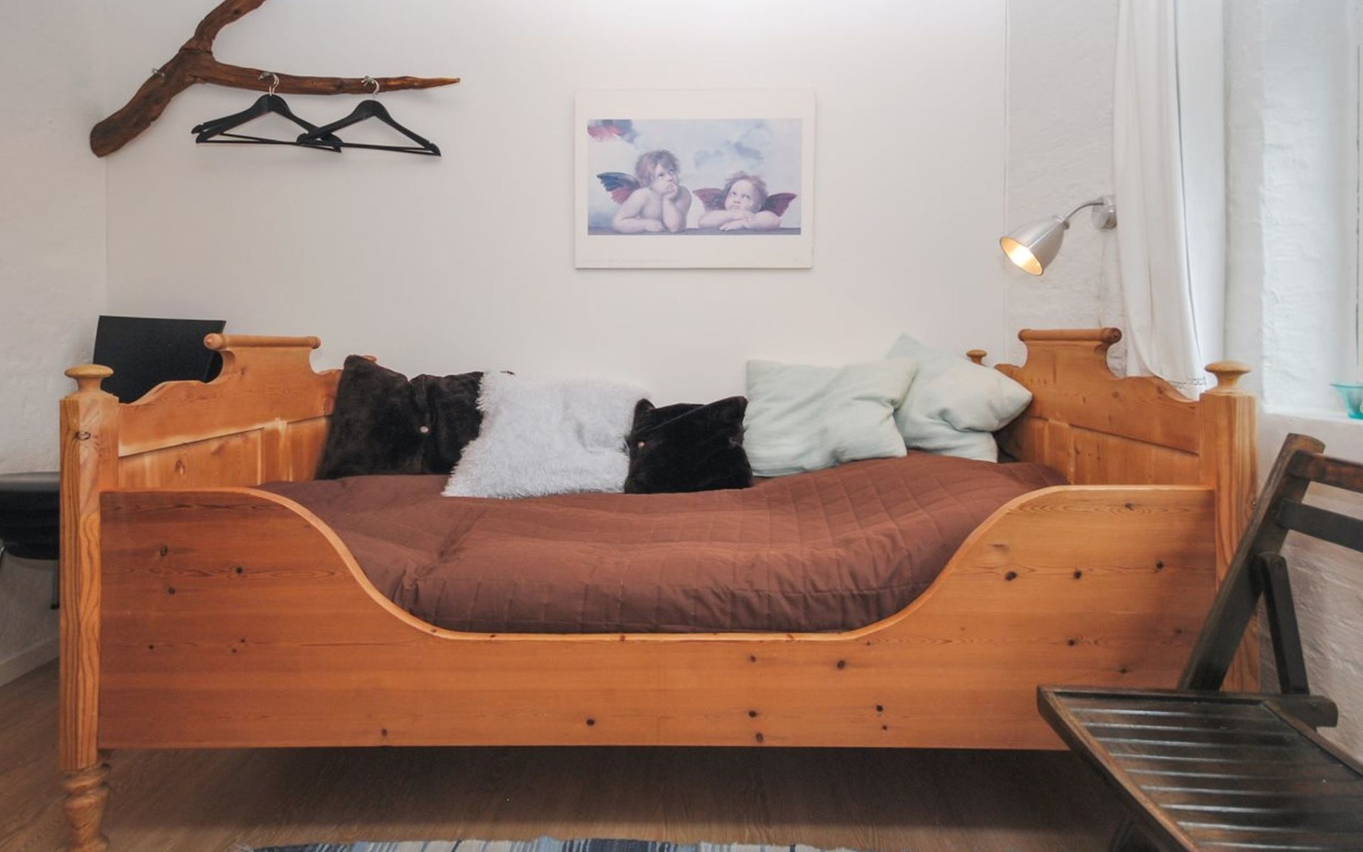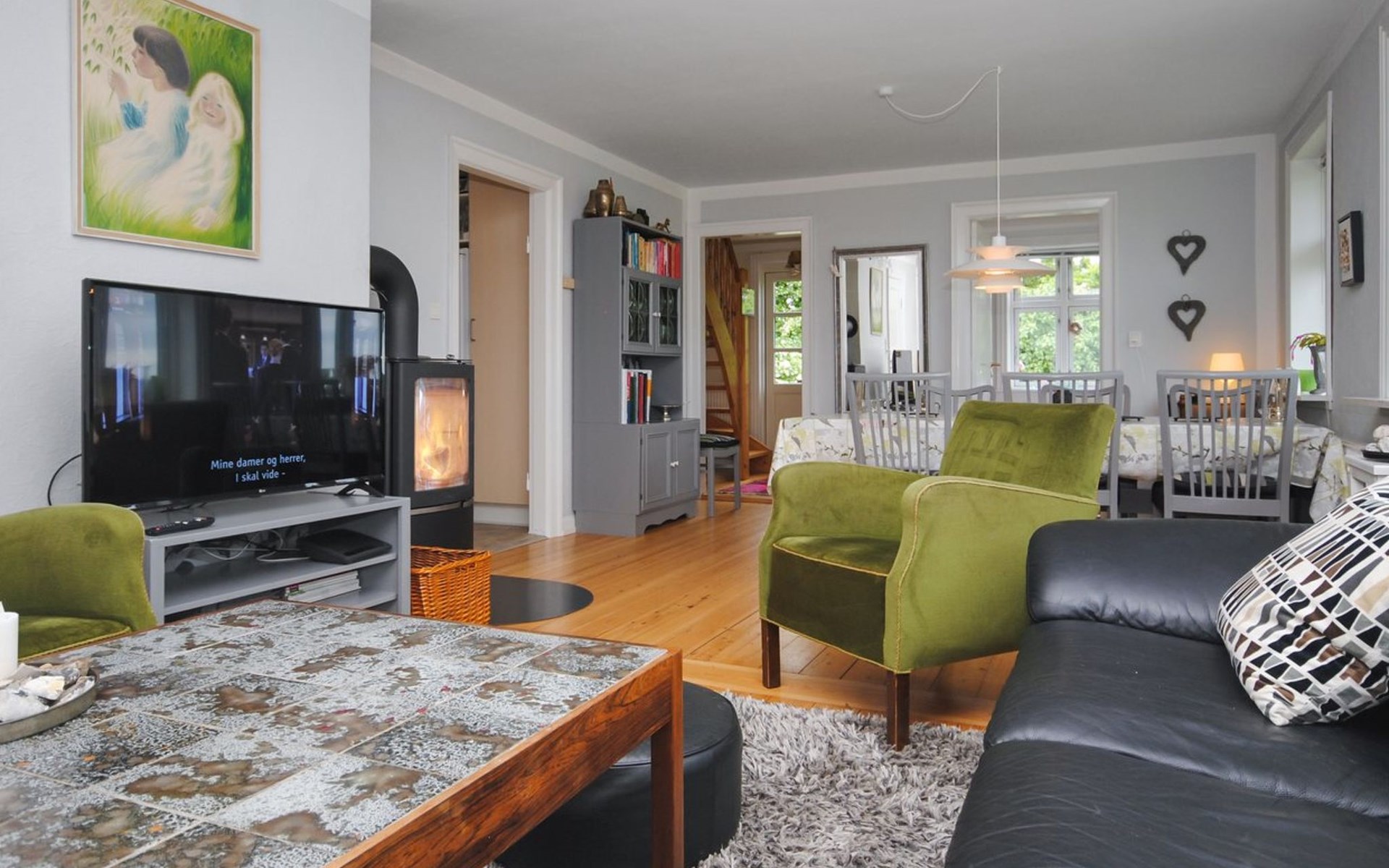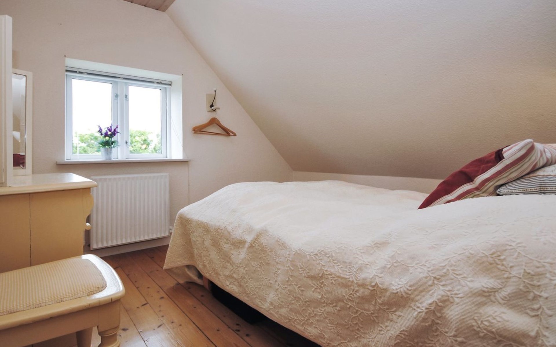 Single-family house, built in 1932. 7 km from the sea. For shared use: garden. Private: property 2'500 m2, well-kept garden (fenced). Outdoor shower, terrace (18 m2), barbecue, children's playground (swing). In the house: table football, washing machine, tumble dryer. Parking at the house. Grocery 7 km. The owner does not accept any youth groups.