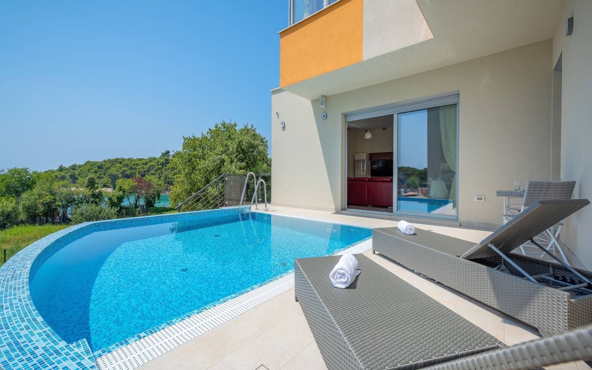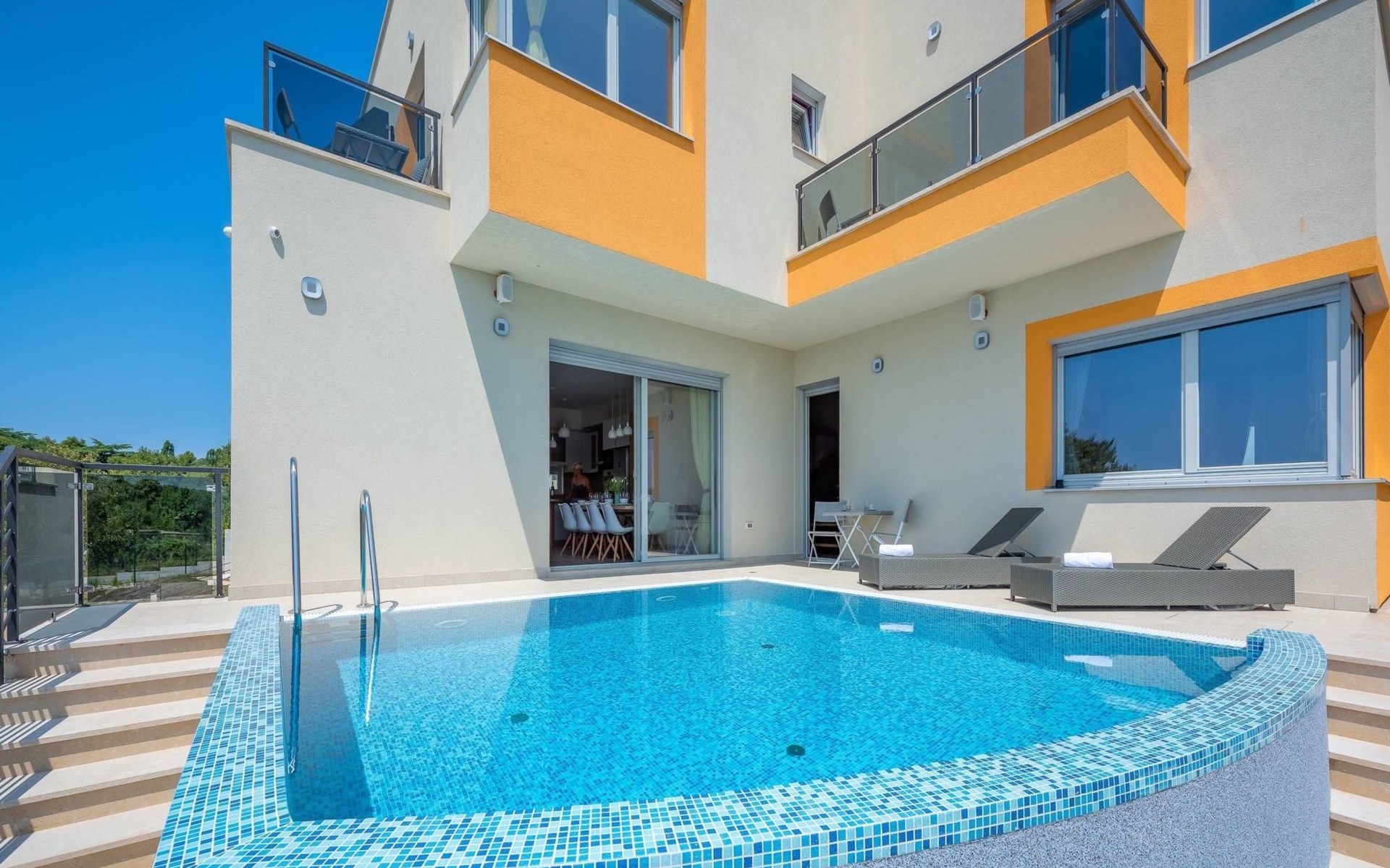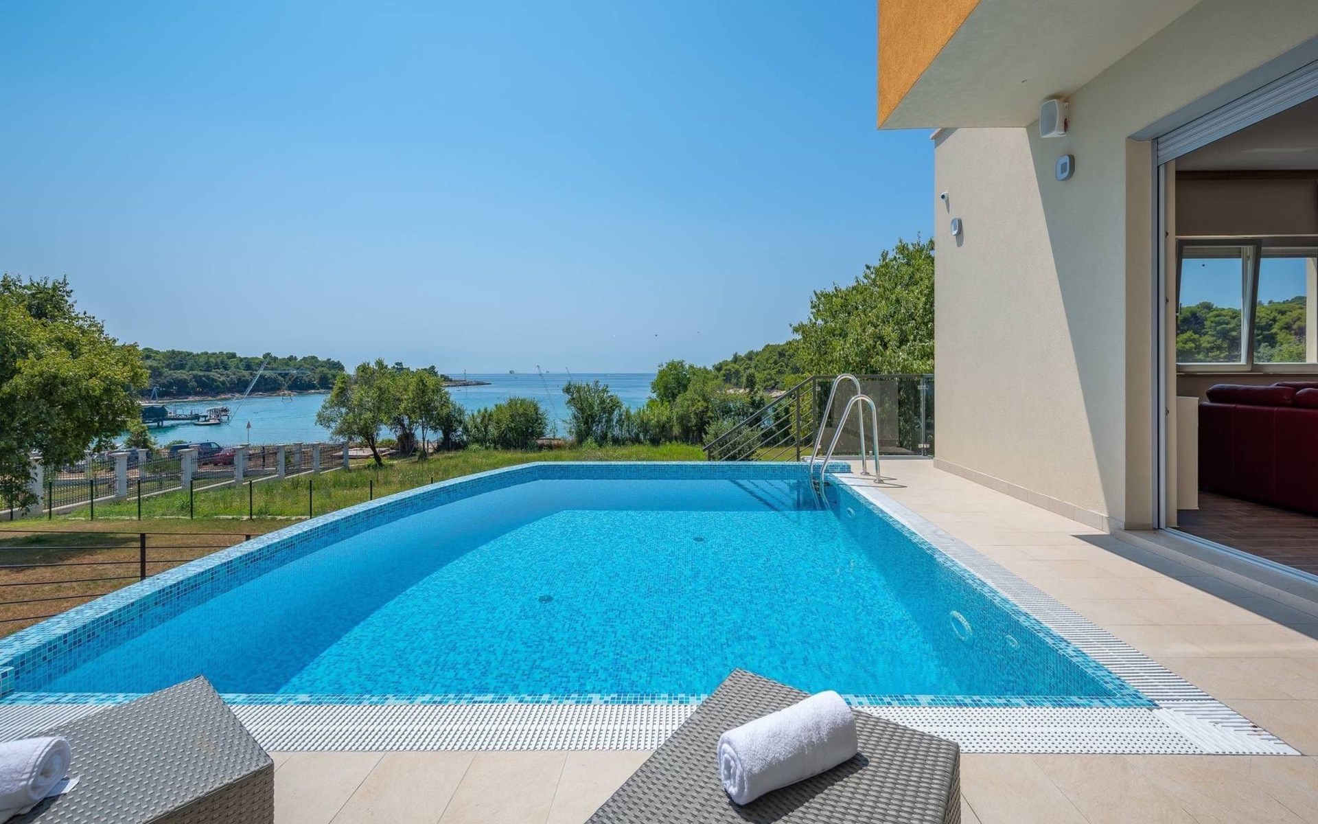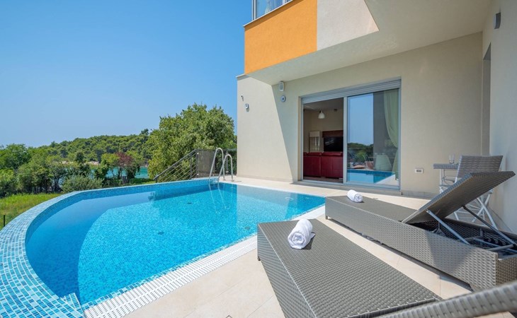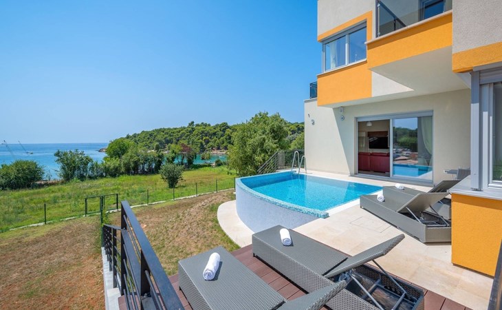 A beautiful villa in one of the most attractive destinations of Croatia – in Pula coastline area. The villa features a spacious garden with a seasonal outdoor pool, a sun terrace, and free WiFi in public areas.All rooms are individually furnished and come with seaside and mountain views, an outdoor dining area, grill area, and a fully equipped kitchen. The villa is very close to the beach and all cultural city hubs. You’ll enjoy day and night activities around the villa.A narrow strip along the coast in Pula is a breathtaking location to spend your summer – with family, friends or partner. The villa is available for private booking by couples as well.