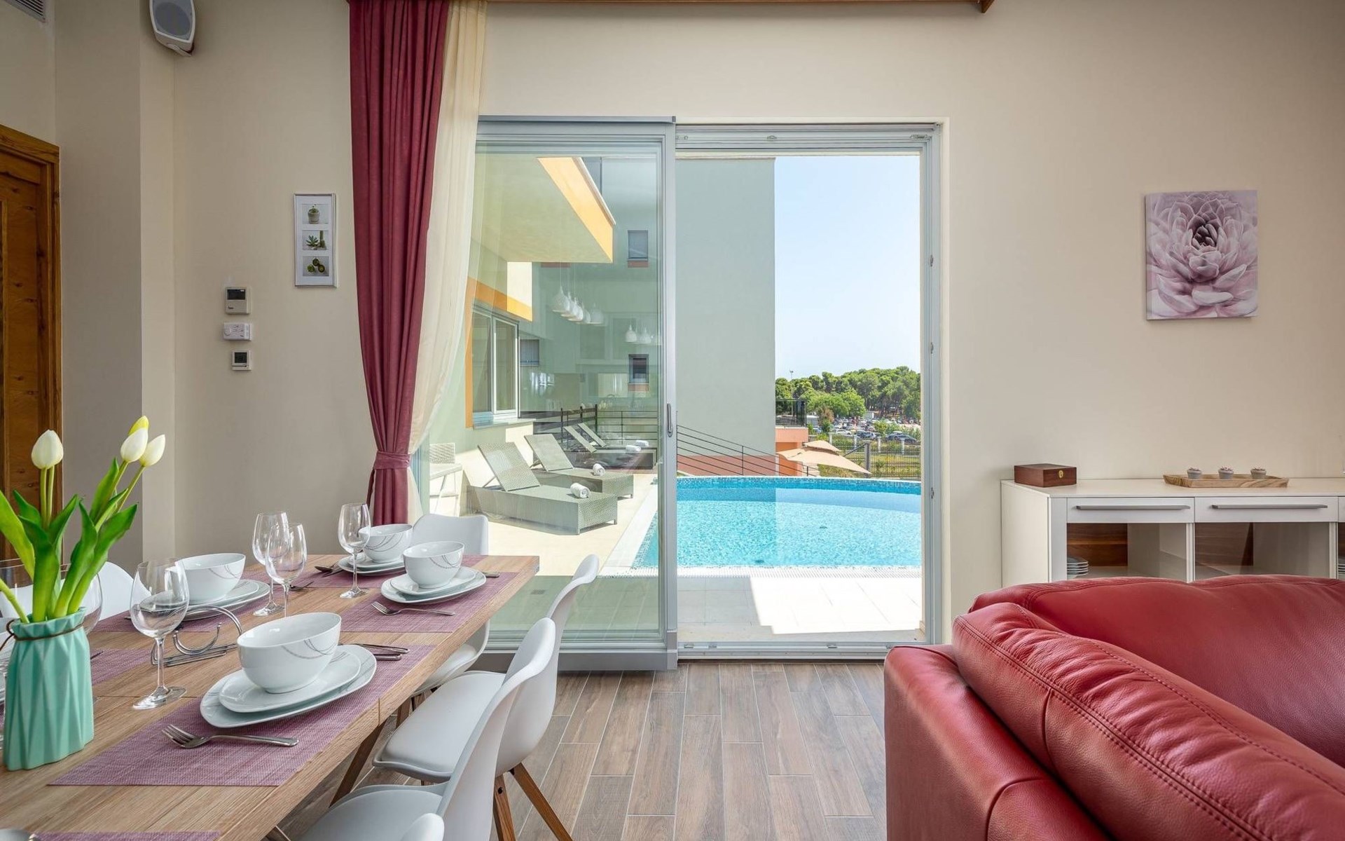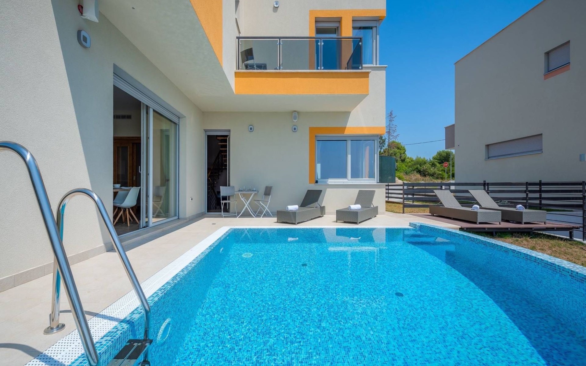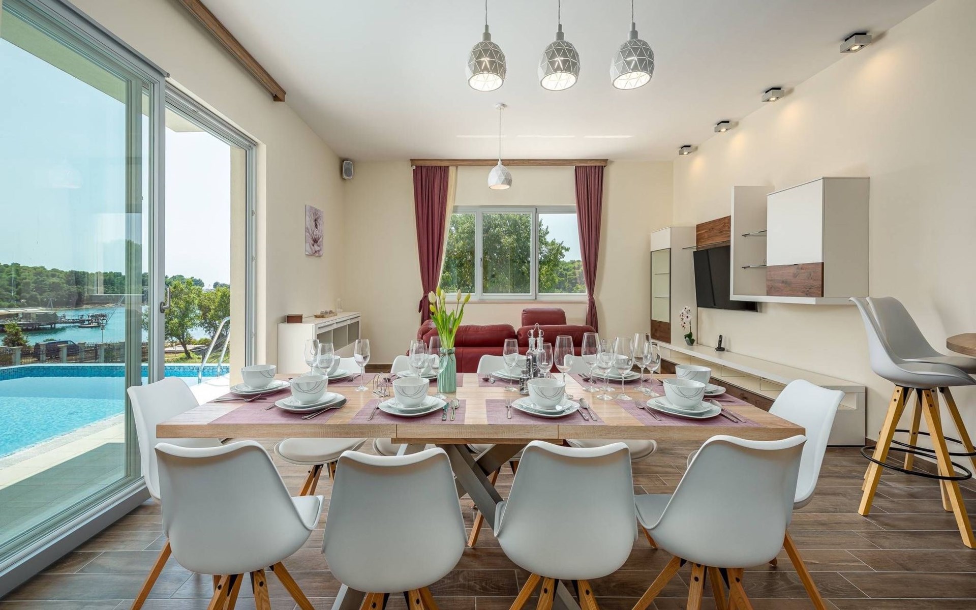 A beautiful villa in one of the most attractive destinations of Croatia – in Pula coastline area. The villa features a spacious garden with a seasonal outdoor pool, a sun terrace, and free WiFi in public areas.All rooms are individually furnished and come with seaside and mountain views, an outdoor dining area, grill area, and a fully equipped kitchen. The villa is very close to the beach and all cultural city hubs. You’ll enjoy day and night activities around the villa.A narrow strip along the coast in Pula is a breathtaking location to spend your summer – with family, friends or partner. The villa is available for private booking by couples as well.