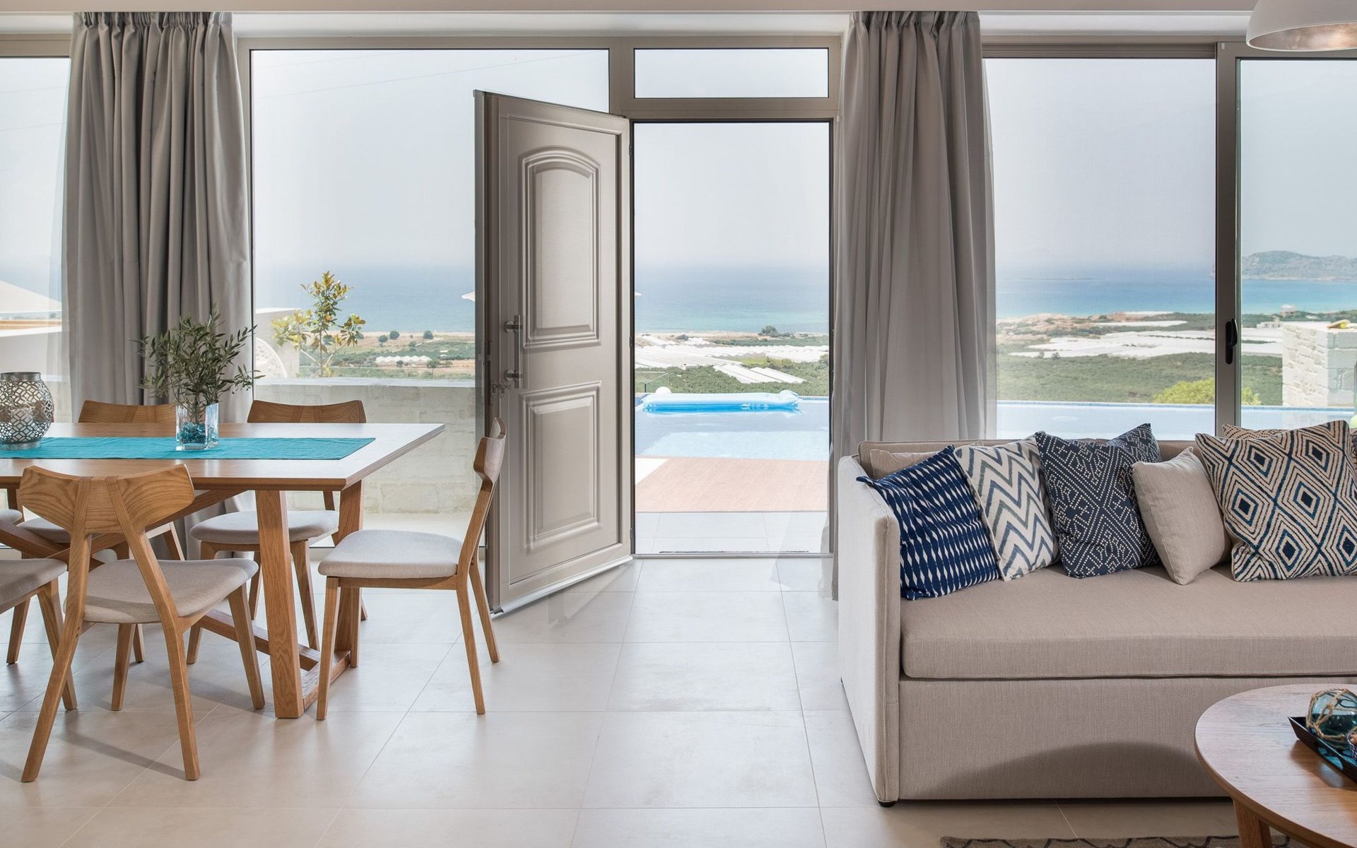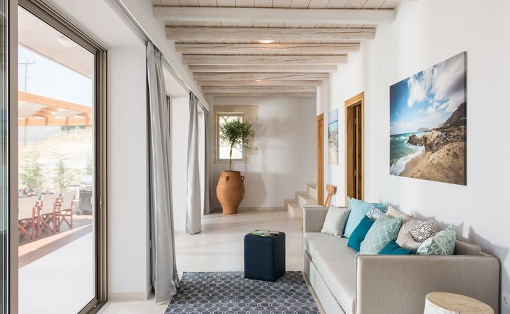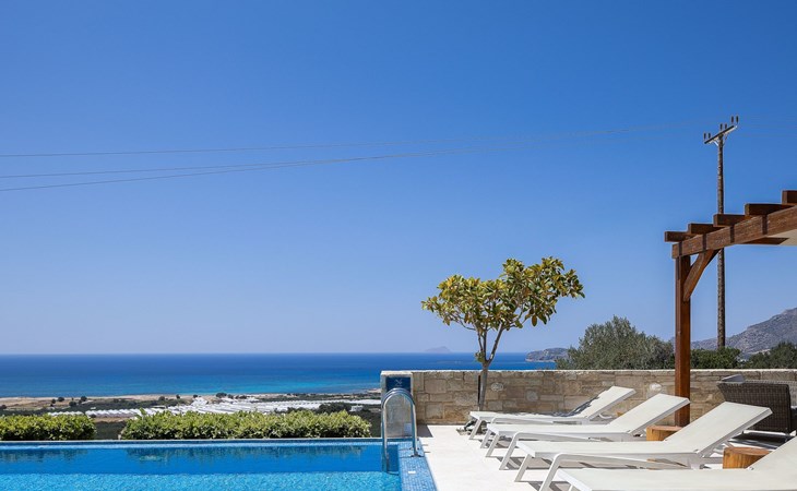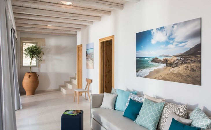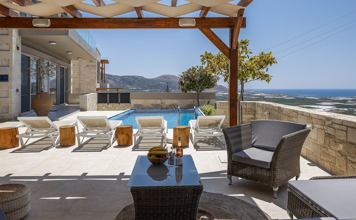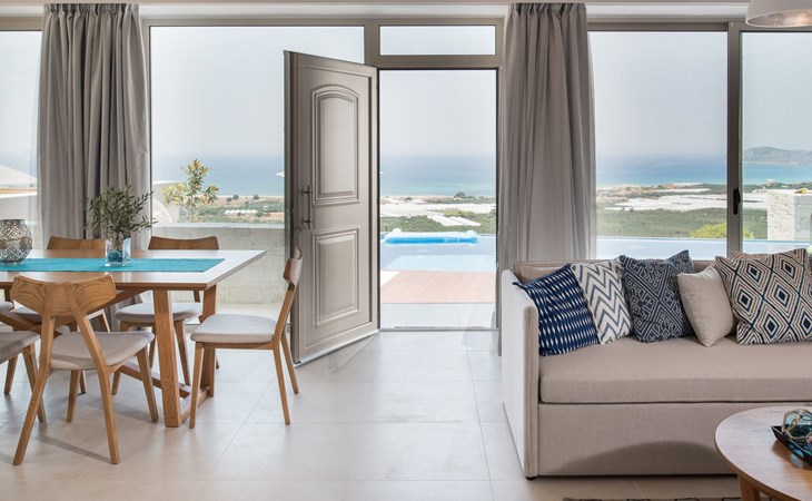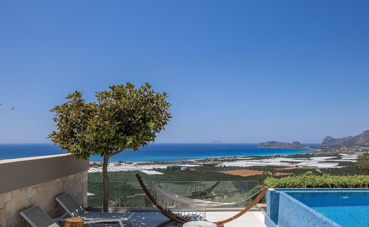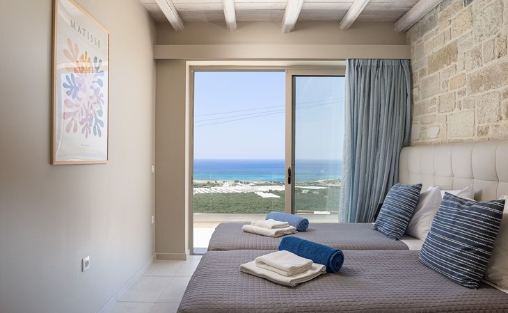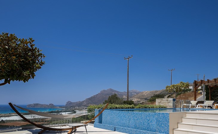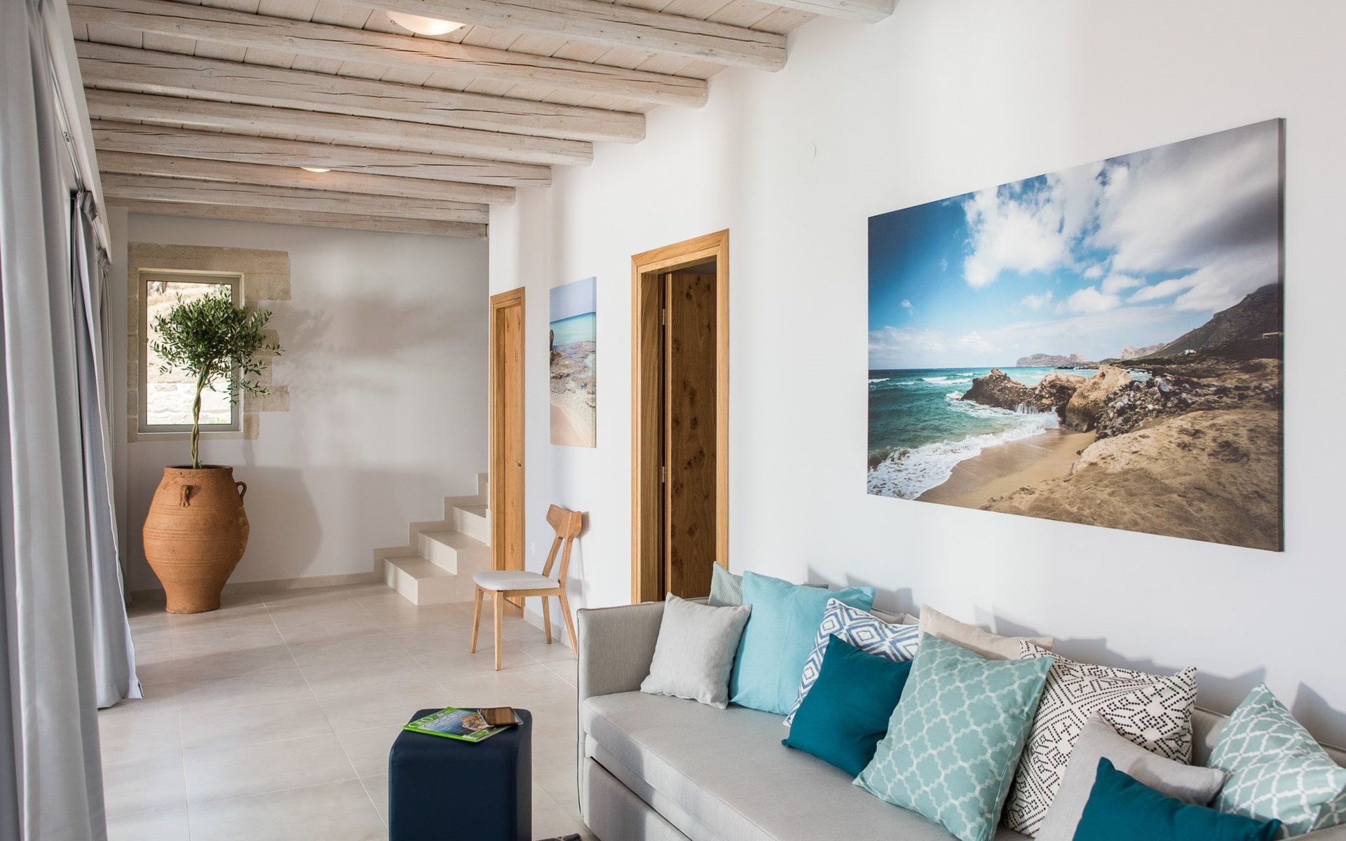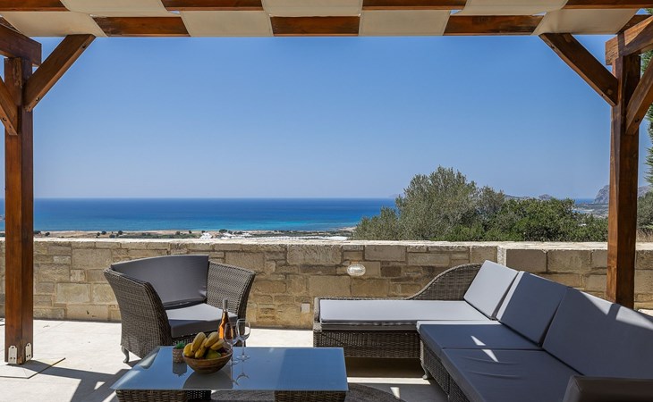 Falasarna Luxury Villas is a complex with four luxury villas one close to the other. The total number of rooms for the whole complex is 20 and the guests can book as many villas as they wish based on the number of guests that travel with them.