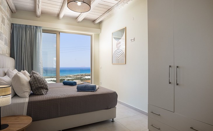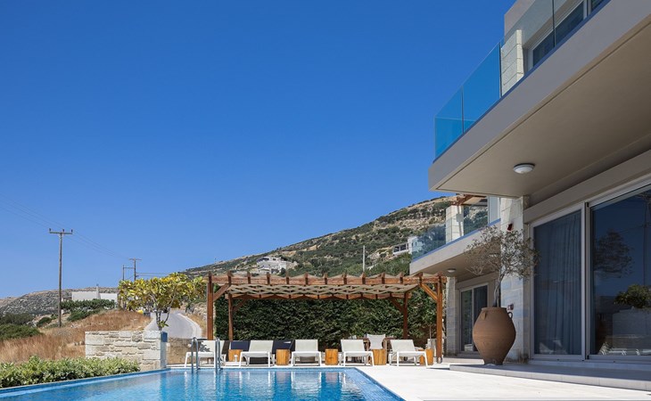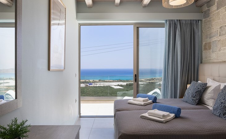 Villa Elpida is part of the Falasarna Luxury Villas Complex, which includes four luxury villas: Villa Galatia ( 5 bedrooms), Villa Domenica ( 3 bedrooms) Villa Elpida (5 bedrooms) and Villa Casa di Franco (7 bedrooms). The total number of rooms for the whole complex is 20 and the guests can book as villas as they wish based on the number of guests that travel with them.