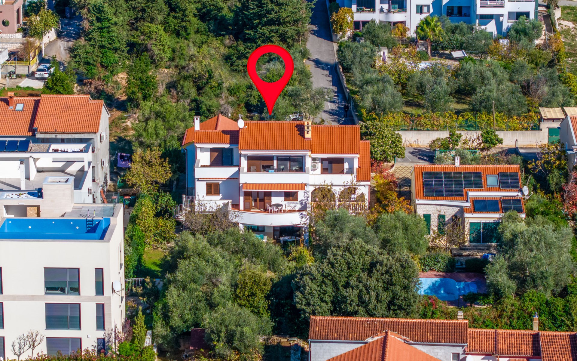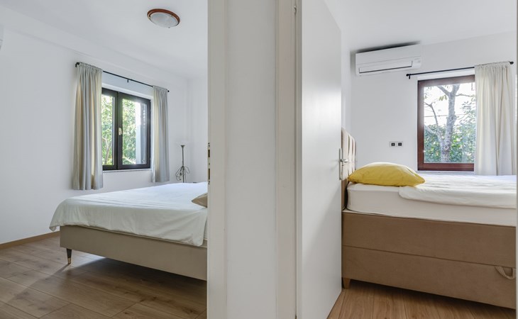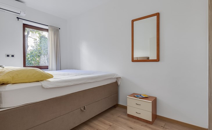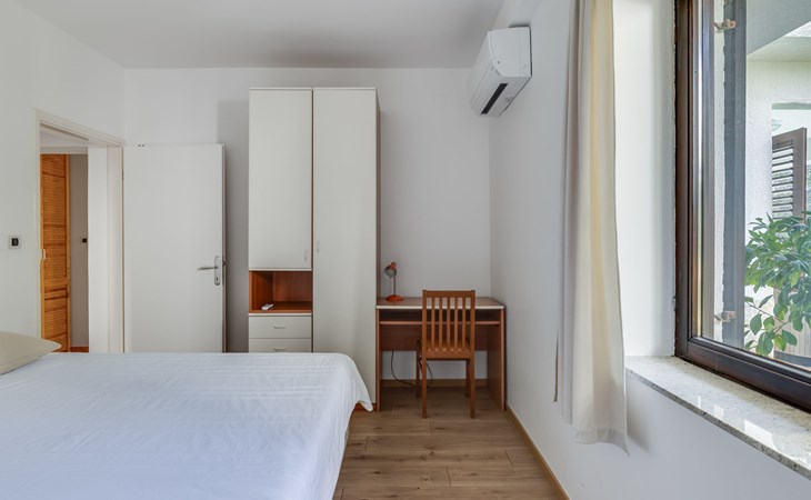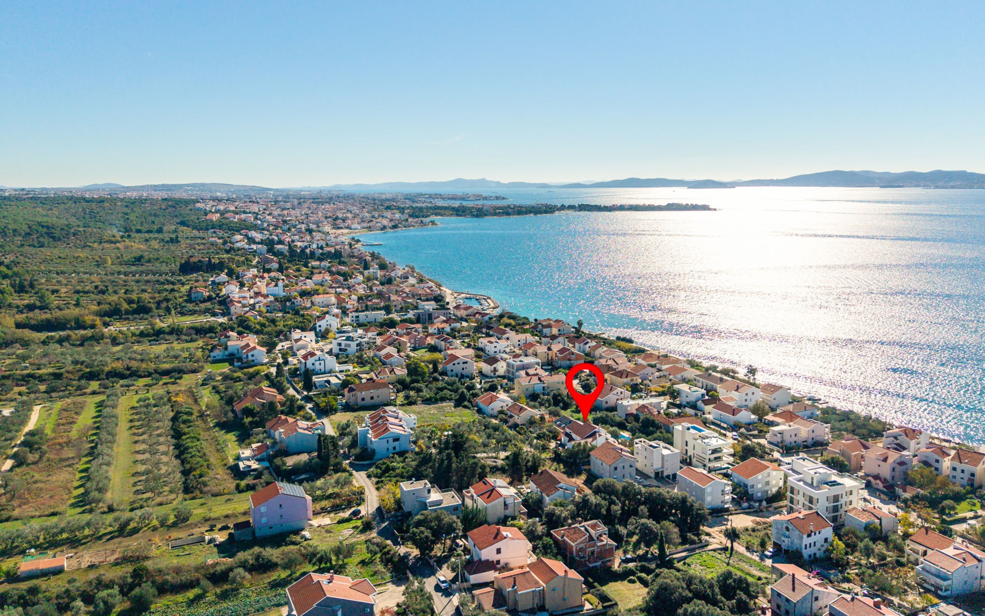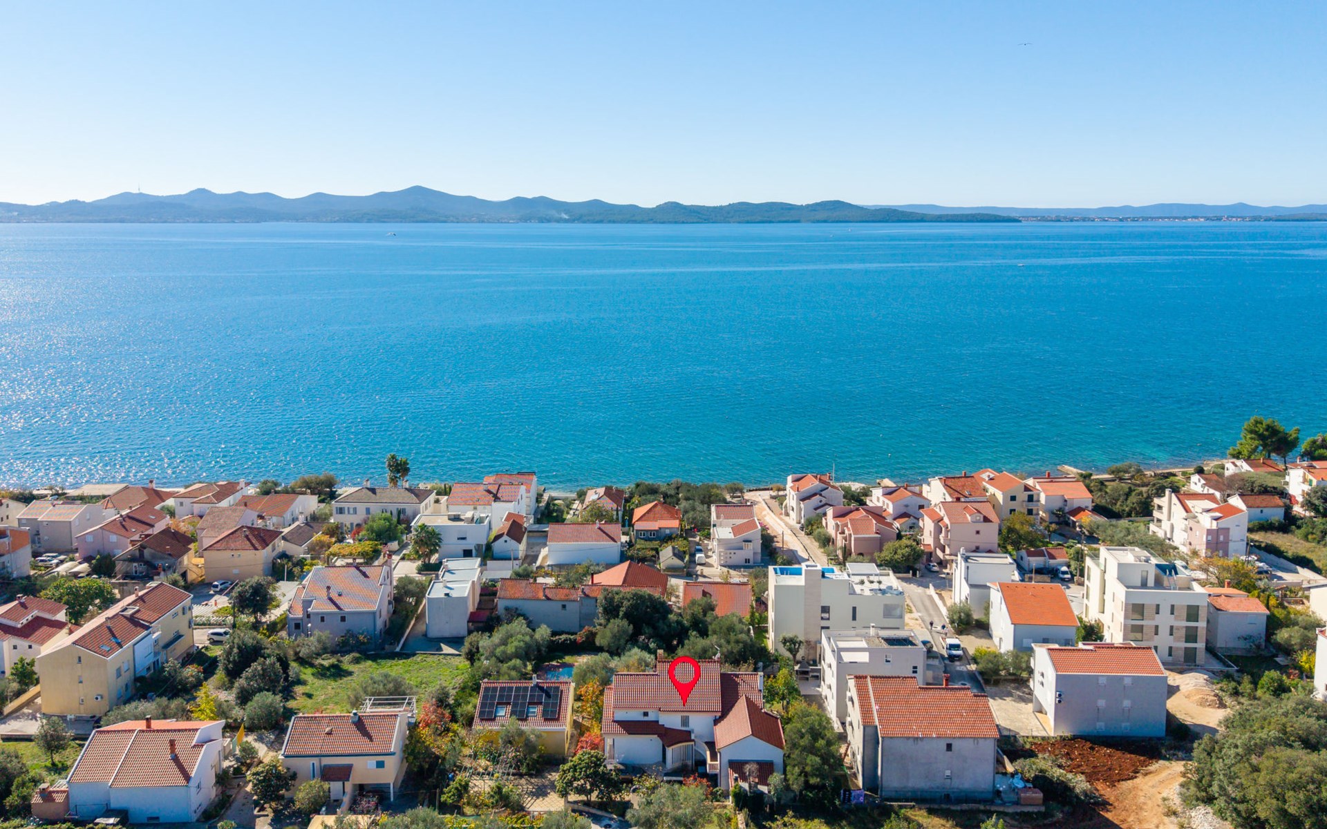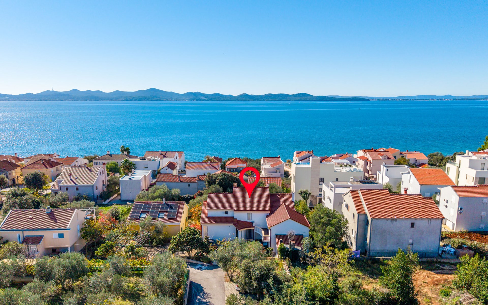 Beautiful, cosy 3-family house "Anica". In the district of Diklo, 6 km from the centre of Zadar, outside the resort, in a quiet, sunny, elevated position in the residential district, 150 m from the sea, 150 m from the beach, in the countryside, south facing position. For shared use: property 300 m2 (fenced), garden with lawn and trees. Private: hot tub, parking at the house on the premises. Shop 400 m, restaurant 450 m, bus stop 400 m, rocky beach 300 m, public bathing area 2.5 km, concrete beach 150 m. Tennis, sports centre 400 m.