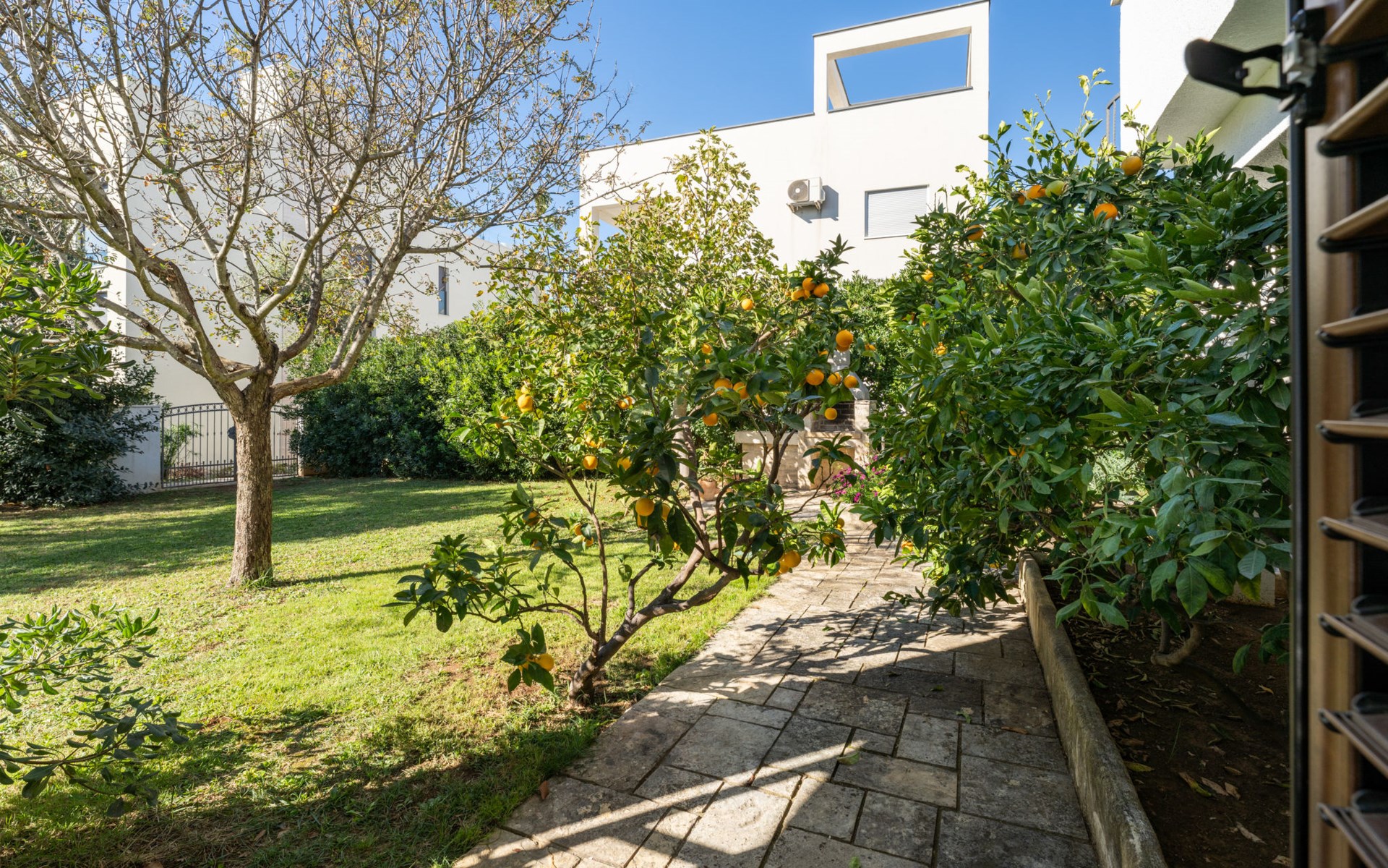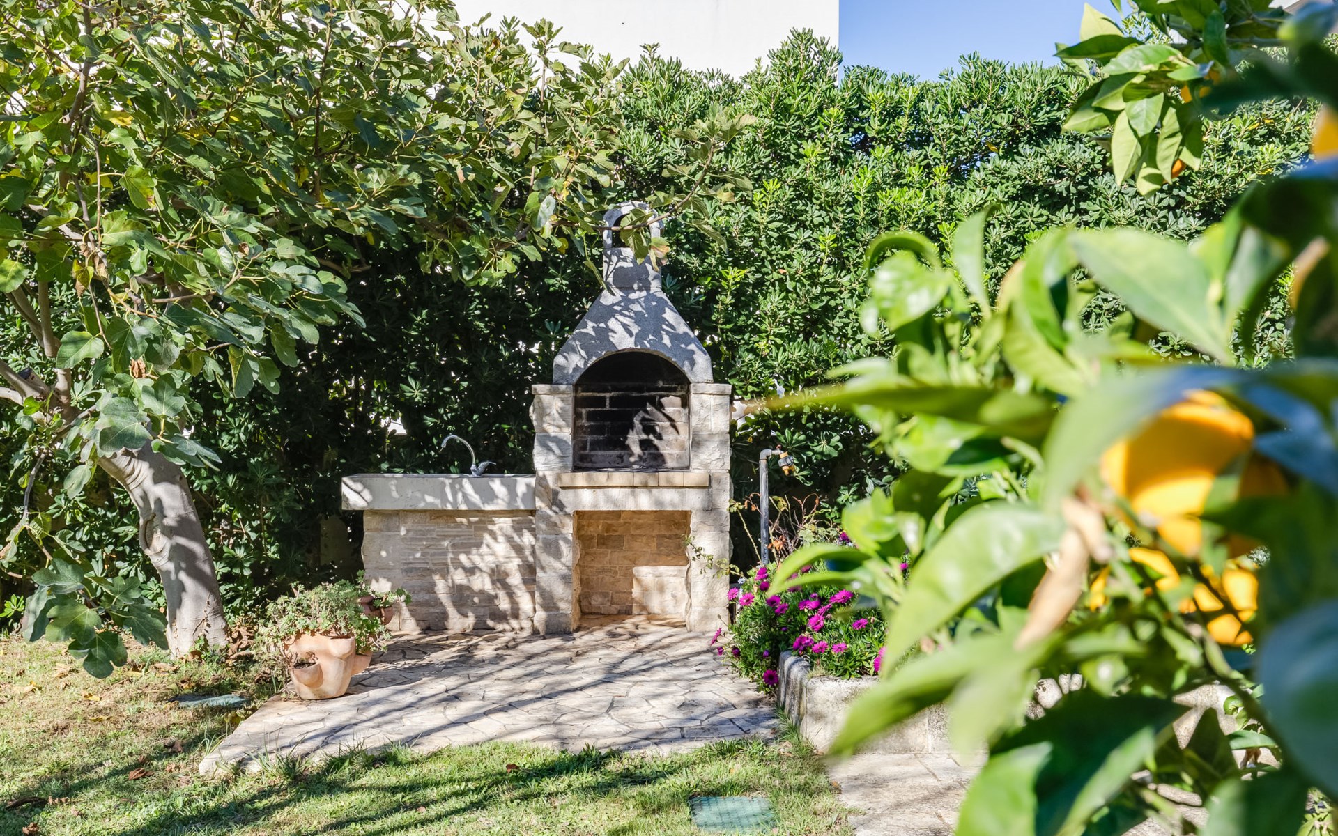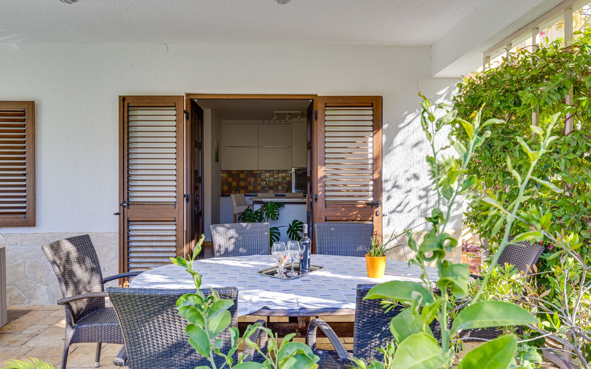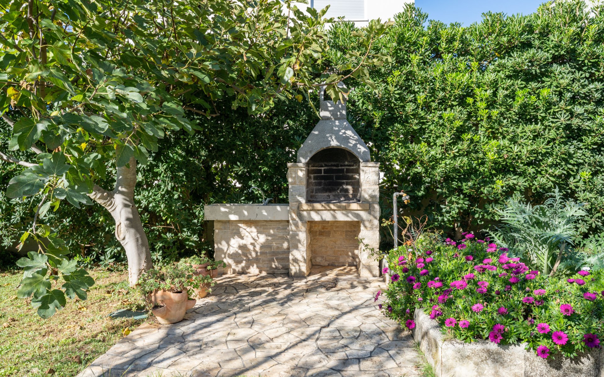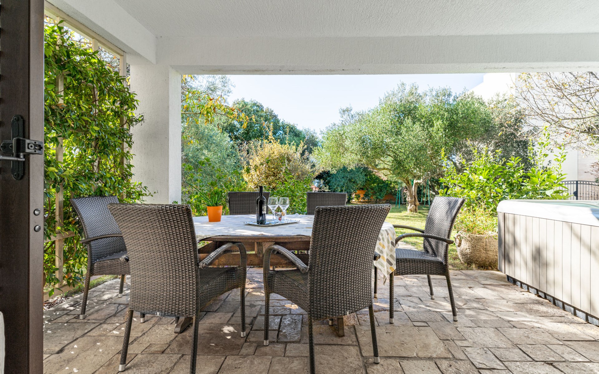 Beautiful, cosy 3-family house "Anica". In the district of Diklo, 6 km from the centre of Zadar, outside the resort, in a quiet, sunny, elevated position in the residential district, 150 m from the sea, 150 m from the beach, in the countryside, south facing position. For shared use: property 300 m2 (fenced), garden with lawn and trees. Private: hot tub, parking at the house on the premises. Shop 400 m, restaurant 450 m, bus stop 400 m, rocky beach 300 m, public bathing area 2.5 km, concrete beach 150 m. Tennis, sports centre 400 m.