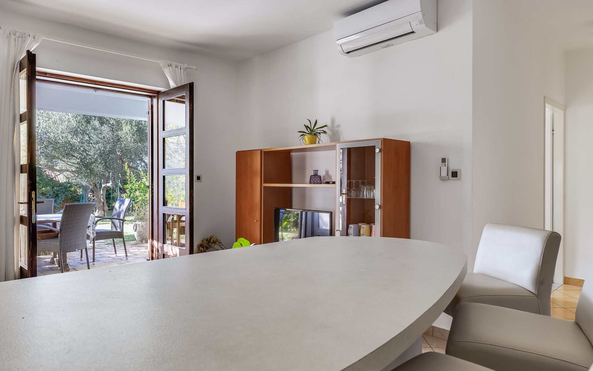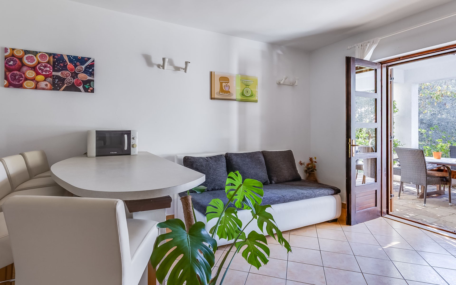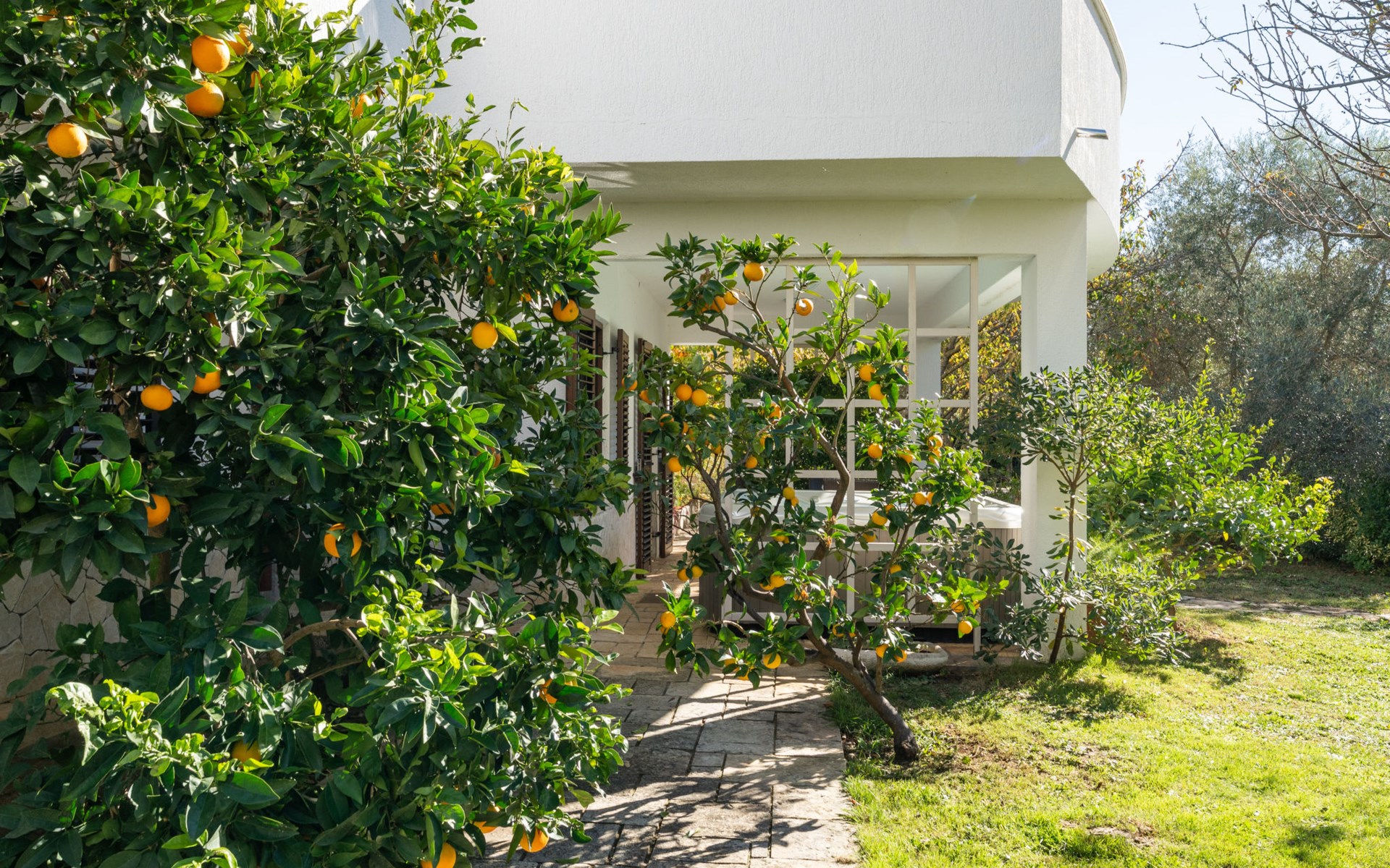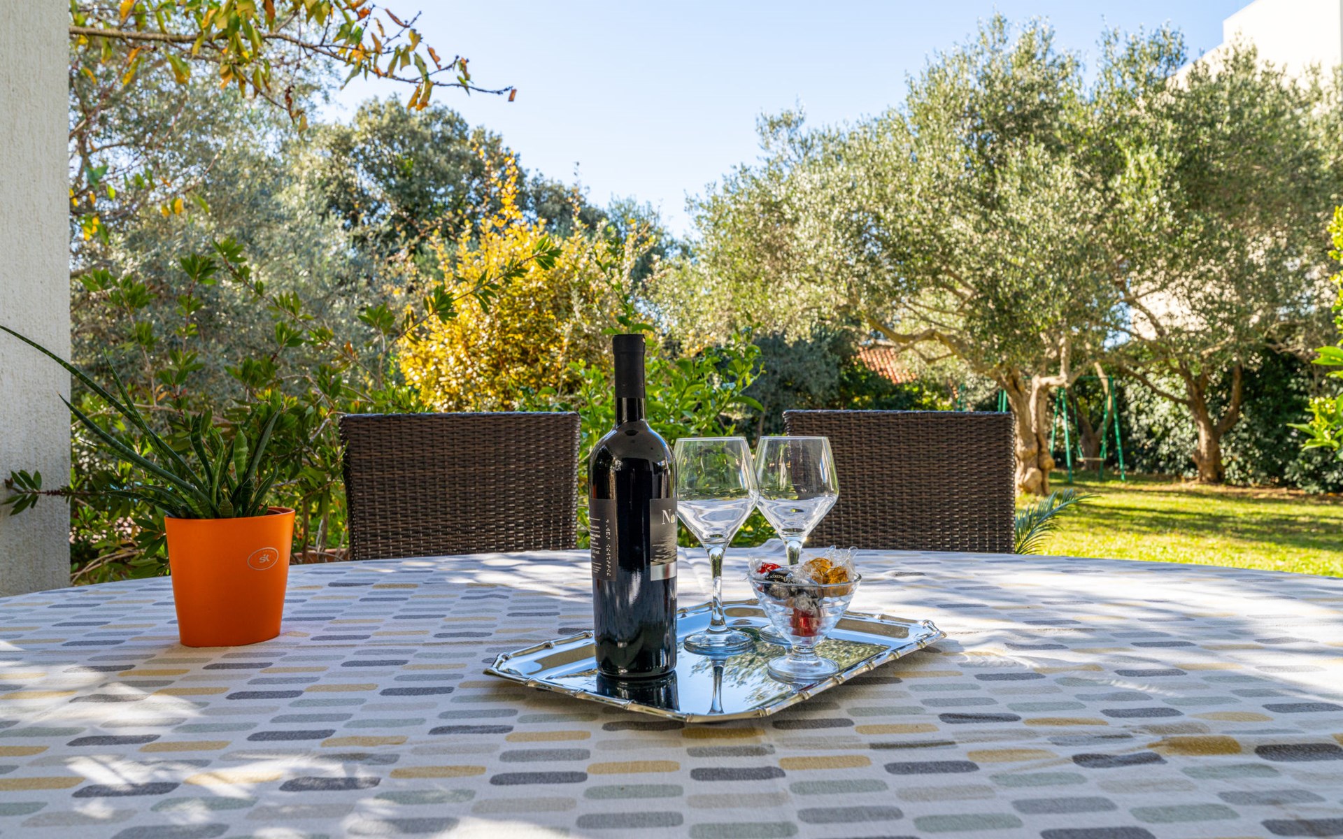 Beautiful, cosy 3-family house "Anica". In the district of Diklo, 6 km from the centre of Zadar, outside the resort, in a quiet, sunny, elevated position in the residential district, 150 m from the sea, 150 m from the beach, in the countryside, south facing position. For shared use: property 300 m2 (fenced), garden with lawn and trees. Private: hot tub, parking at the house on the premises. Shop 400 m, restaurant 450 m, bus stop 400 m, rocky beach 300 m, public bathing area 2.5 km, concrete beach 150 m. Tennis, sports centre 400 m.
