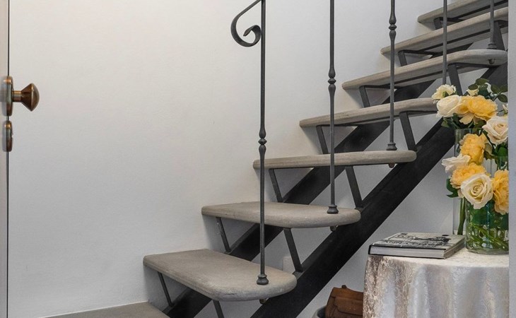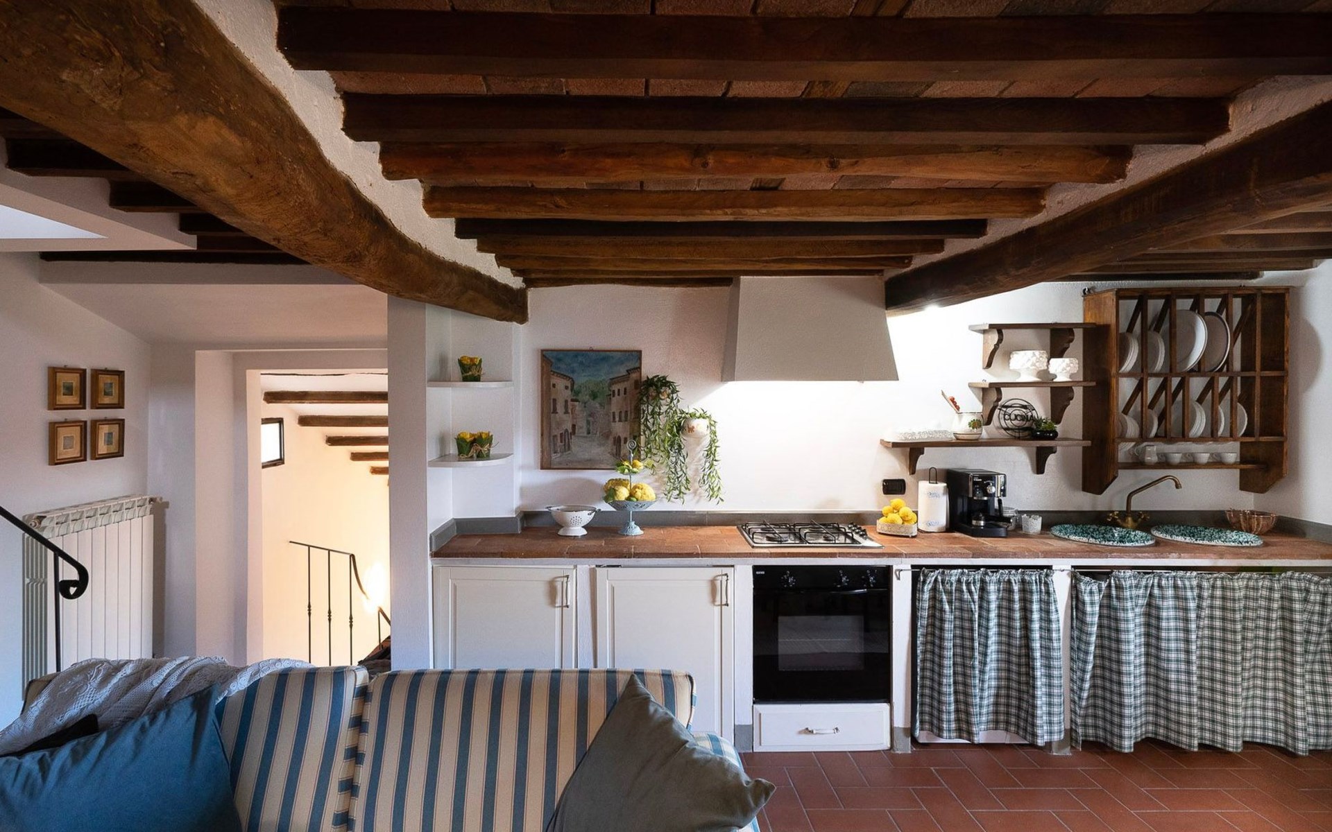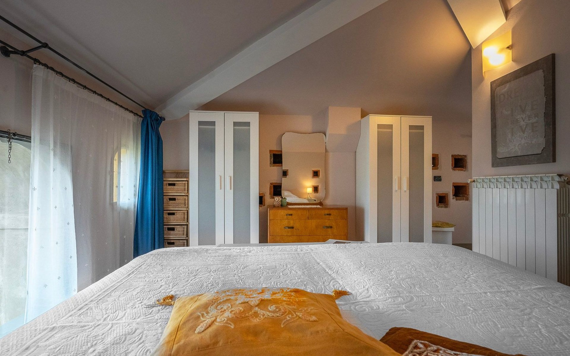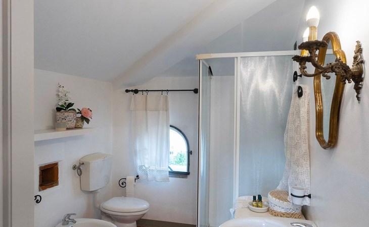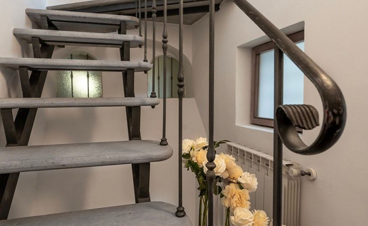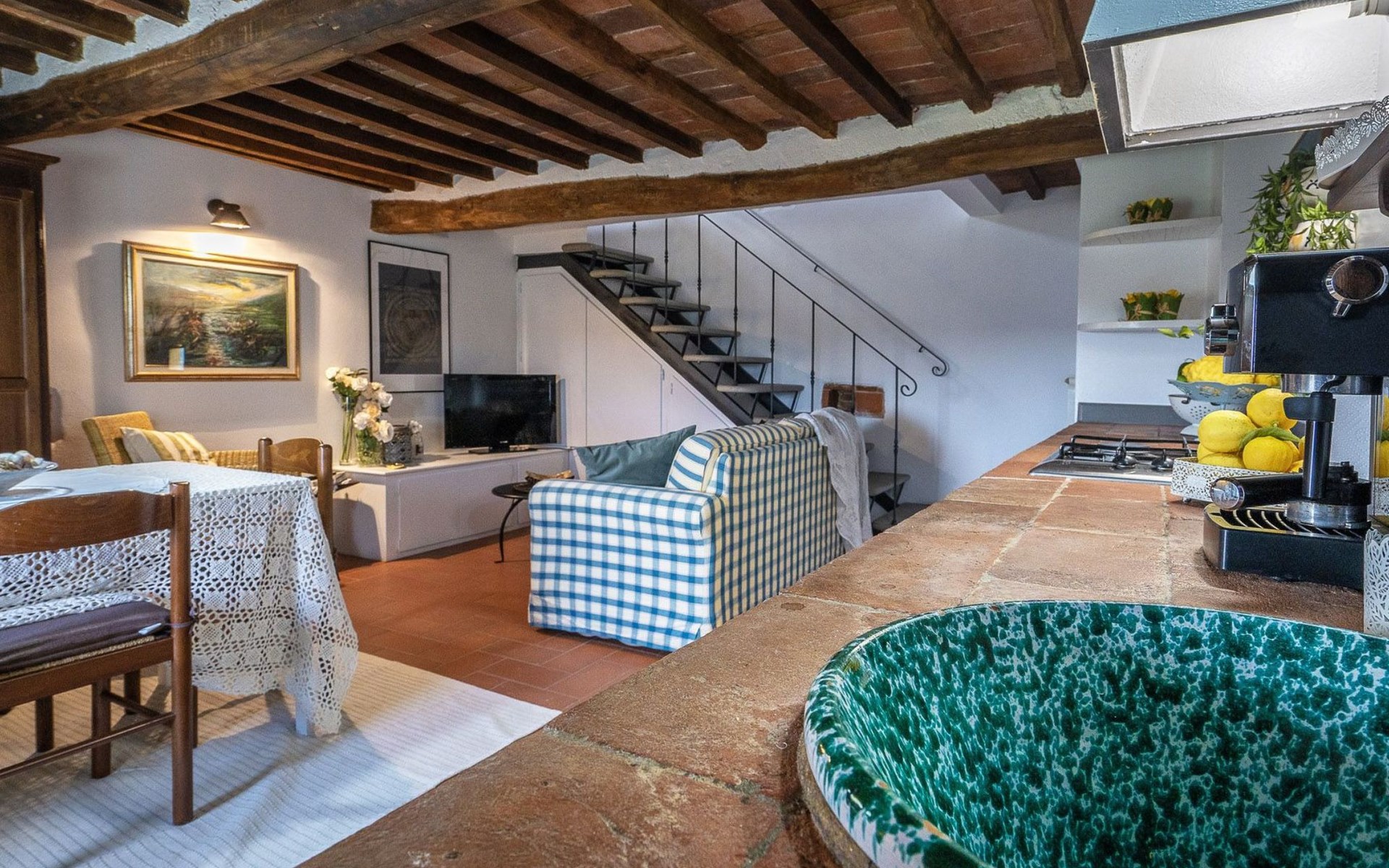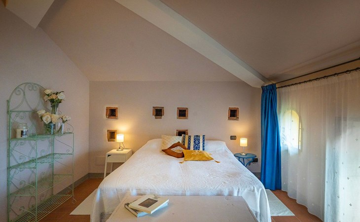 The living area consists of a kitchen, dining table and relaxation area. Going upstairs you will find the sleeping area with double bedroom and bathroom. La Colombaia apt has heating, air conditioning (for the sleeping area) and private parking inside.