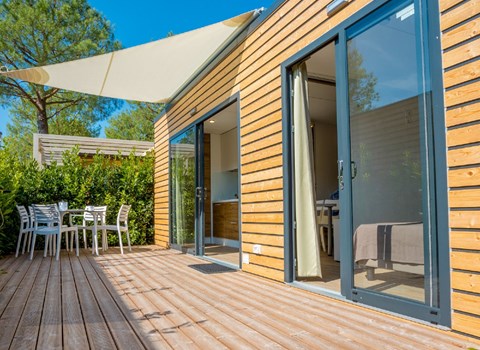 In the garden of the villa each flat has its own private and reserved area, divided by high hedges. The one in the Colombaia apt is furnished with white iron seats and two comfortable deckchairs.