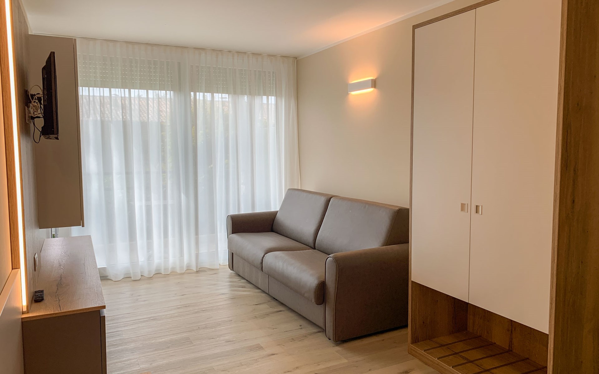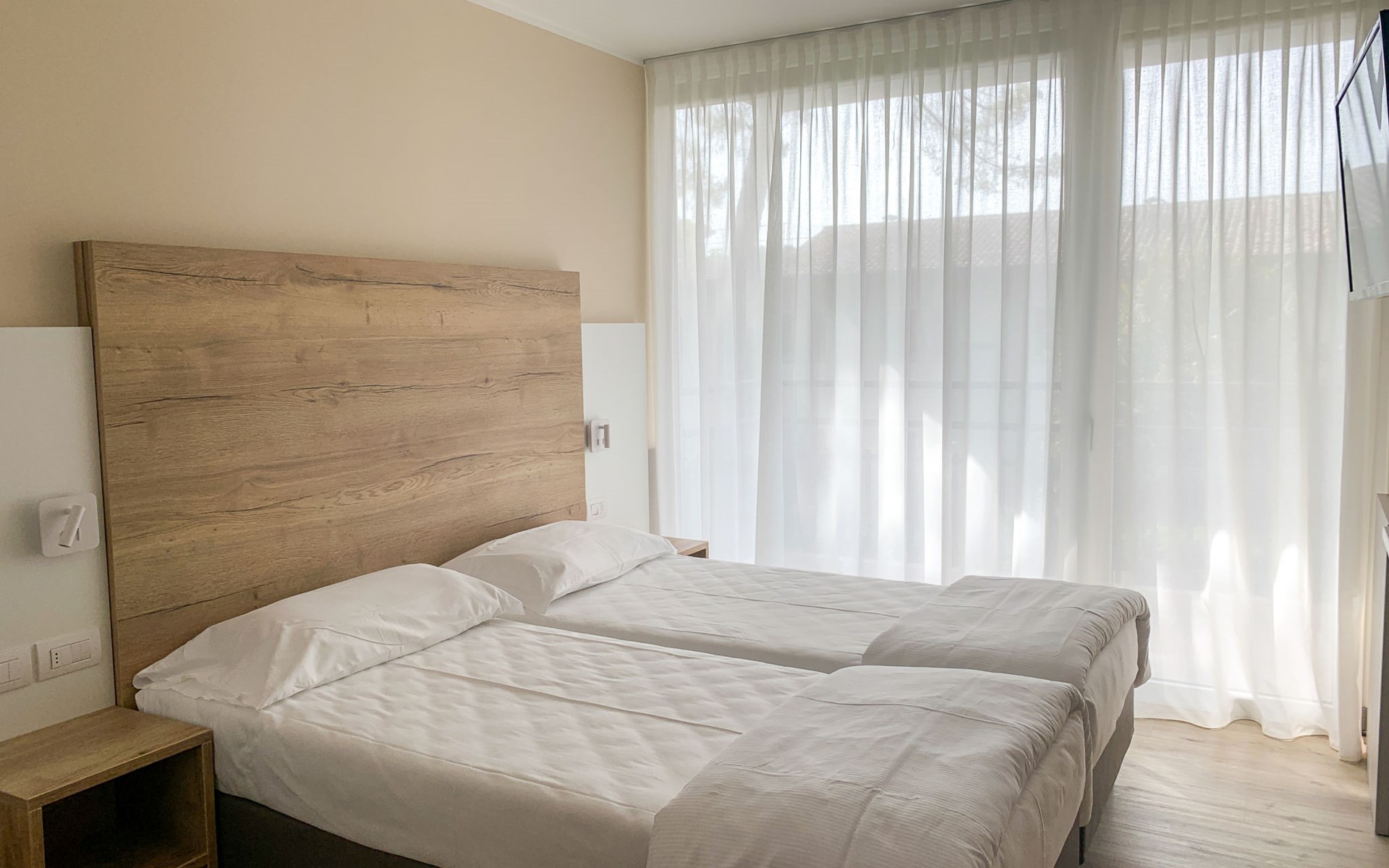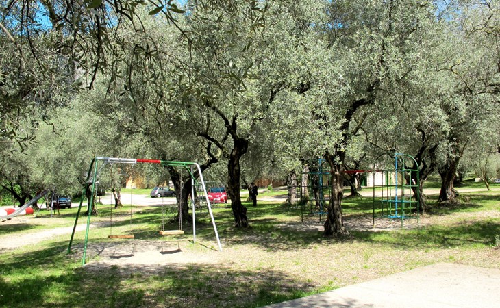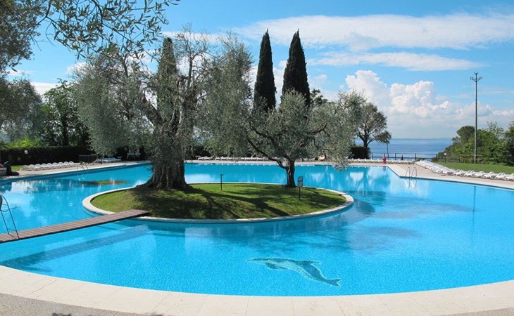 Large, simple resort "Parco del Garda". 248 houses in the resort. Above Garda, 1 km from the centre, in an elevated position on top of a hill, 900 m from the lake, 900 m from the beach, road to cross. For shared use: natural state property 11 ha with plants and trees, 2 swimming pools (depth 40 - 170 cm, seasonal availability: 01.Apr. - 31.Oct.). Unconventional pool shape. WC in the pool area, children's pool, outdoor shower, tennis (4 x clay court) (extra), beach volleyball, garden furniture, children's playground. In the complex: reception, restaurant, bar, internet access, WiFi, table tennis, shopping facilities, heating to be paid on the spot. Parking on the premises. Bus stop 300 m, pebble beach 900 m. Golf course (18 hole) 4 km. Nearby attractions: Peschiera del Garda 19 km, Malcesine 27 km, Verona 40 km. Please note: baby equipment on request (extra).