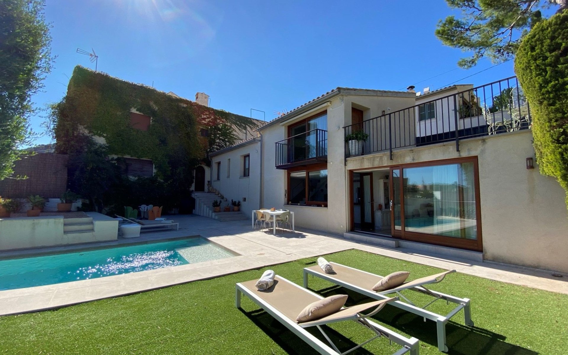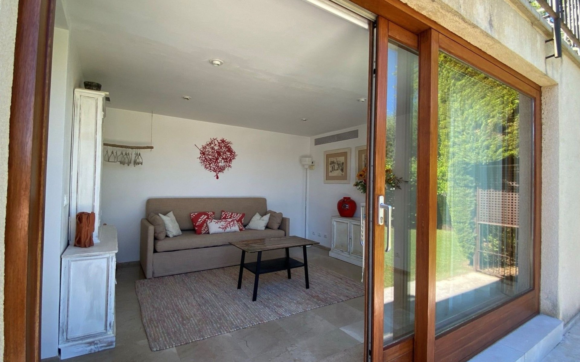 50 m2 of lawn, terrace with beach towels and parasol, plus private parking for one car next to the house.
