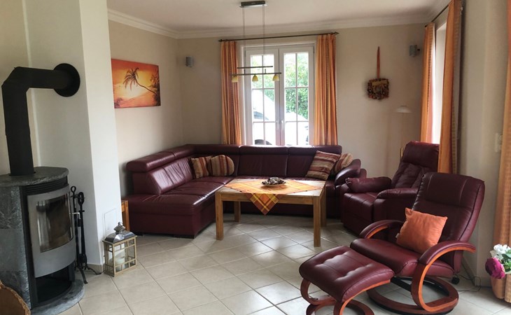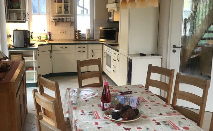 Inside the house you will find a living room with soapstone stove, underfloor heating, home cinema and a dining area for 10 people. The well-equipped kitchen with oven, fridge/freezer, microwave, dishwasher and a spacious French door fridge/freezer in the annexe allows you to prepare meals in a convivial atmosphere. There are also two bathrooms with indoor whirlpool, wall-mounted radiators for towels and underfloor heating, as well as several bedrooms with double and single beds, all with underfloor heating.