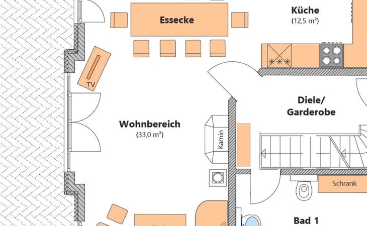 In the immediate vicinity, natural beaches invite you to linger and the Baltic Sea long-distance cycle path offers opportunities for extensive cycle tours. Groß Schwansee, an insider tip among connoisseurs, is characterised by its quiet location with no through traffic. In the immediate vicinity you will find a wide range of leisure activities, including sailing schools, golf courses and the possibility of various water sports activities. Shopping facilities can be reached within 10 km, and the region offers numerous excursion destinations for culture lovers and active holidaymakers.
