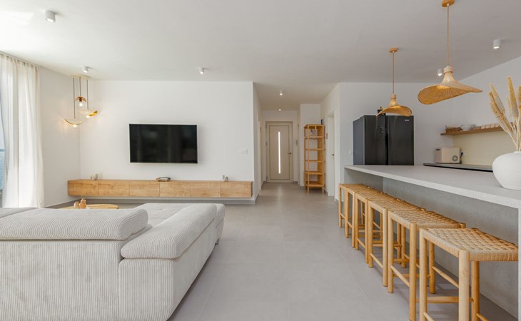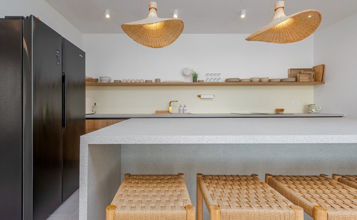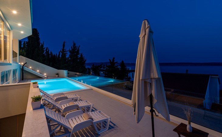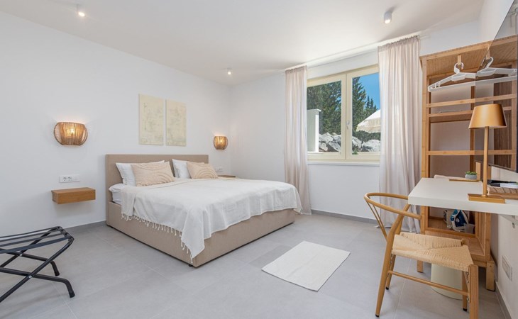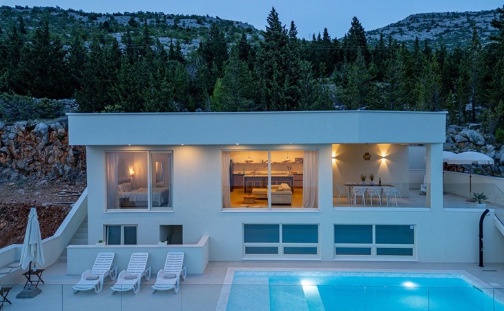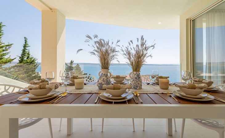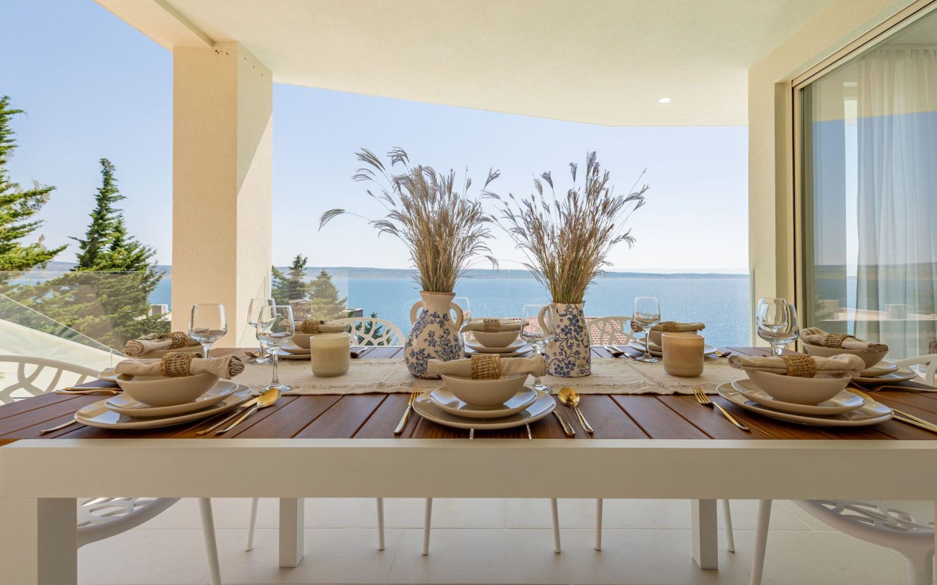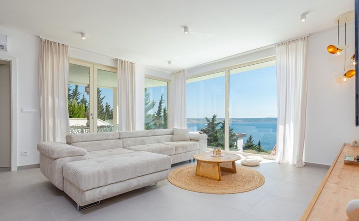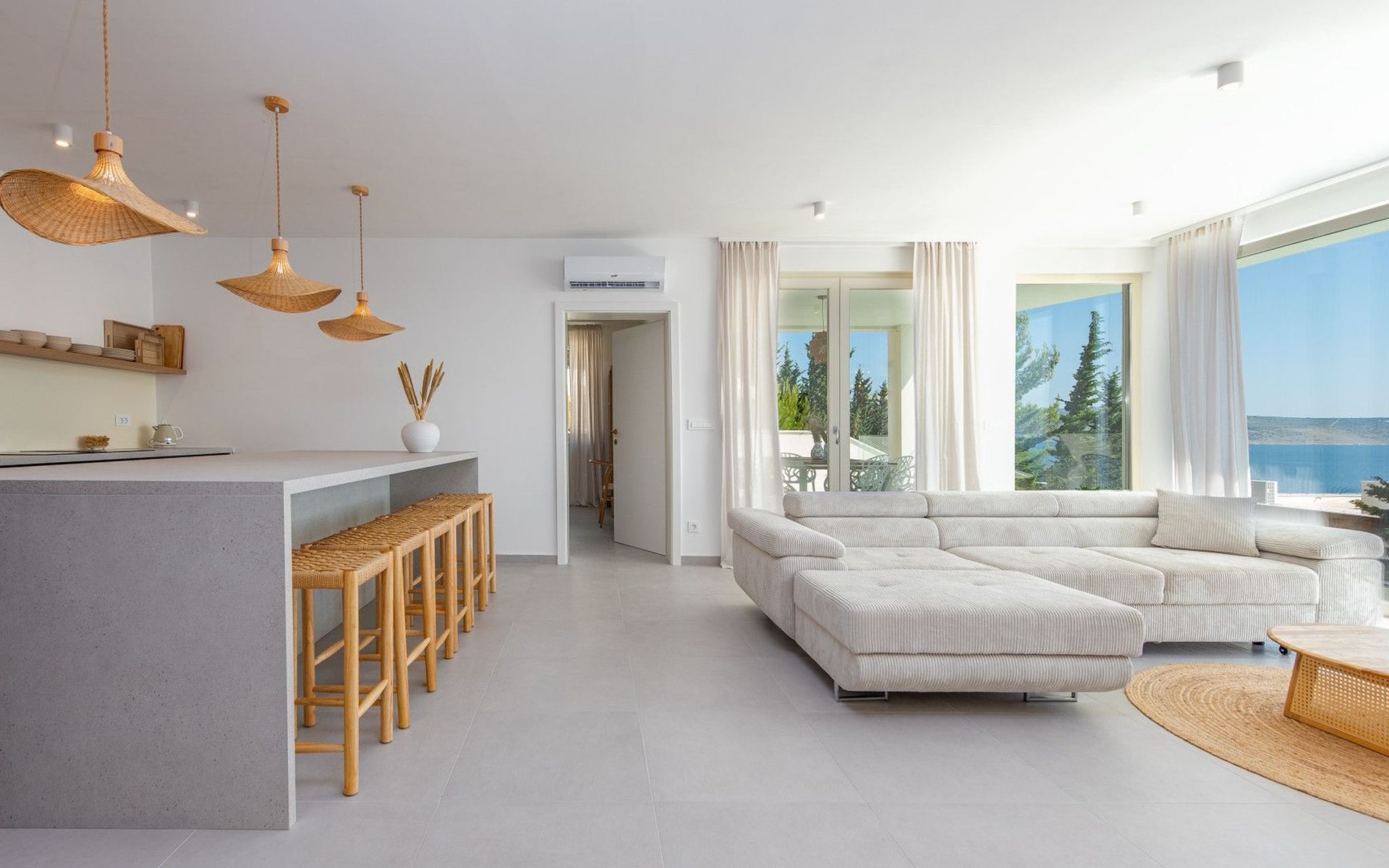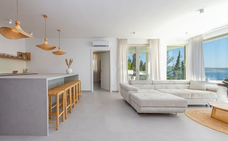 The interior of Villa Mara Ondo boasts two elegantly appointed bedrooms and two well-equipped bathrooms, ensuring privacy and convenience for all guests. Adding to the comfort, air conditioning is available in parts of the house, providing a cool retreat from the warm Dalmatian sun. For those who prefer to take a hands-on approach to holiday feasts, the inclusion of a coffee machine and electric kettle in the kitchen area allows for easy morning preparations and relaxing evenings. A washing machine and clothes dryer are also exclusively available for guests, ensuring all the comforts of home are at your fingertips.