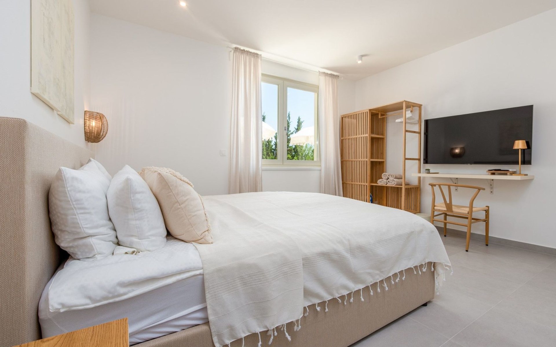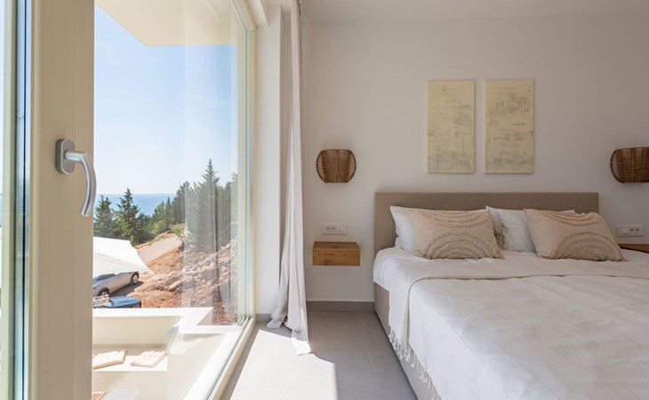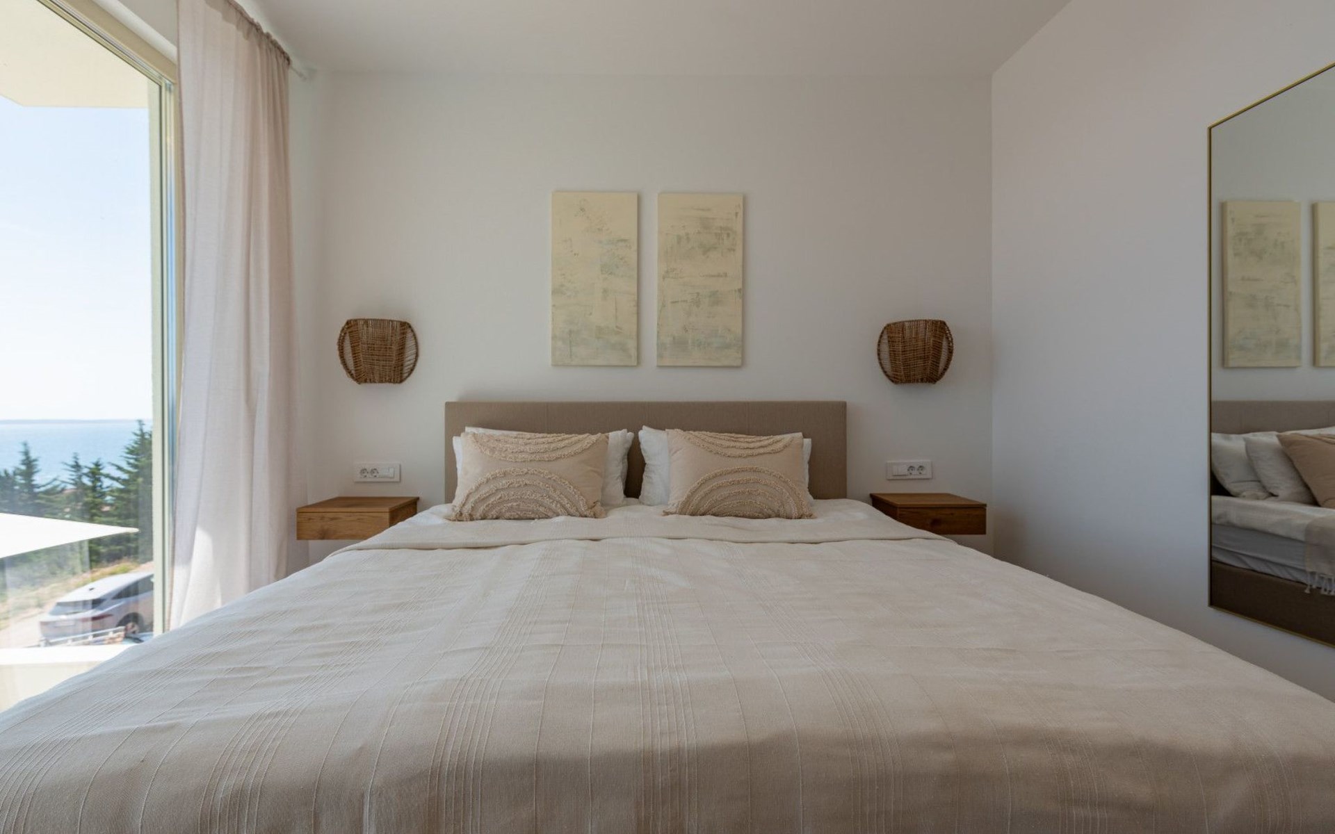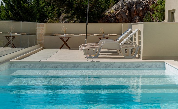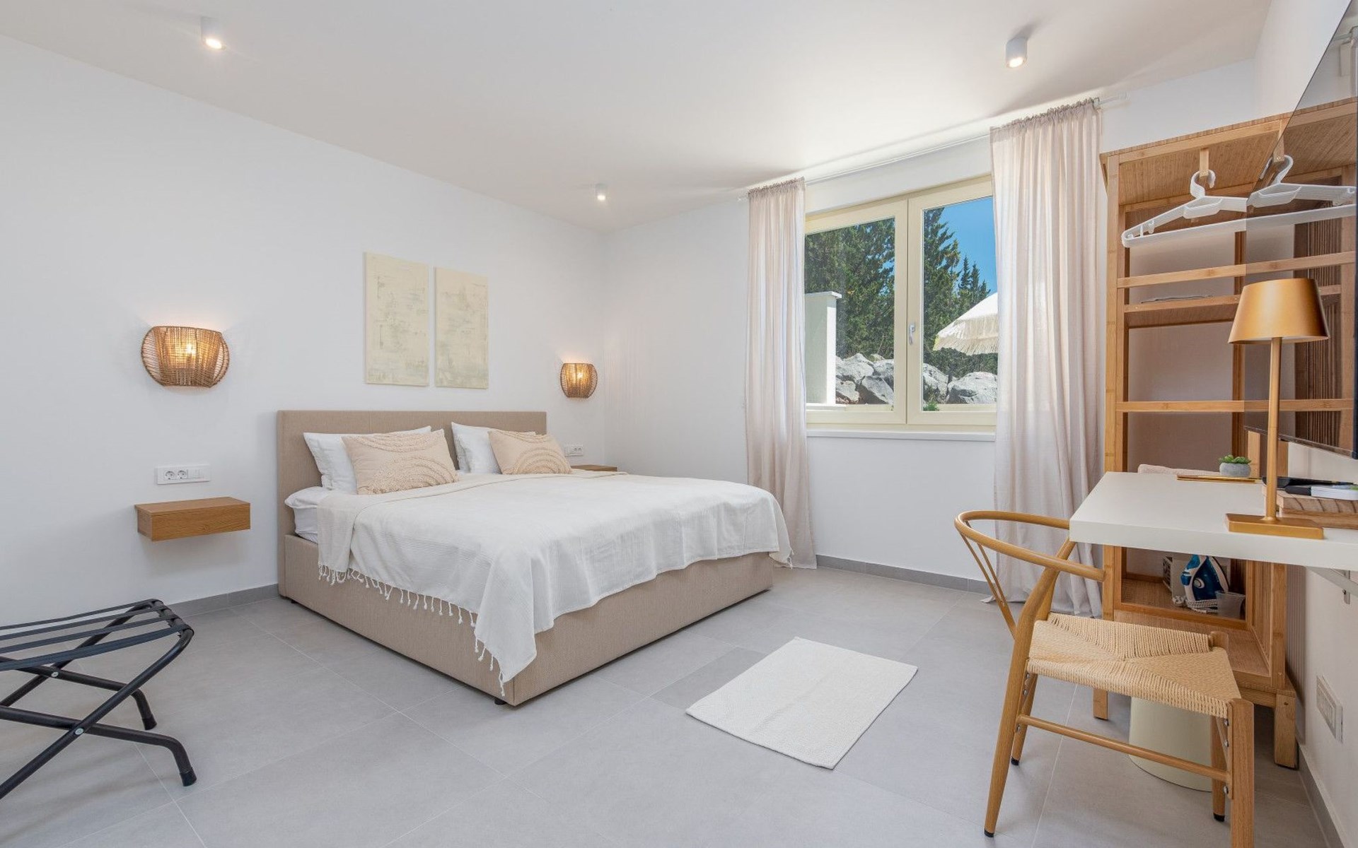 Outside, the charm of Villa Mara Ondo continues with a private pool set against the backdrop of beautifully manicured gardens, perfect for those leisurely swims or just lounging by the water's edge. The terrace and balcony offer additional spaces for relaxation or dining al fresco, making the most of the serene setting and gentle breeze.