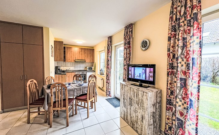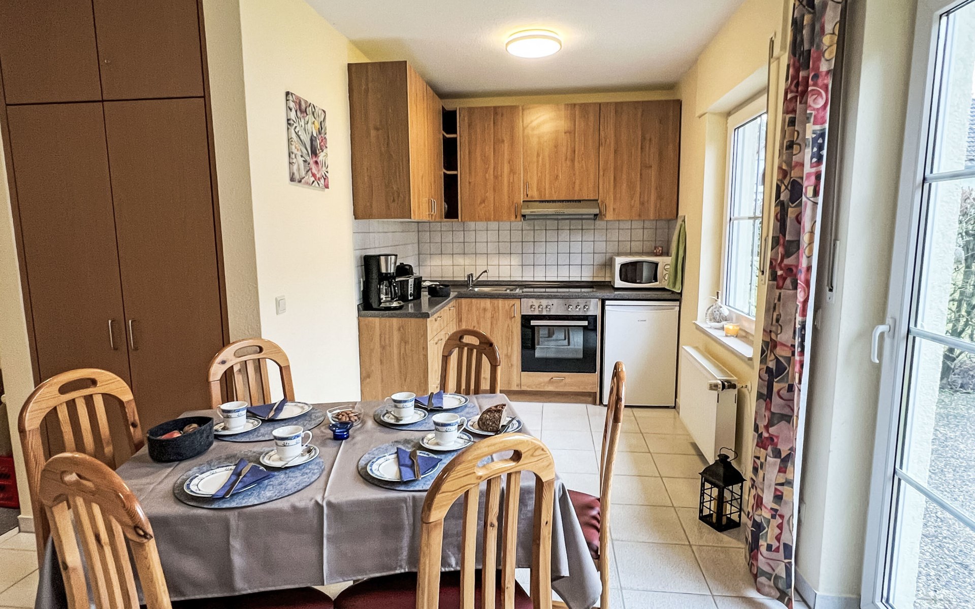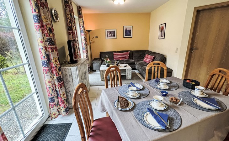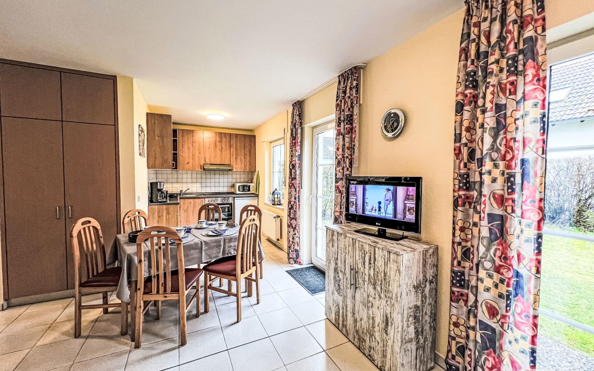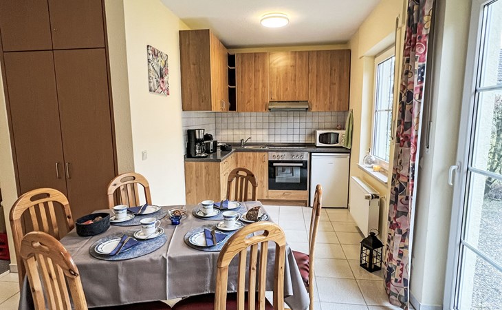 Semi-detached house "Schwalbennest", surrounded by meadows and fields. 39 houses in the resort. 800 m from the centre of Lenz, on the outskirts, 6.5 km from the centre of Malchow, 25 km from the centre of Plau am See, on a slope, 80 m from the lake, direct access to the beach. For shared use: table tennis, children's playground. In the complex: reception, internet access, WiFi, washing machine, tumble dryer (for shared use, extra), bicycle rental. Central parking spaces. Supermarket 8 km, bus stop "Fünfseen Lenzer Höh" 950 m, grass beach 80 m. Marina 1 km, riding stable 800 m.