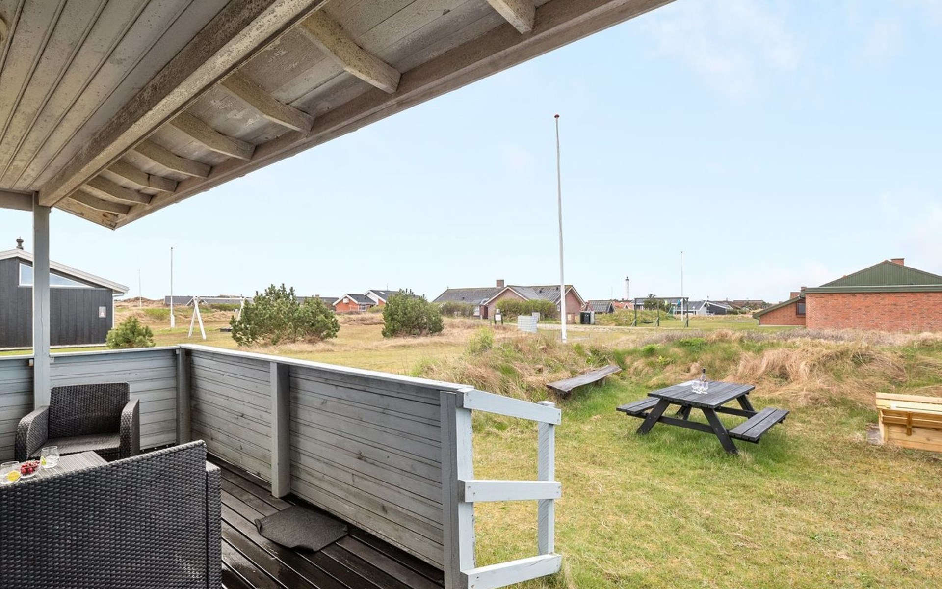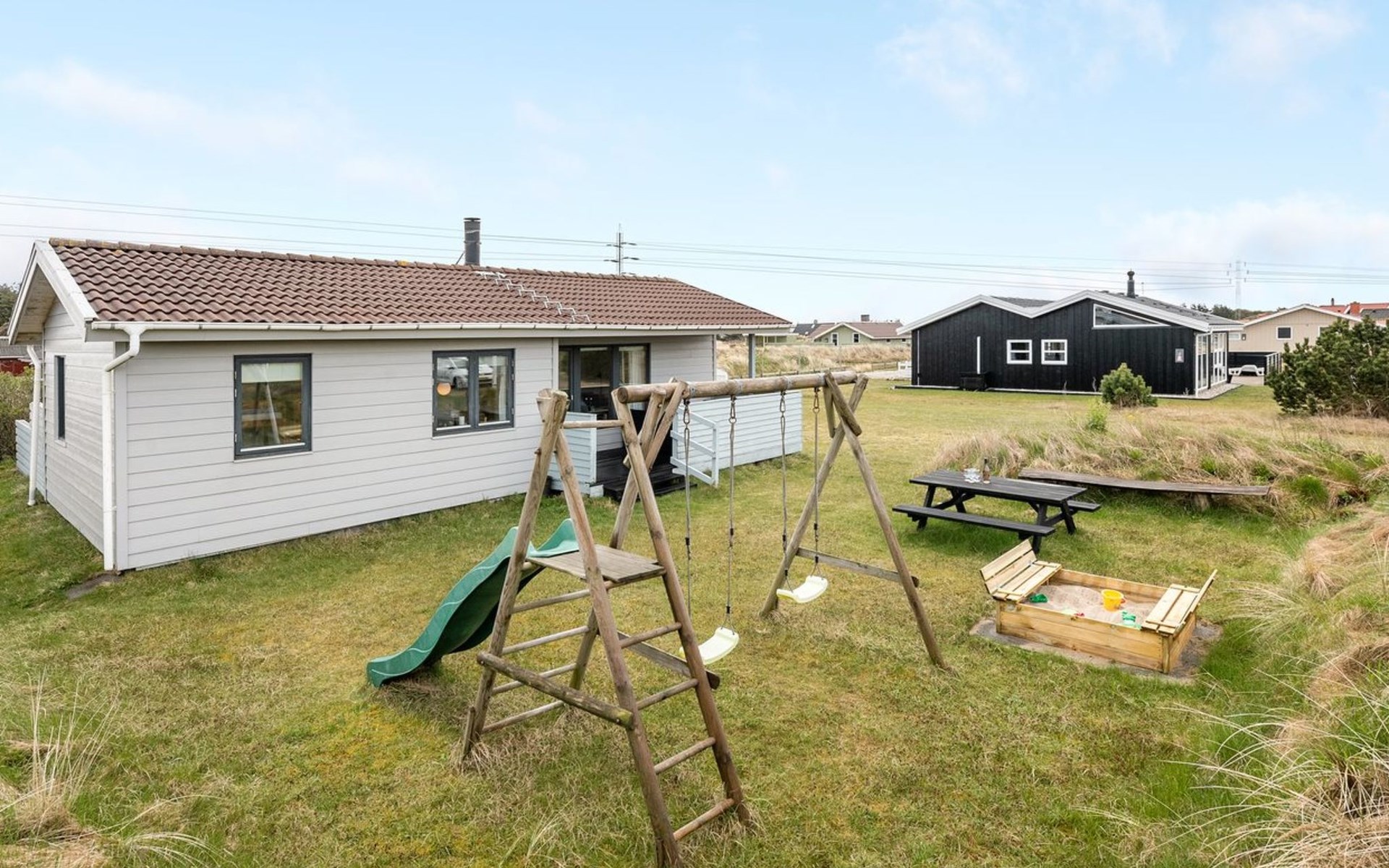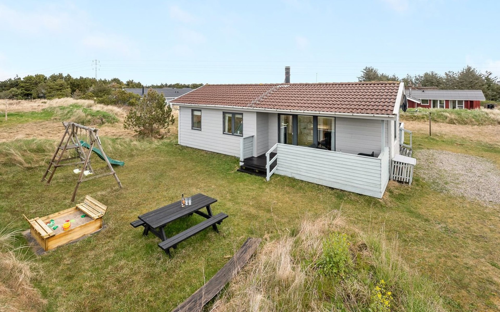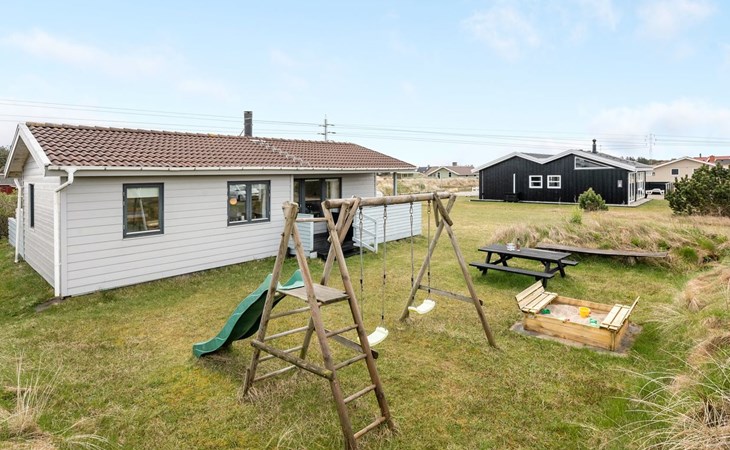 Single-family house, built in 1986. 800 m from the sea. Private: natural state property 1'400 m2. Terrace (25 m2), children's playground (swing). In the house: washing machine. Parking at the house. Grocery 3 km. The owner does not accept any youth groups.