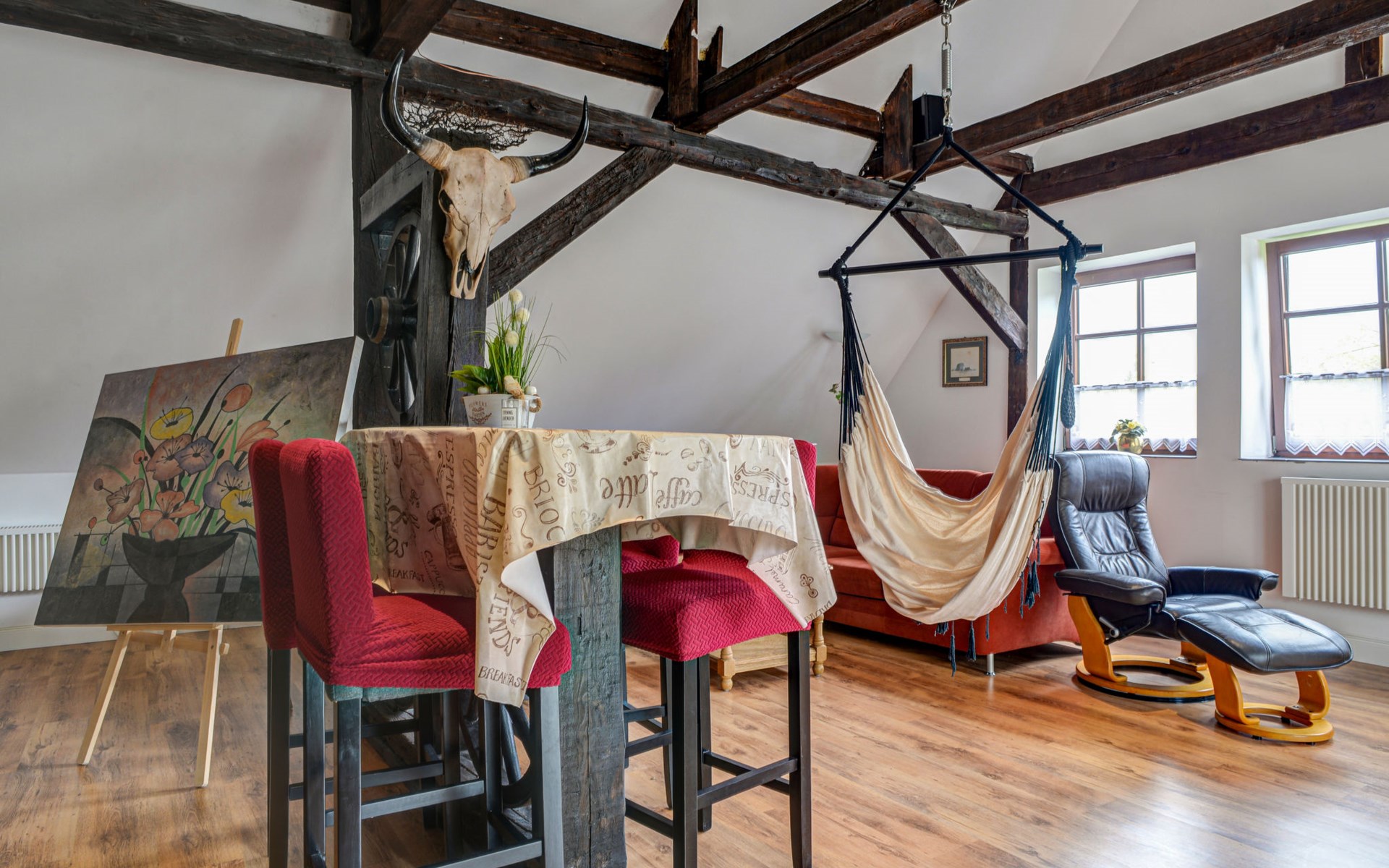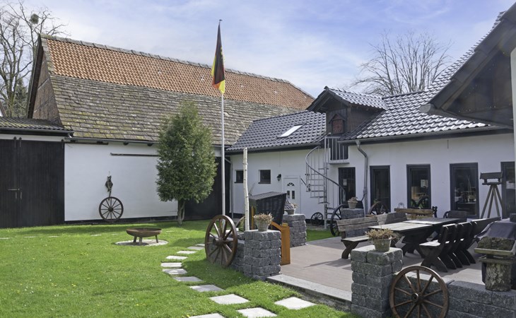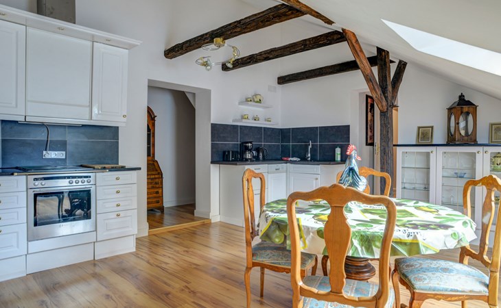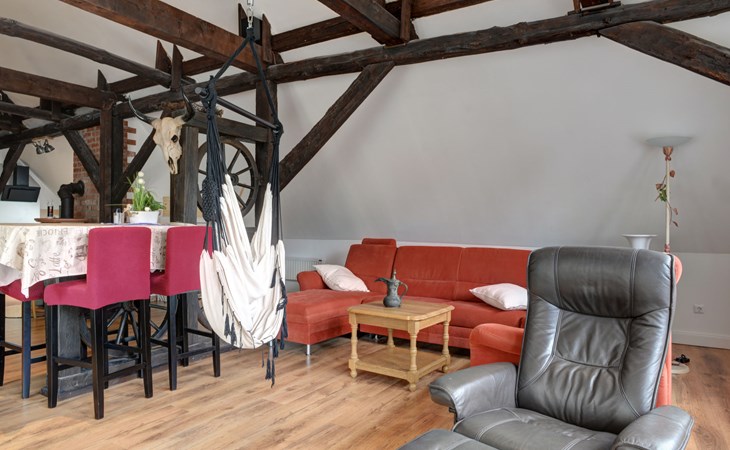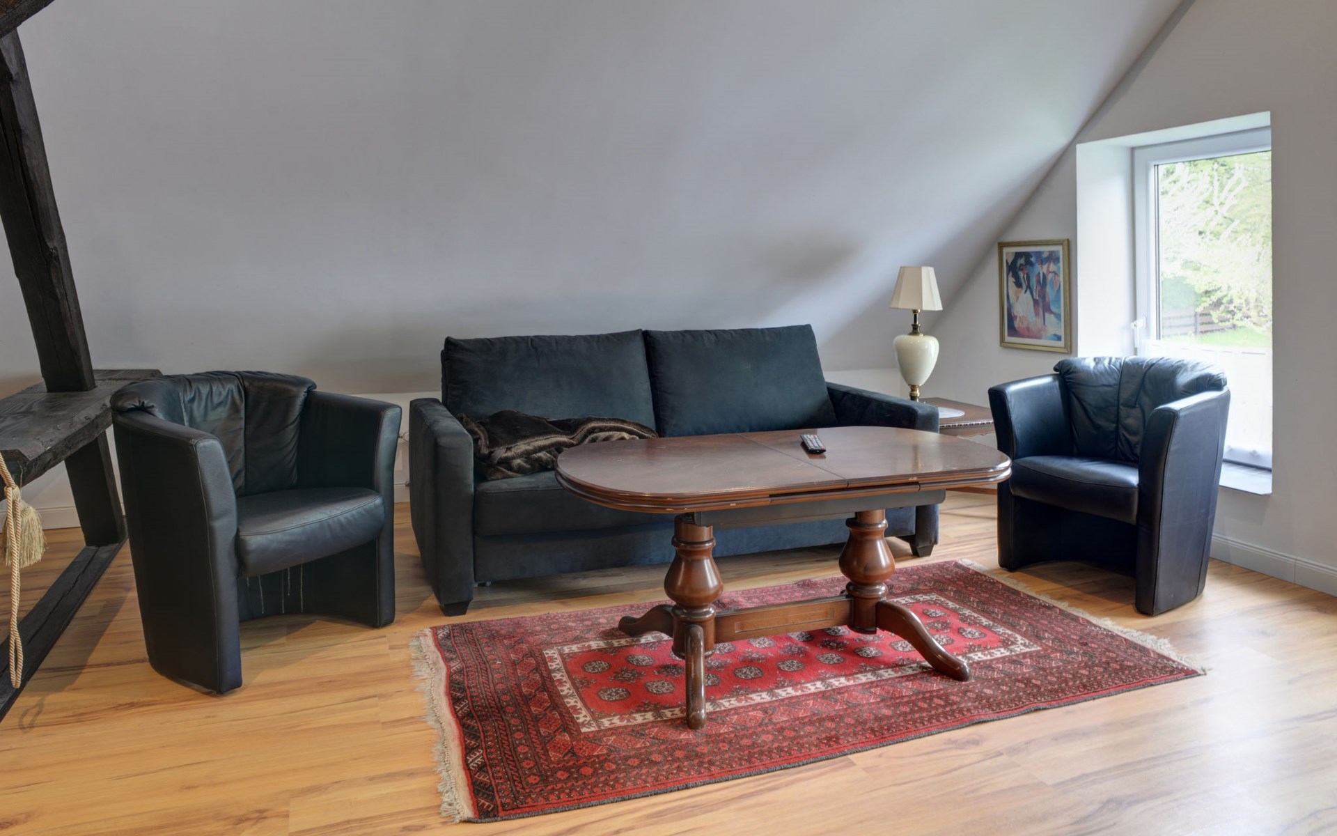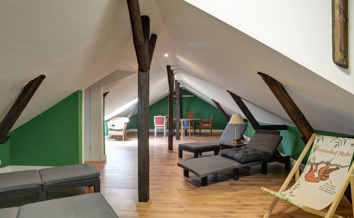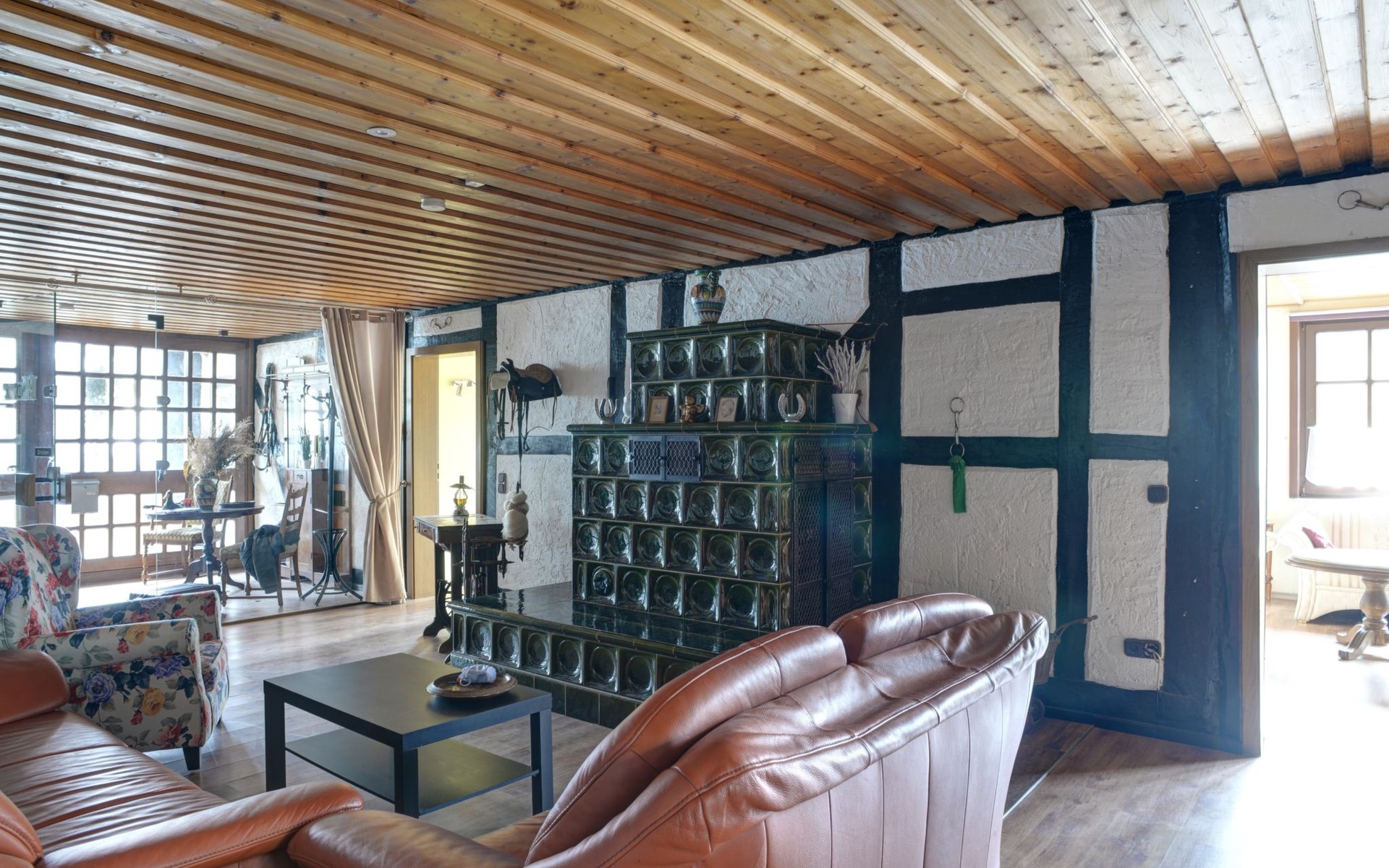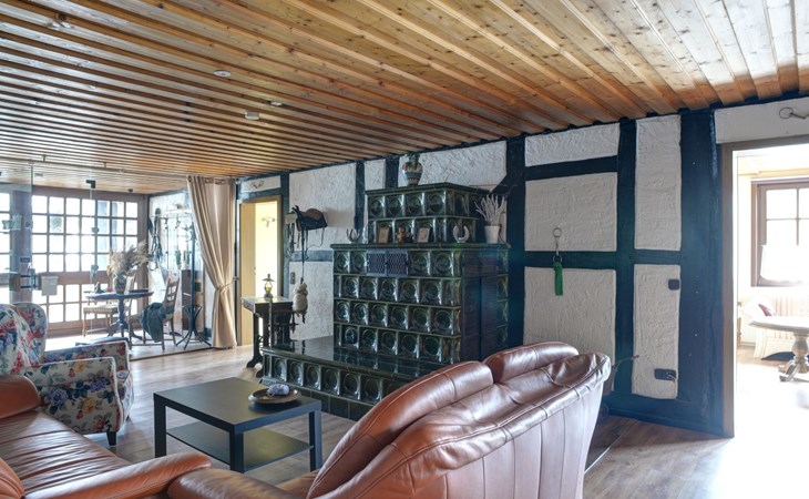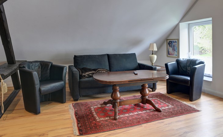 Beautiful, historical working farm, 3 storeys, from the 19th century, renovated in 2019, surrounded by trees and meadows. In the district of Hohe 5.3 km from the centre of Hehlen, 5 km from the centre of Bodenwerder, in a quiet position, 400 m from the edge of the forest. For shared use: large garden 1'500 m2 (fenced) with lawn and trees. Terrace (20 m2), garden furniture, barbecue, children's playground (slide, swing). In the complex: fitness room (extra). Storage room for bicycles, central heating system, washing machine (for shared use, extra), drying room. Parking (for 10 cars) on the premises, single garage (extra) at the house. Shop 7 km, grocery 5 km, supermarket 7 km, restaurant 5 km, bakery 5 km, bus stop "Hohe" 20 m, ferry "Hehlen" 8 km, outdoor swimming pool 8 km, indoor swimming pool 9 km. Walking paths from the house 200 m. Nearby attractions: Welterbe Corvey 33 km, Porzellanmanufaktur Fürstenberg 40 km. Well-known lakes can easily be reached: Humboldtsee 28 km. Please note: car recommended. The owner does not accept any youth groups. Garden seating area (200 m2) and the second terrace (9 m2) are available for shared use (both terraces are not visible to each other). Finnish steam tub (available 01.04.-30.11.) for shared use.