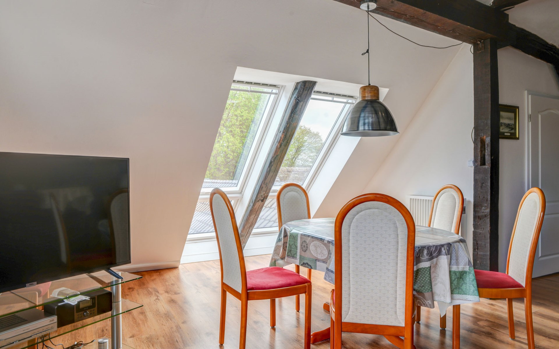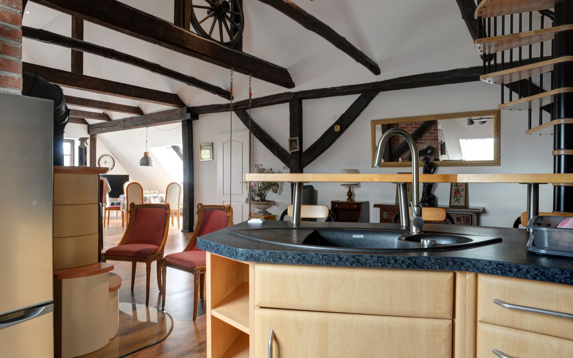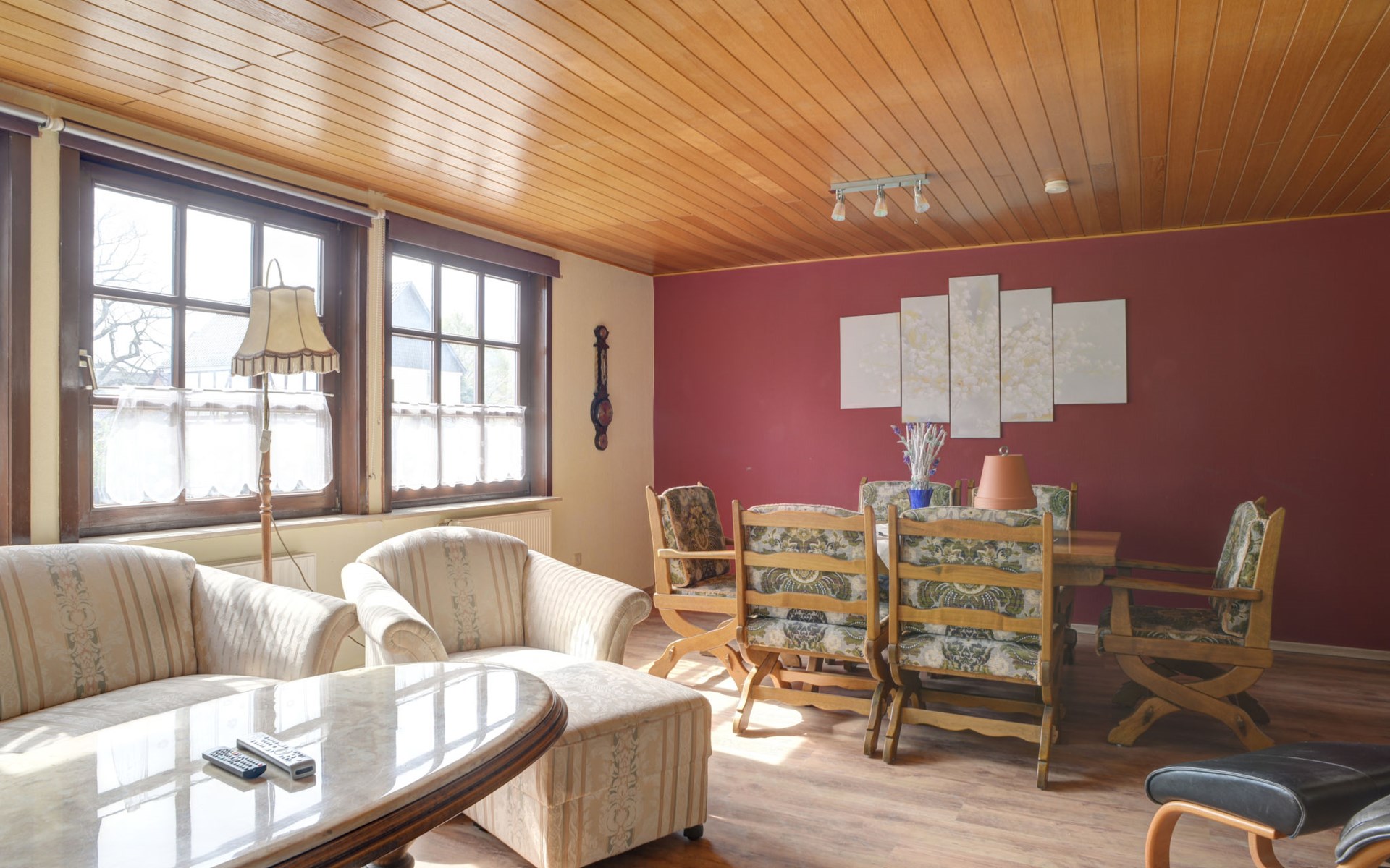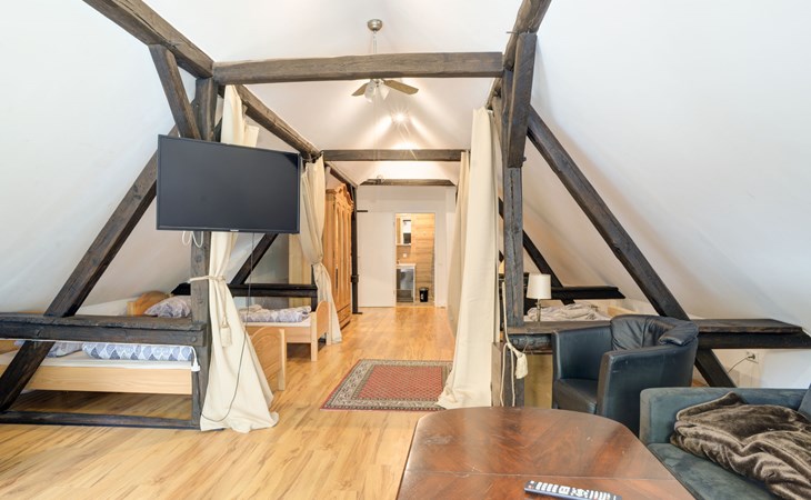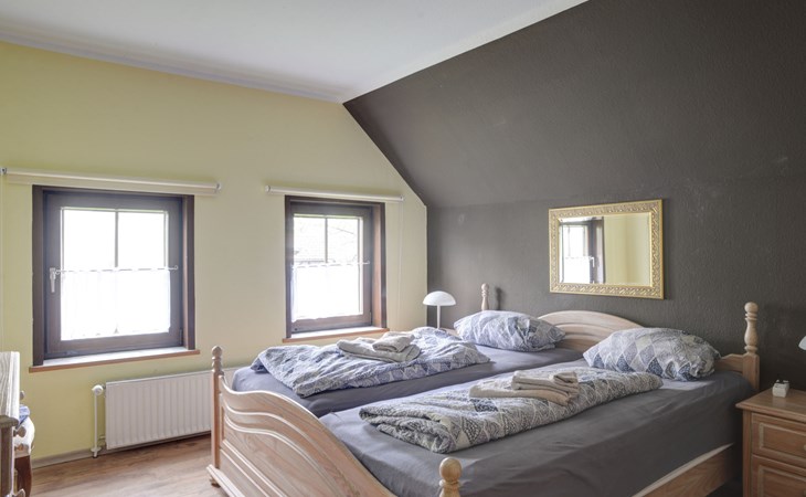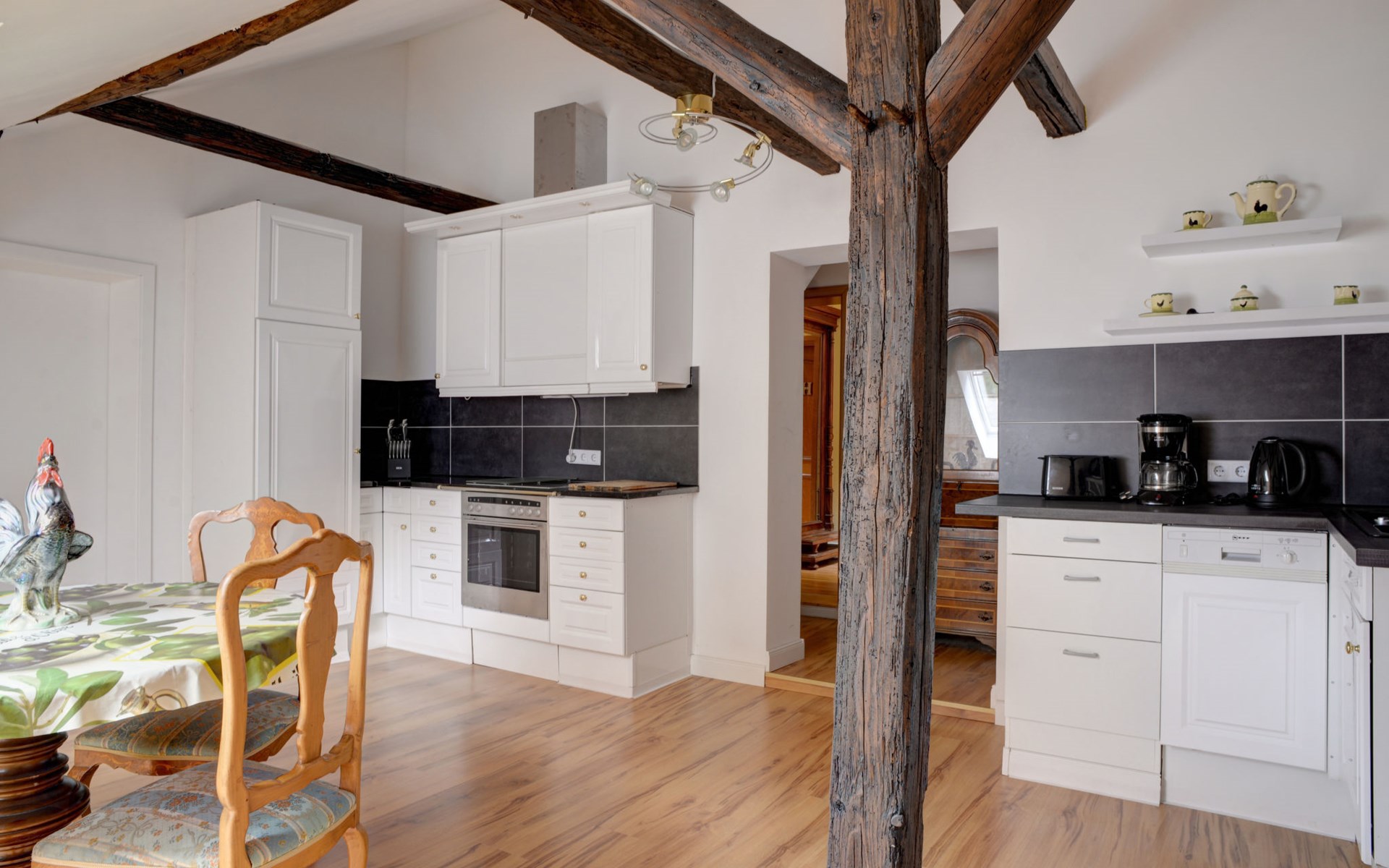 Beautiful, historical working farm, 3 storeys, from the 19th century, renovated in 2019, surrounded by trees and meadows. In the district of Hohe 5.3 km from the centre of Hehlen, 5 km from the centre of Bodenwerder, in a quiet position, 400 m from the edge of the forest. For shared use: large garden 1'500 m2 (fenced) with lawn and trees. Terrace (20 m2), garden furniture, barbecue, children's playground (slide, swing). In the complex: fitness room (extra). Storage room for bicycles, central heating system, washing machine (for shared use, extra), drying room. Parking (for 10 cars) on the premises, single garage (extra) at the house. Shop 7 km, grocery 5 km, supermarket 7 km, restaurant 5 km, bakery 5 km, bus stop "Hohe" 20 m, ferry "Hehlen" 8 km, outdoor swimming pool 8 km, indoor swimming pool 9 km. Walking paths from the house 200 m. Nearby attractions: Welterbe Corvey 33 km, Porzellanmanufaktur Fürstenberg 40 km. Well-known lakes can easily be reached: Humboldtsee 28 km. Please note: car recommended. The owner does not accept any youth groups. Garden seating area (200 m2) and the second terrace (9 m2) are available for shared use (both terraces are not visible to each other). Finnish steam tub (available 01.04.-30.11.) for shared use.