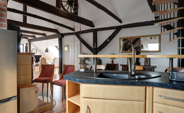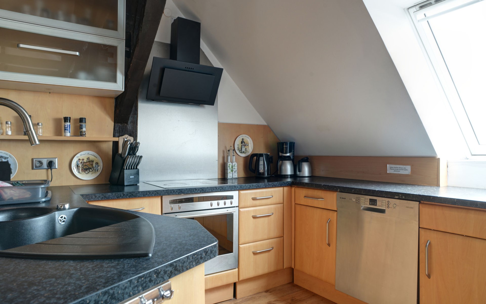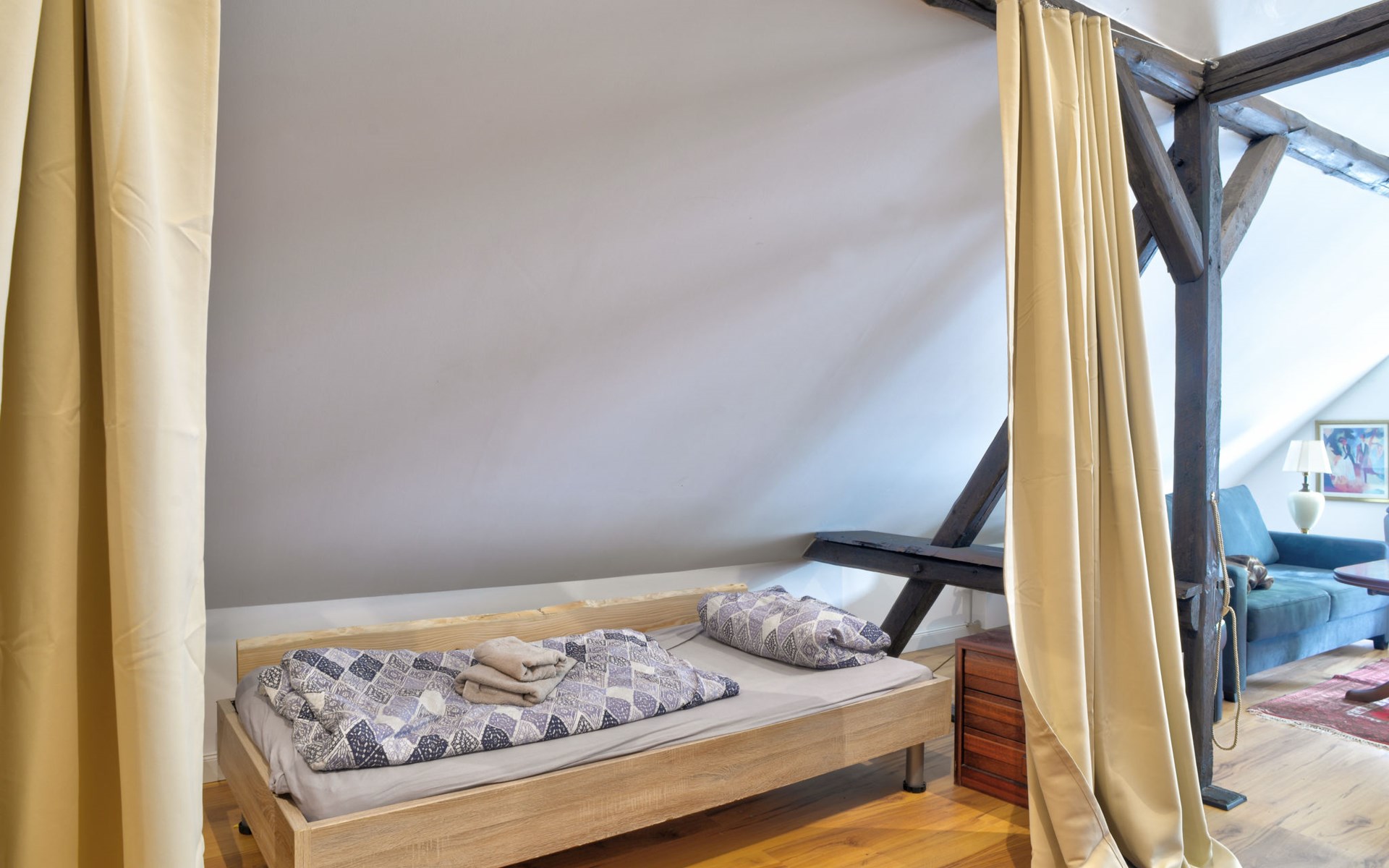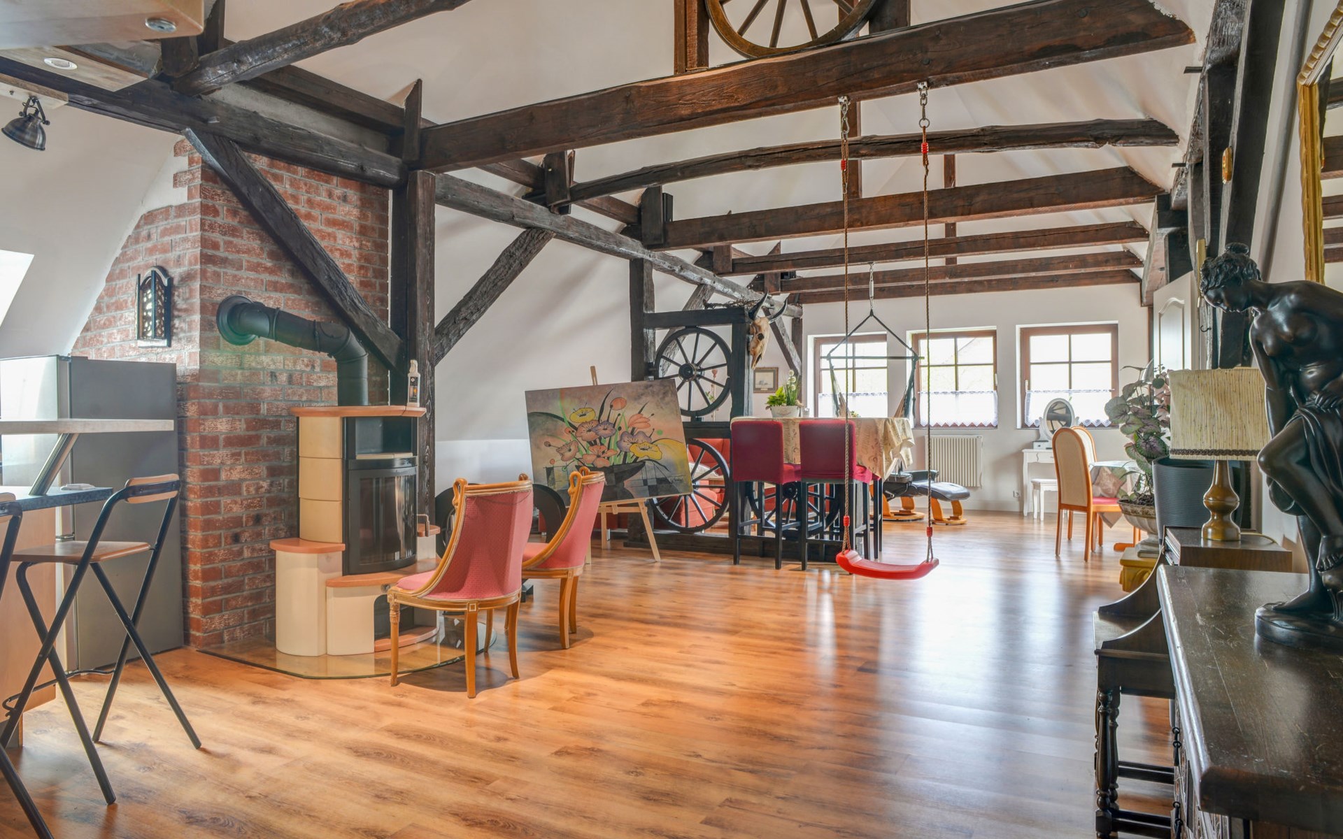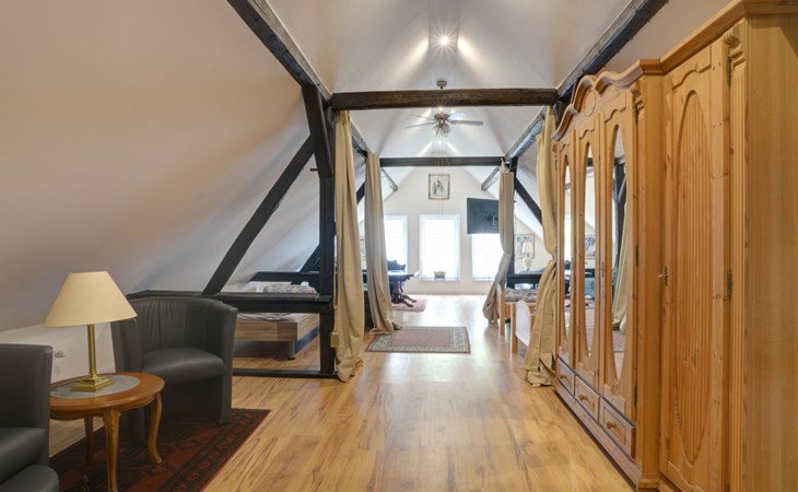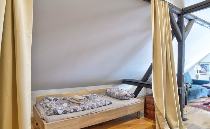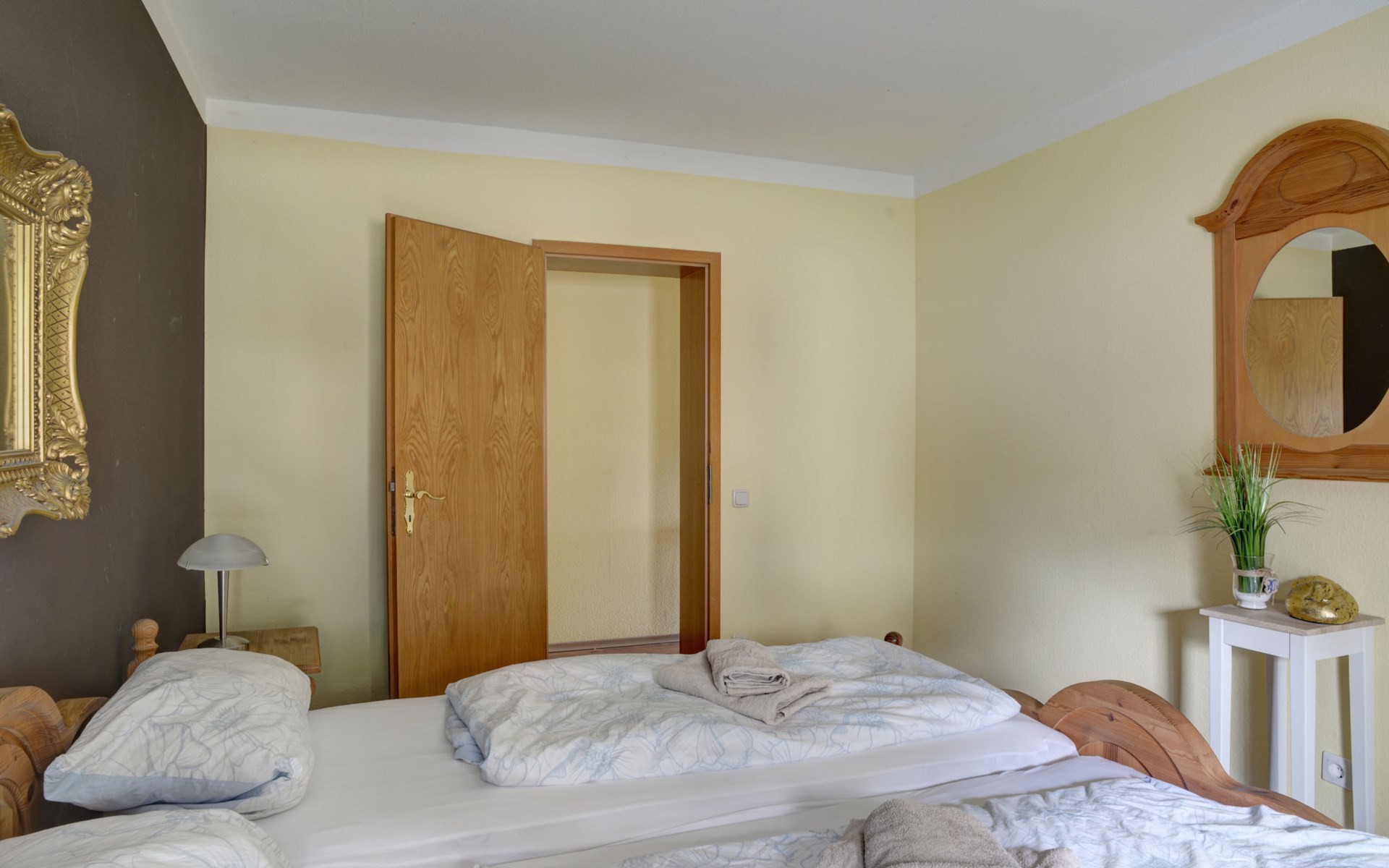 Beautiful, historical working farm, 3 storeys, from the 19th century, renovated in 2019, surrounded by trees and meadows. In the district of Hohe 5.3 km from the centre of Hehlen, 5 km from the centre of Bodenwerder, in a quiet position, 400 m from the edge of the forest. For shared use: large garden 1'500 m2 (fenced) with lawn and trees. Terrace (20 m2), garden furniture, barbecue, children's playground (slide, swing). In the complex: fitness room (extra). Storage room for bicycles, central heating system, washing machine (for shared use, extra), drying room. Parking (for 10 cars) on the premises, single garage (extra) at the house. Shop 7 km, grocery 5 km, supermarket 7 km, restaurant 5 km, bakery 5 km, bus stop "Hohe" 20 m, ferry "Hehlen" 8 km, outdoor swimming pool 8 km, indoor swimming pool 9 km. Walking paths from the house 200 m. Nearby attractions: Welterbe Corvey 33 km, Porzellanmanufaktur Fürstenberg 40 km. Well-known lakes can easily be reached: Humboldtsee 28 km. Please note: car recommended. The owner does not accept any youth groups. Garden seating area (200 m2) and the second terrace (9 m2) are available for shared use (both terraces are not visible to each other). Finnish steam tub (available 01.04.-30.11.) for shared use.