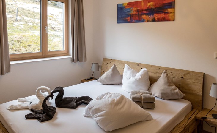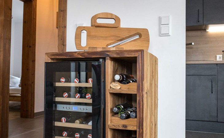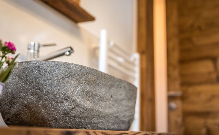 The interior of the chalet reveals an exclusive living landscape that perfectly combines luxury and cosiness. An inviting living area offers all the comfort you need to relax after an active day in the mountains, including a whirlpool and a Swiss stone pine sauna as absolute highlights. Every detail of the interior design aims to surround both those seeking relaxation and active holidaymakers with all the necessary comforts to ensure an all-round pleasant stay.
