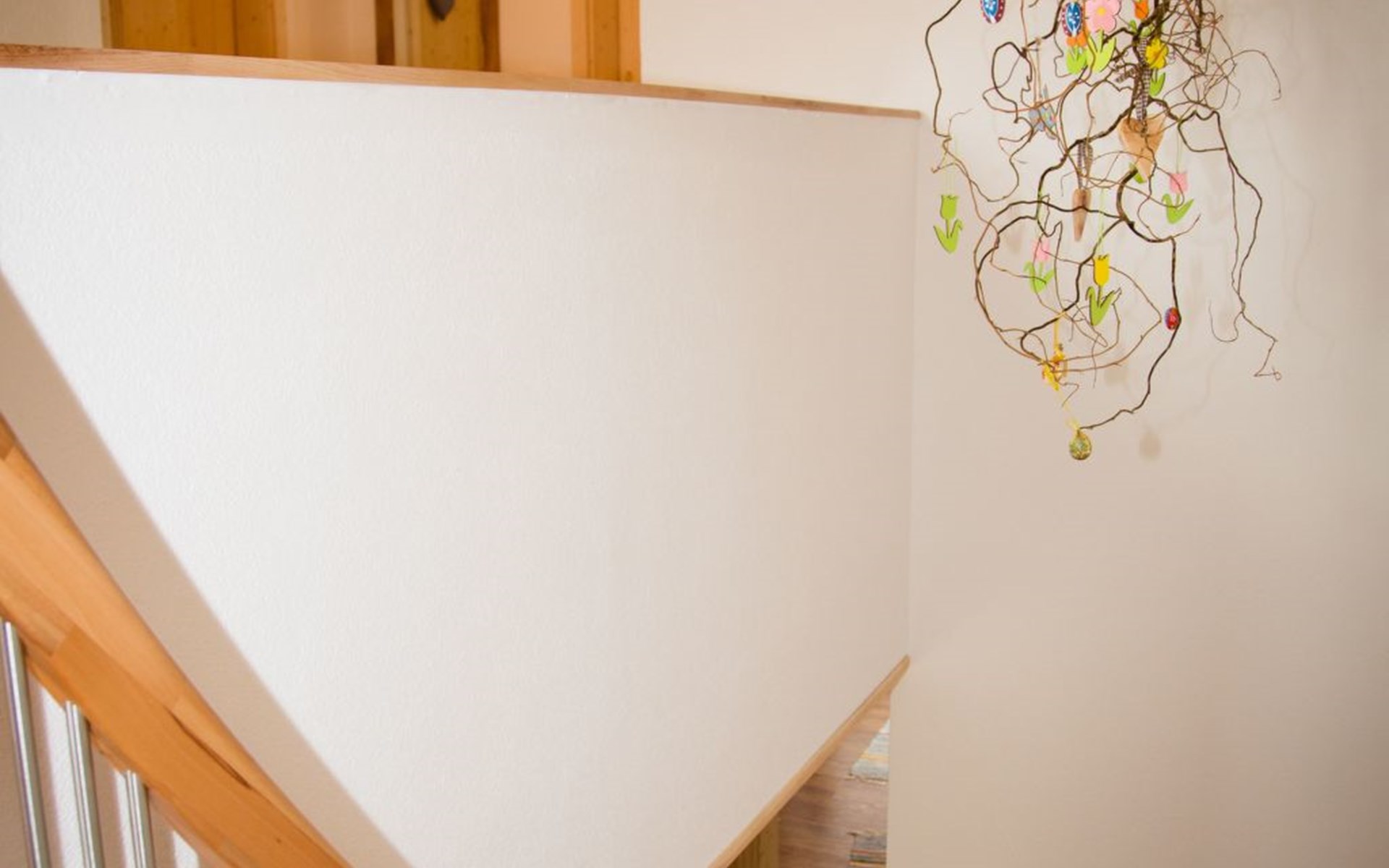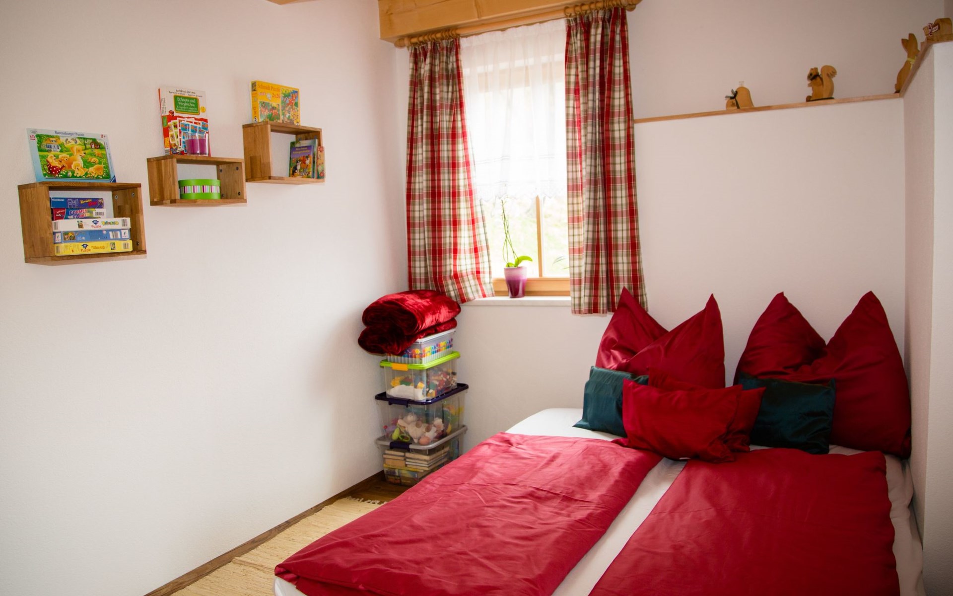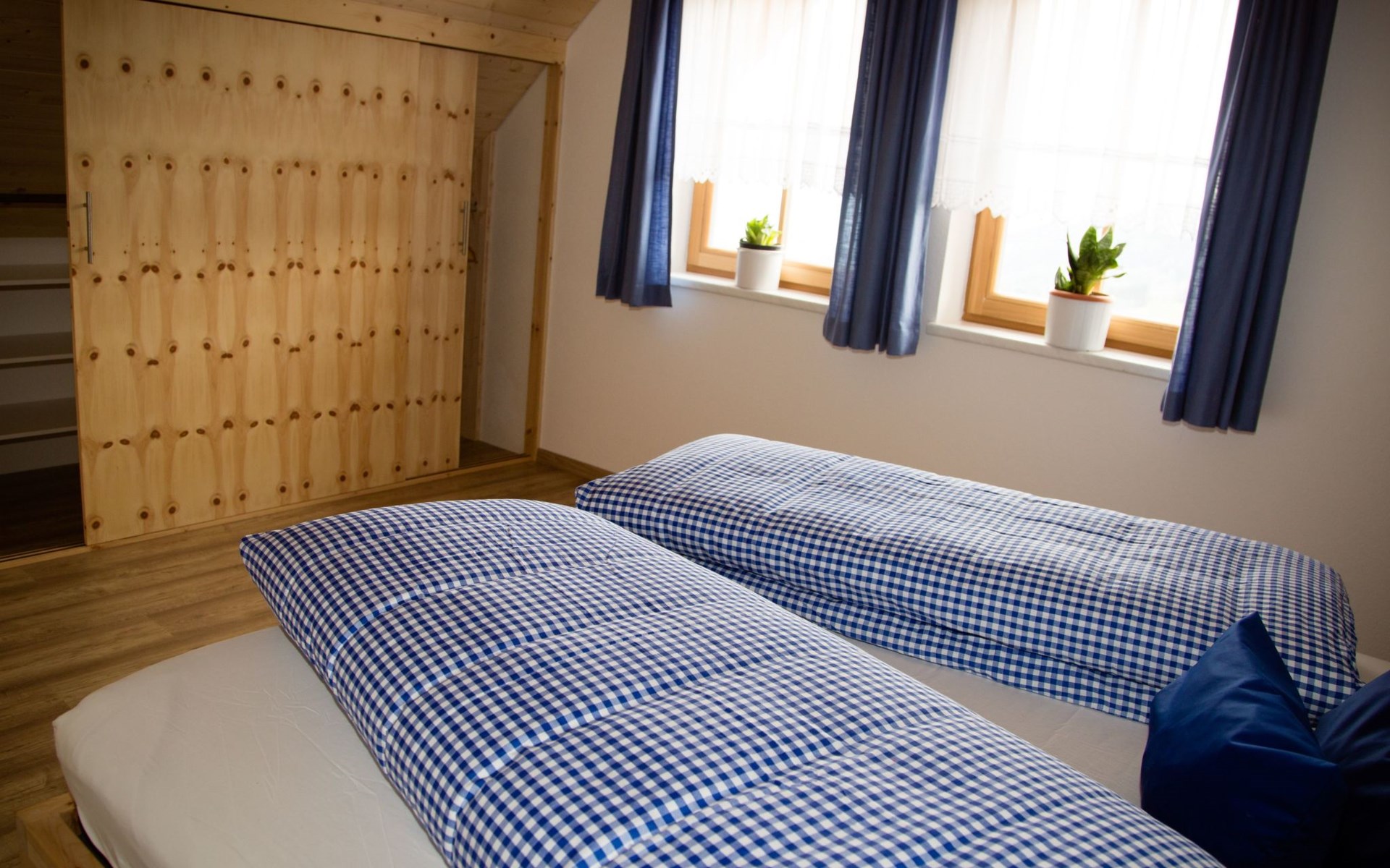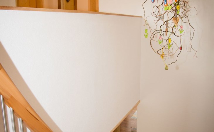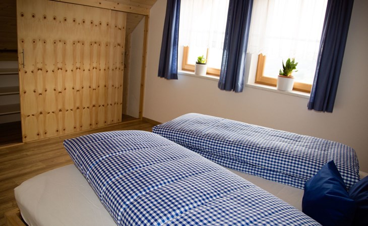 On the top floor there are 2 large bedrooms with Swiss stone pine beds, a children's room and a second bathroom with WC. The ground floor with kitchen-living room, bathroom and separate WC, as well as the room that can be used as a living room, playroom or bedroom, is also easily accessible via the terrace entrance, which is almost at ground level. This offers guests who want to avoid stairs the opportunity to use the house without difficult barriers.
