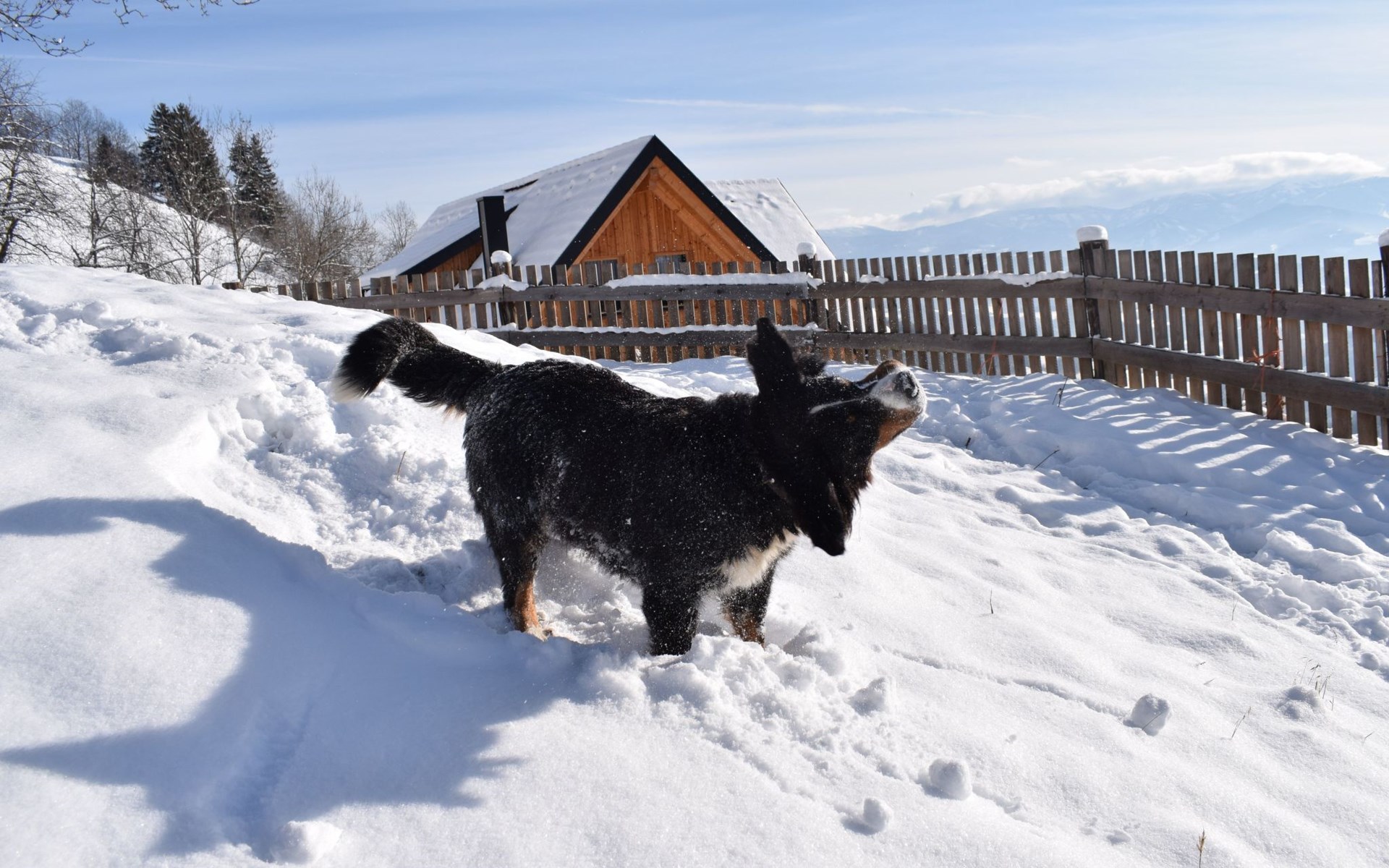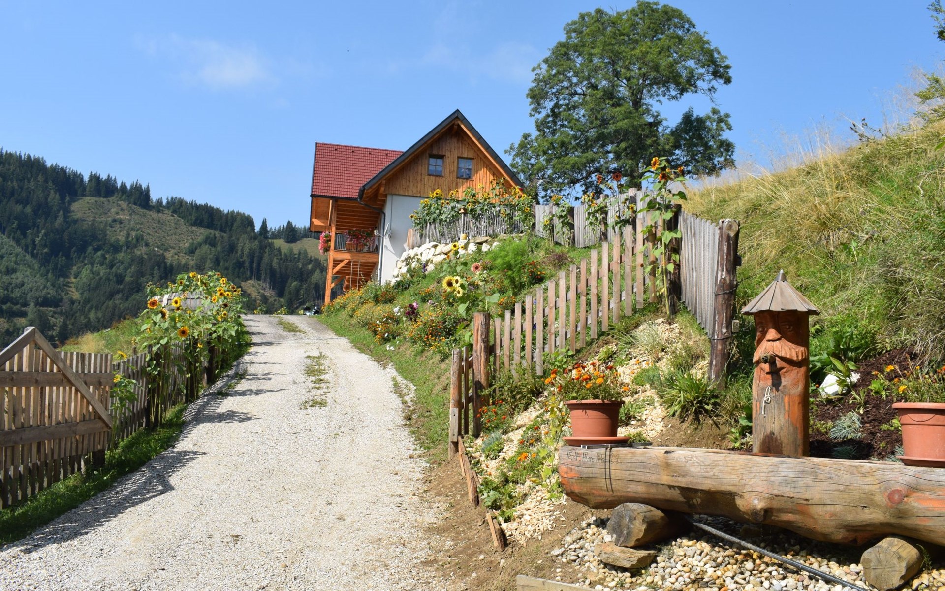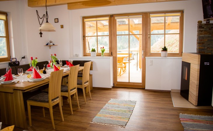 The house is completely surrounded by a natural larch fence, which separates the property from the surrounding pastures, ideal for your pets. There are cows, ponies, goats and donkeys around the house. You can also visit our nearby farm at any time or use the neighbouring hiking trails.