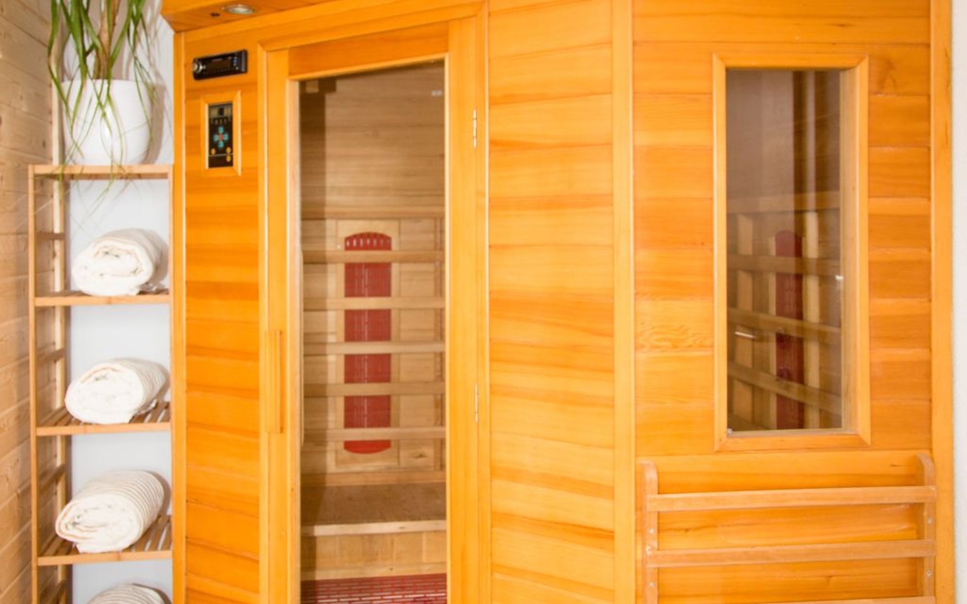 Relaxation is guaranteed with a visit to the in-house sauna and infrared cabin as well as the outdoor whirlpool.
