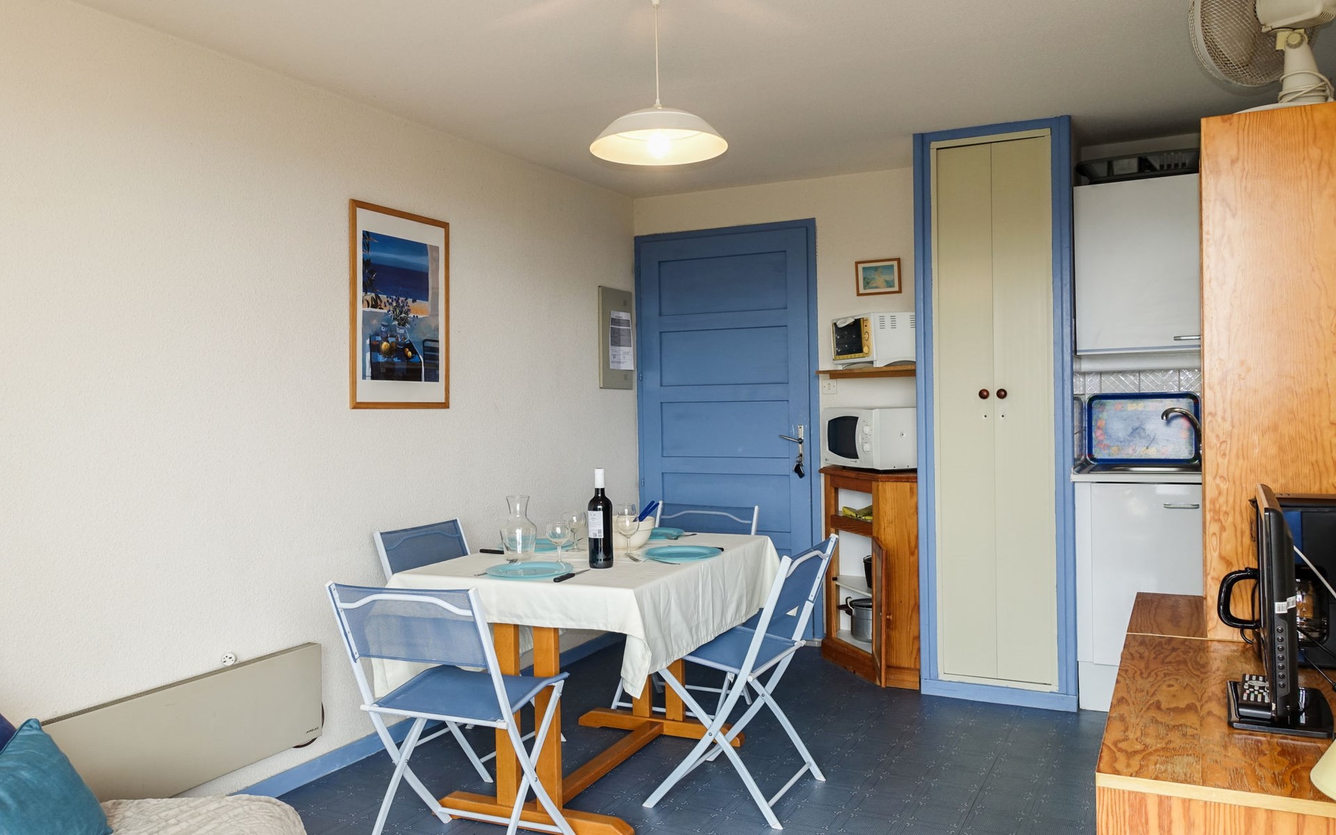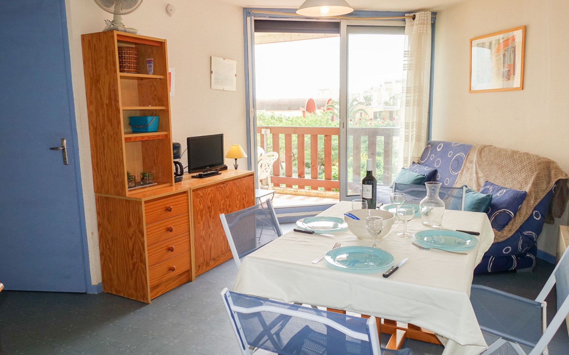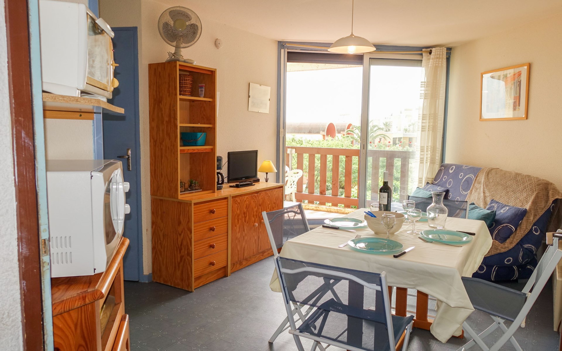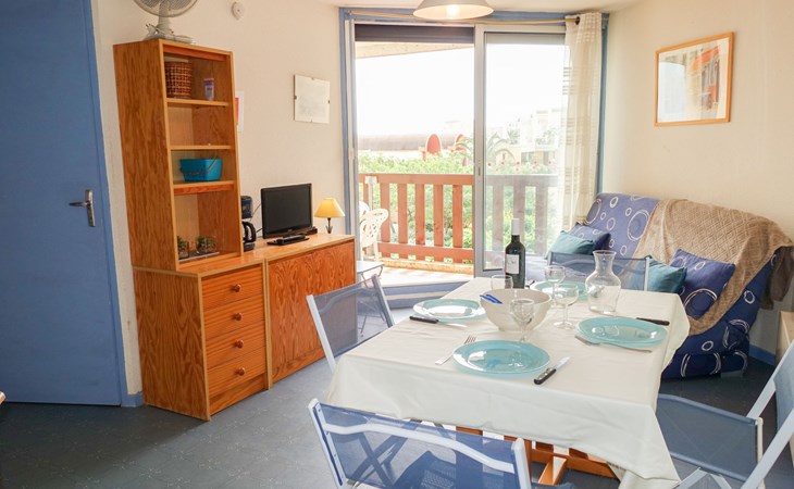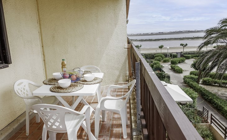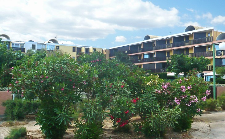 Residence "La Plage" right by the beach "Grazel". Residence "Gruissan Plage". 2 km from the sea. Public parking 100 m. Shop 200 m, supermarket 1 km, restaurant, bar 200 m, bus stop 300 m, diving center 500 m, public bathing area 100 m. Sports harbour 750 m, sailing school 2 km. Nearby attractions: Réserve Africaine de Sigean 29 km, cité de Carcassonne 73 km, Espace balnéoludique de Gruissan 1.3 km. The keys‘ handover takes place by the agency Interhome in Narbonne Plage, 10 km.