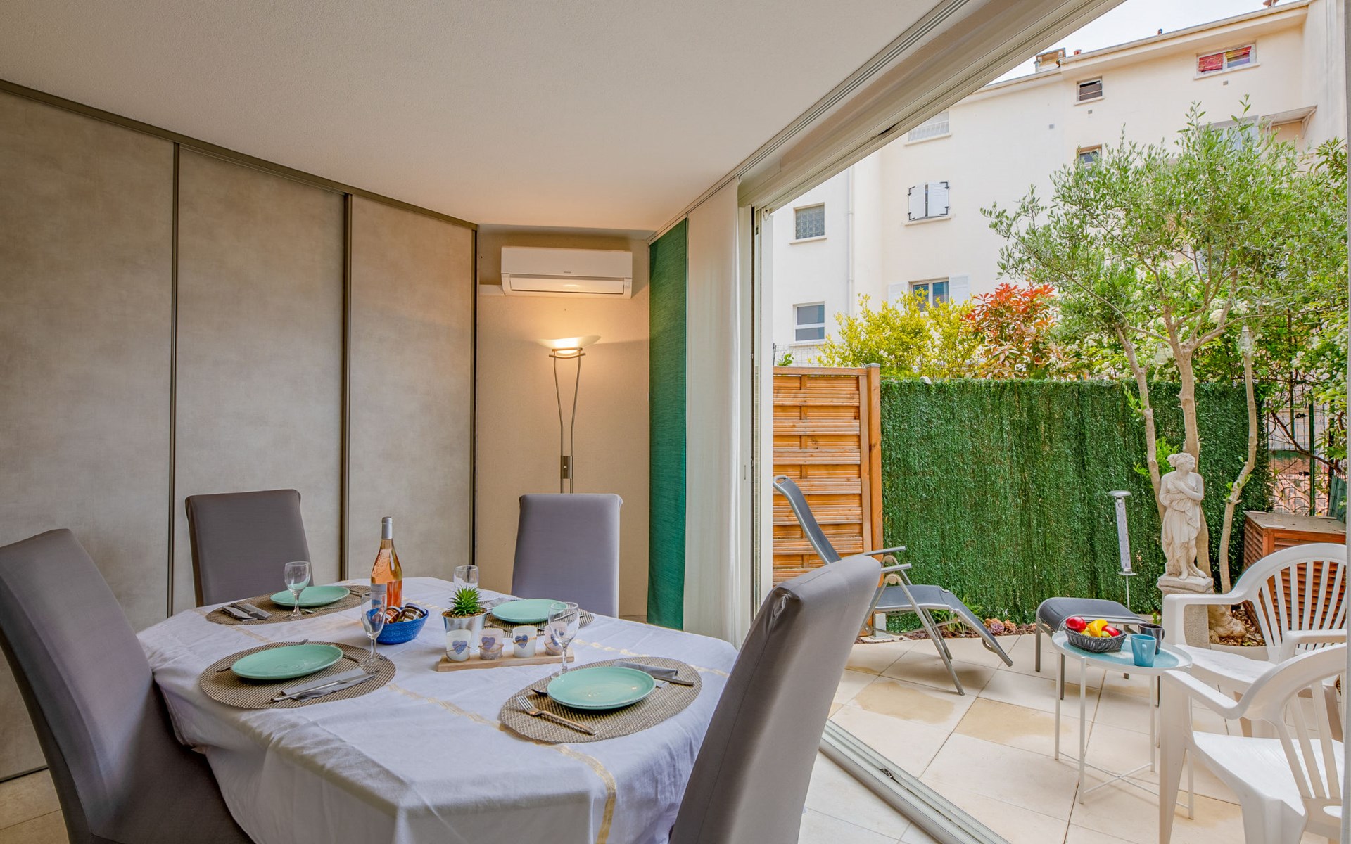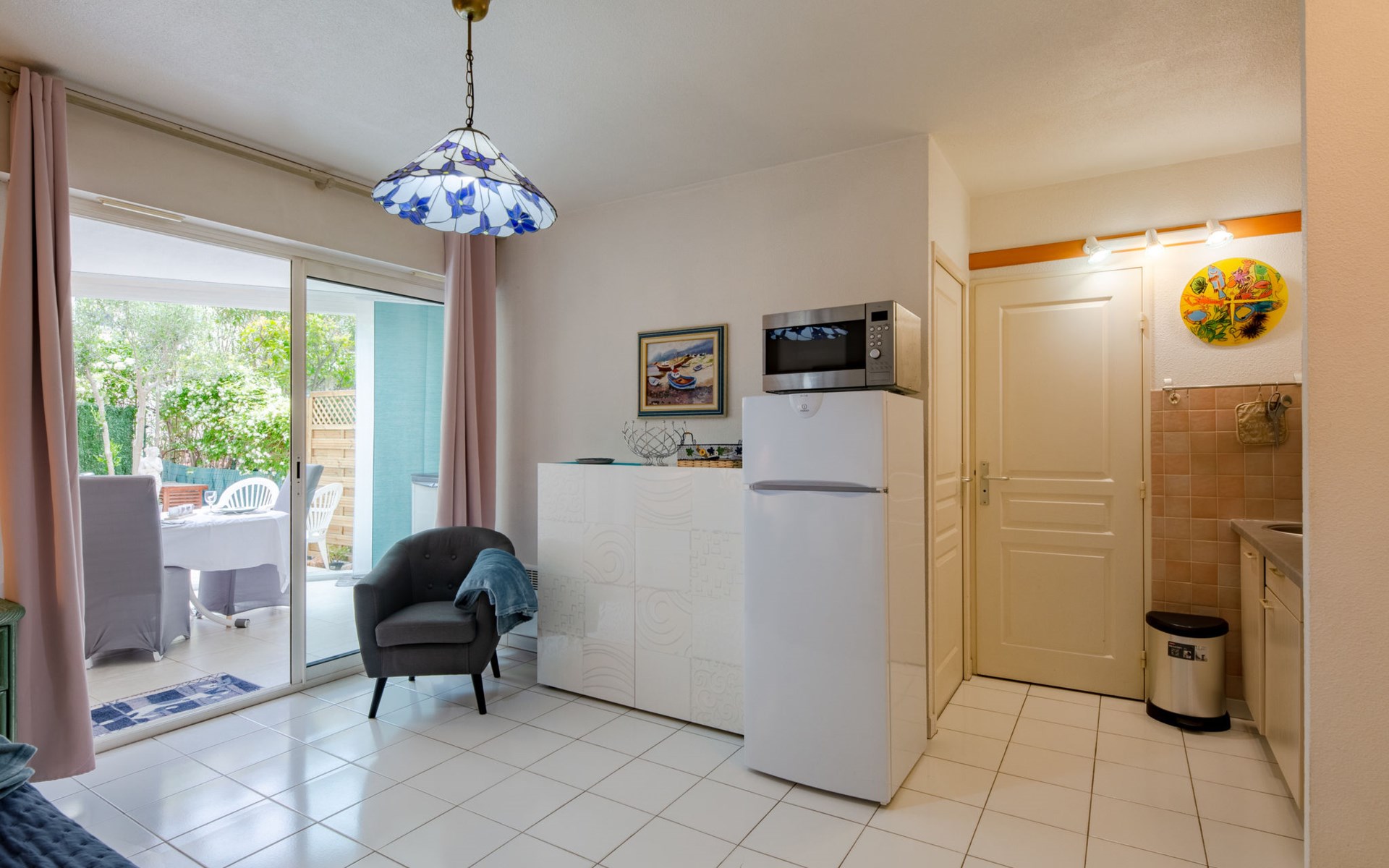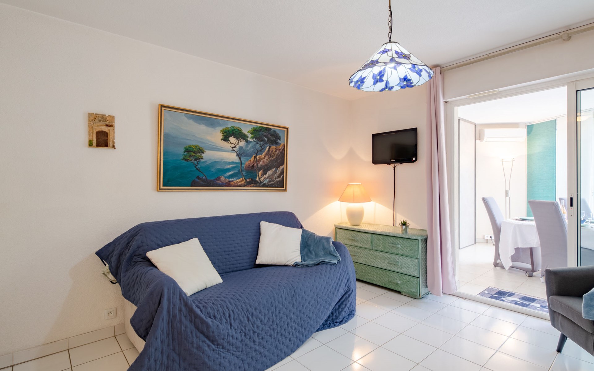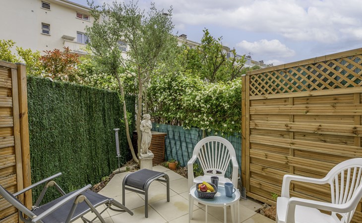 Fréjus Plage: Apartment house "Le chant de la mer", 4 storeys. 50 m from the sea, 50 m from the beach. Supermarket, restaurant, bakery 50 m, sandy beach "Plages de Fréjus" 50 m, diving center 800 m. Sports harbour 800 m, golf course (18 hole) 6 km. Nearby attractions: Cannes 40 km, Saint-Tropez 40 km, Nice 70 km, Gorges du Verdon 90 km. Well-known lakes can easily be reached: Sainte-Croix 90 km. Hiking paths: Estérel 8 km.