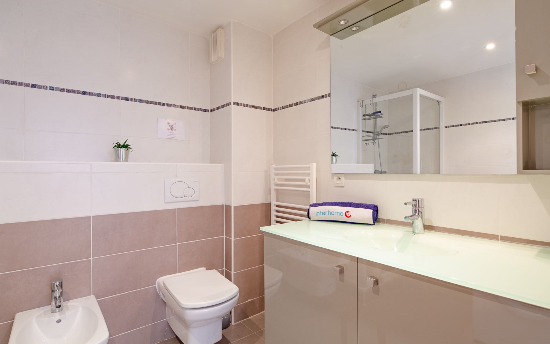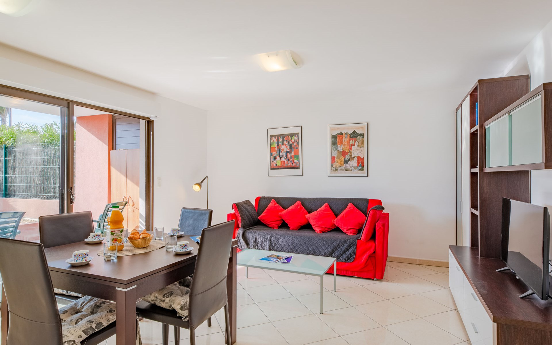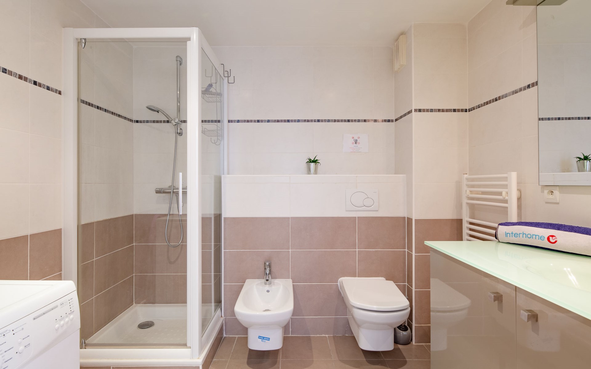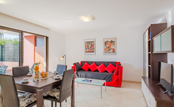 Port Fréjus: Modern apartment block "Santa Monica", 2 storeys, built in 2010. 500 m from the sea, from the beach. In the complex: lift, storage room for bicycles. Supermarket 1 km, shopping centre 1 km, restaurant 500 m, bus stop 200 m, railway station "Saint-Raphaël Valescure" 2 km, park "Base nature" 200 m, diving center 500 m, indoor swimming pool 250 m. Sports harbour 100 m, golf course (18 hole) 7 km. Nearby attractions: Cannes 40 km, Saint-Tropez 40 km, Nice 70 km, Gorges du Verdon 90 km. Well-known lakes can easily be reached: Sainte-Croix 90 km. Hiking paths: Estérel 7 km. Groups of teenagers on request only. The keys‘ handover takes place by the agency Interhome in Port Fréjus. Neighbourhood highly sensitive to noise. Quietness and good behaviour expected.