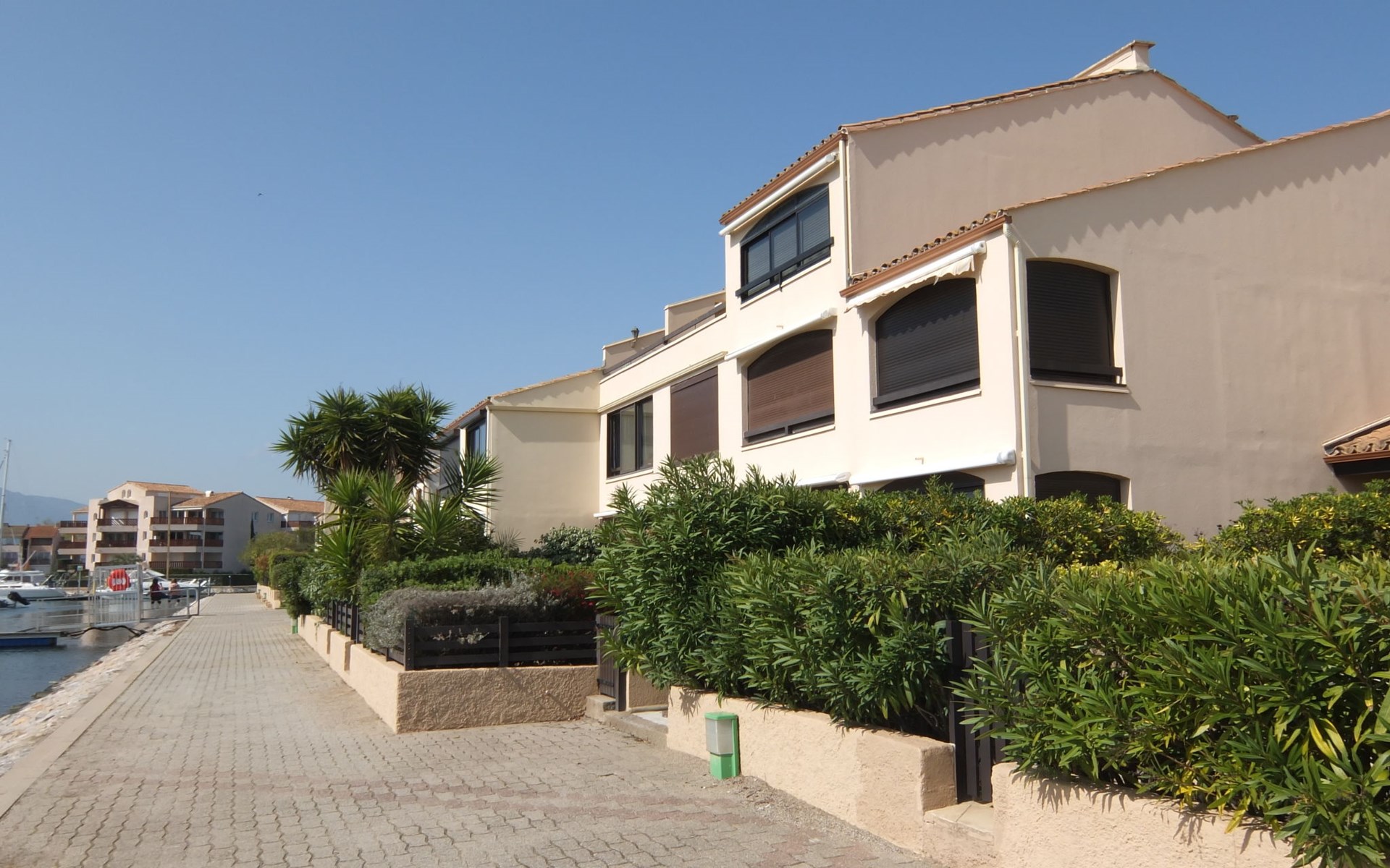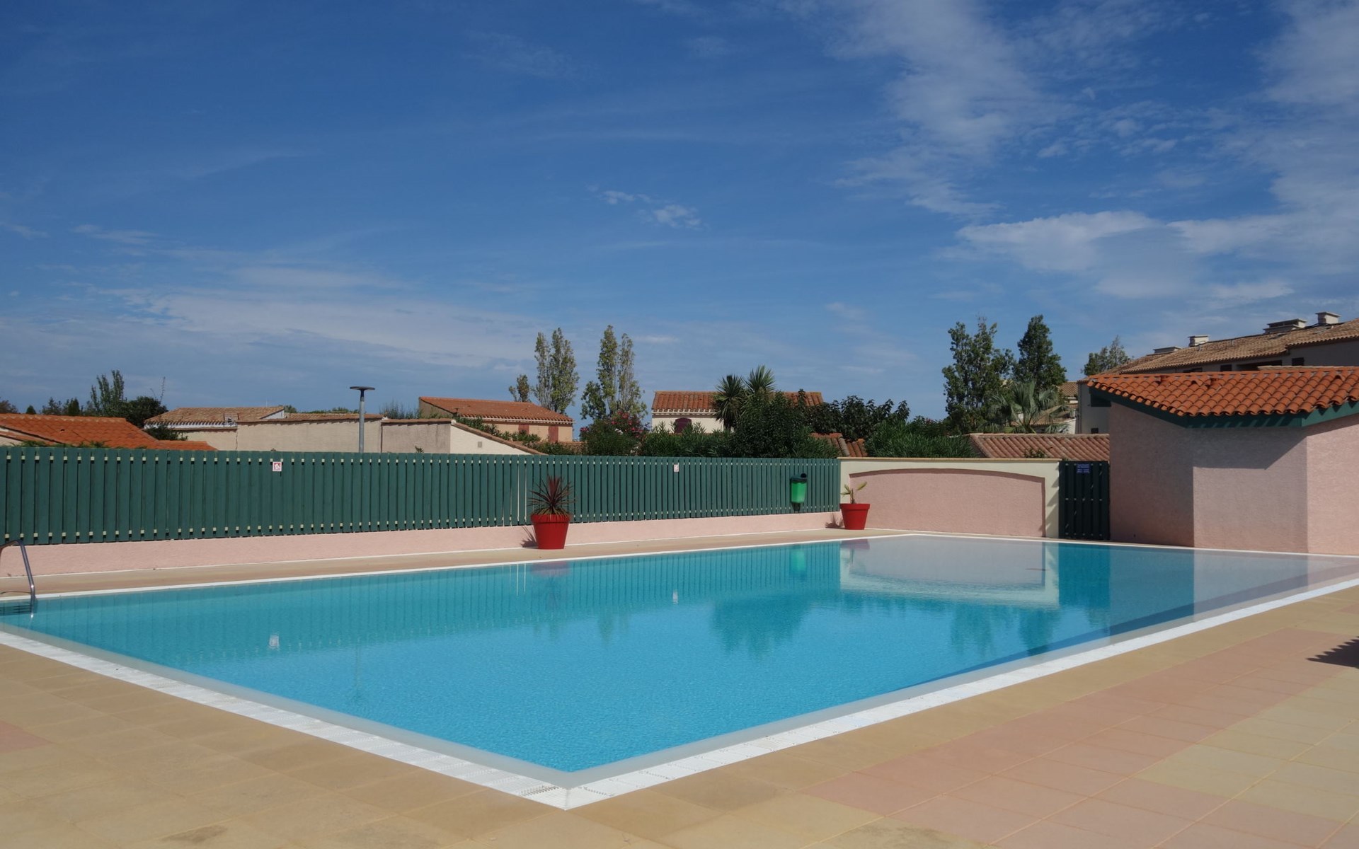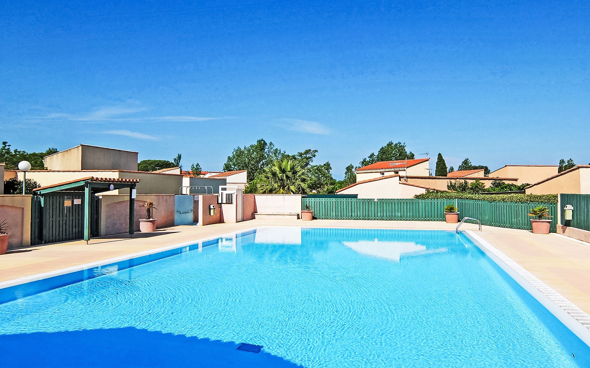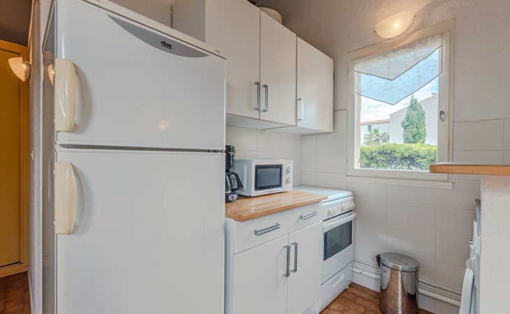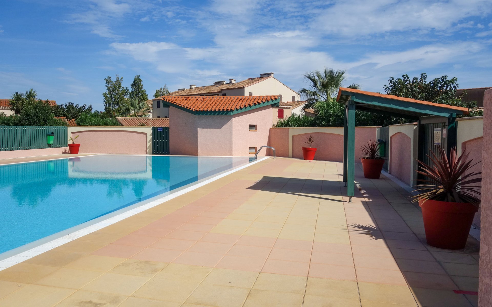 Residence "Le Hameau des Capellans". In the district of Les Capellans, 800 m from the sea, 800 m from the beach, direct access to the lagoon. For shared use: swimming pool (20 x 10 m, depth 105 - 240 cm, seasonal availability: 01.Jul. - 31.Aug.). Shop, grocery 800 m, supermarket 2.7 km, restaurant 800 m, bus stop 150 m, railway station "Elne" 8 km, sandy beach "Plage du pont tournant" 800 m. Sports harbour 1.5 km, golf course (27 hole) 4.7 km, sailing school 1.2 km, minigolf 3.4 km, riding stable 1.6 km, sports centre 1.5 km. Nearby attractions: Aqualand 2.6 km.