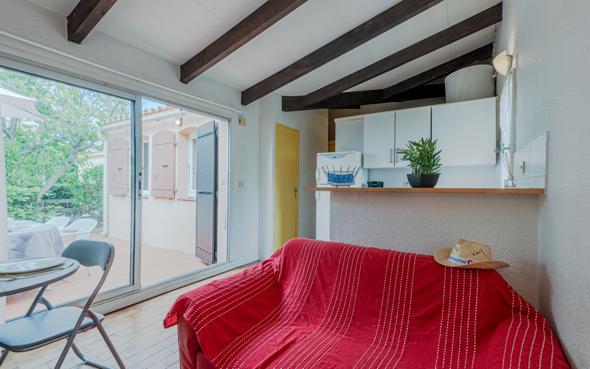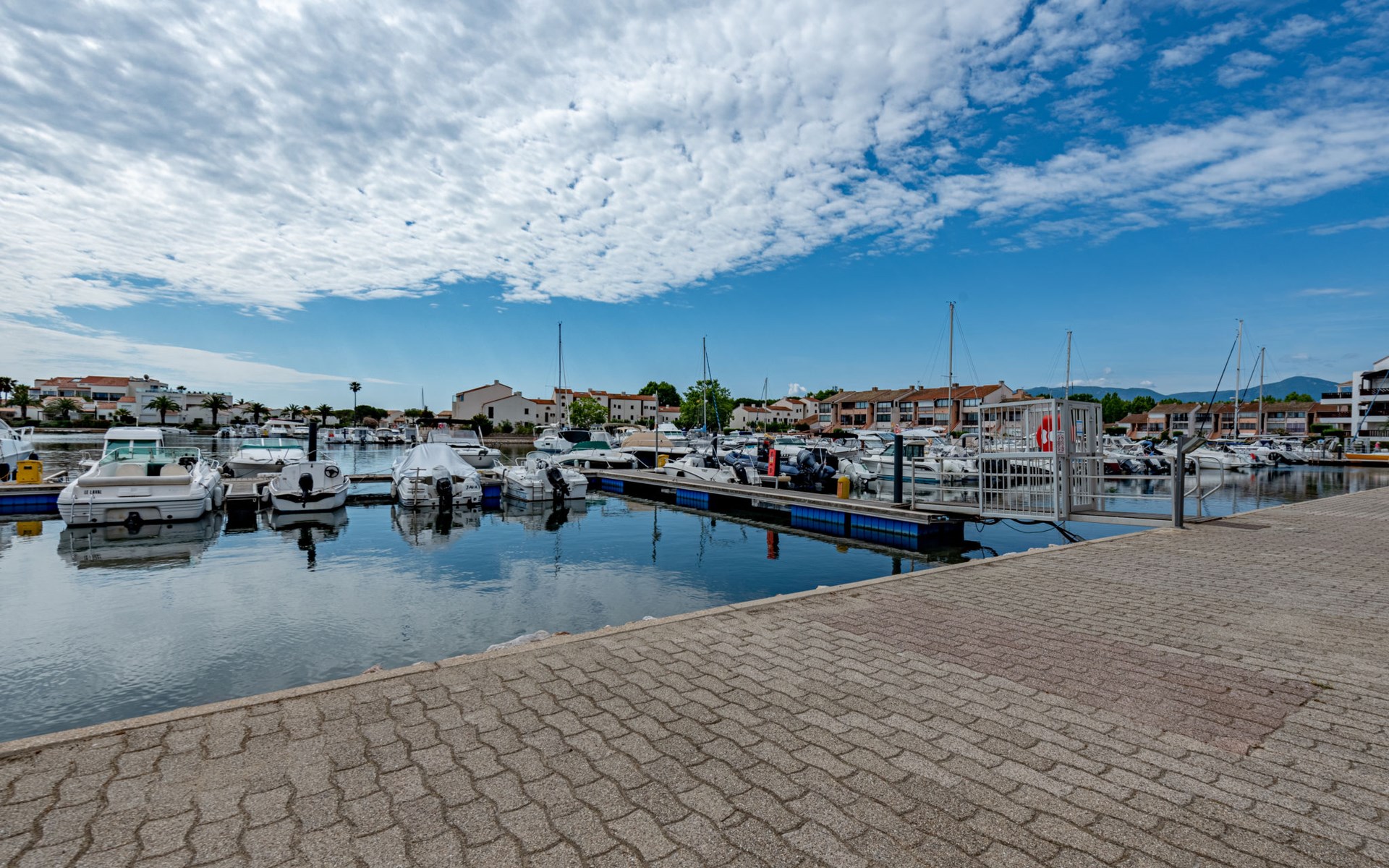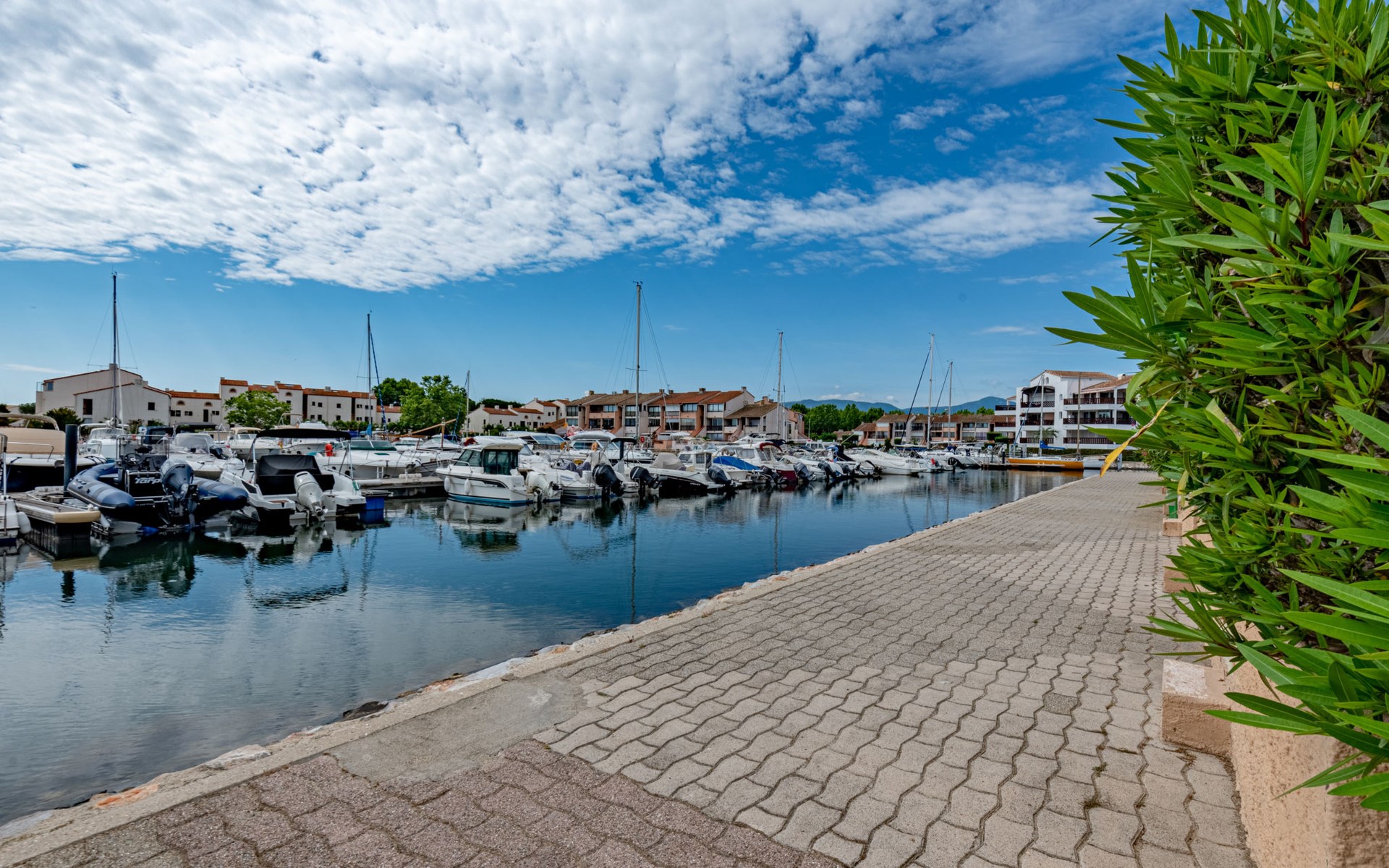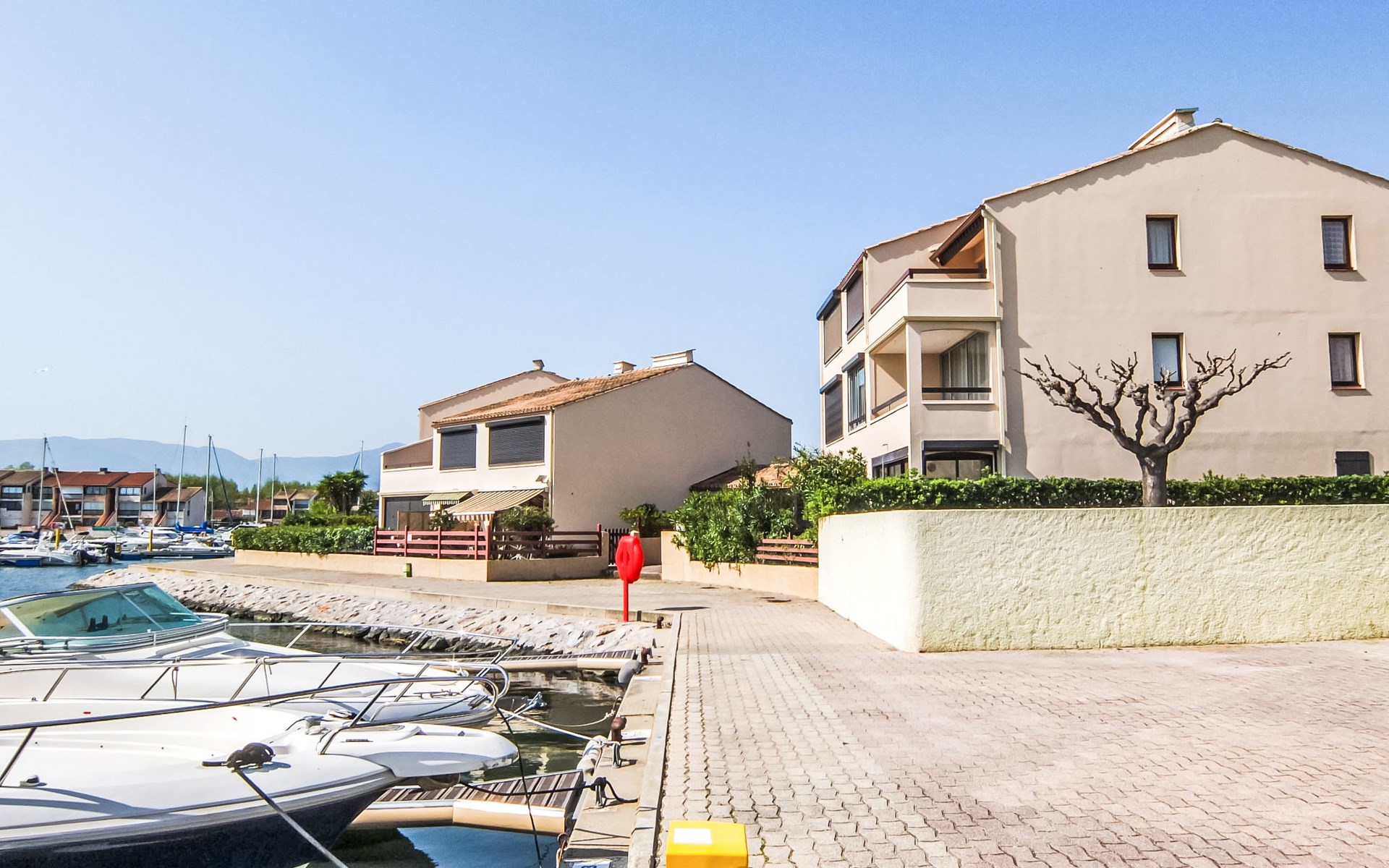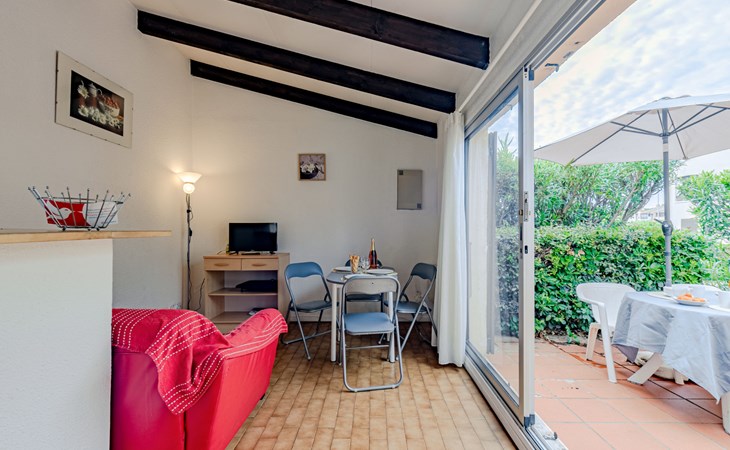 Residence "Le Hameau des Capellans". In the district of Les Capellans, 800 m from the sea, 800 m from the beach, direct access to the lagoon. For shared use: swimming pool (20 x 10 m, depth 105 - 240 cm, seasonal availability: 01.Jul. - 31.Aug.). Shop, grocery 800 m, supermarket 2.7 km, restaurant 800 m, bus stop 150 m, railway station "Elne" 8 km, sandy beach "Plage du pont tournant" 800 m. Sports harbour 1.5 km, golf course (27 hole) 4.7 km, sailing school 1.2 km, minigolf 3.4 km, riding stable 1.6 km, sports centre 1.5 km. Nearby attractions: Aqualand 2.6 km.