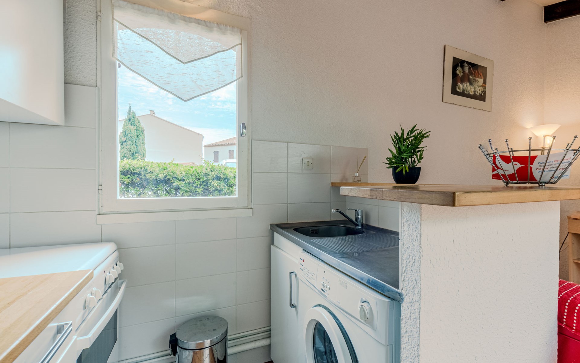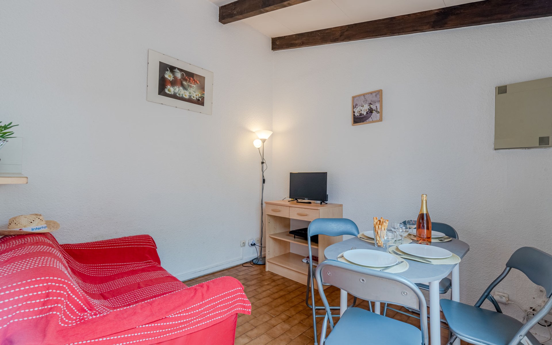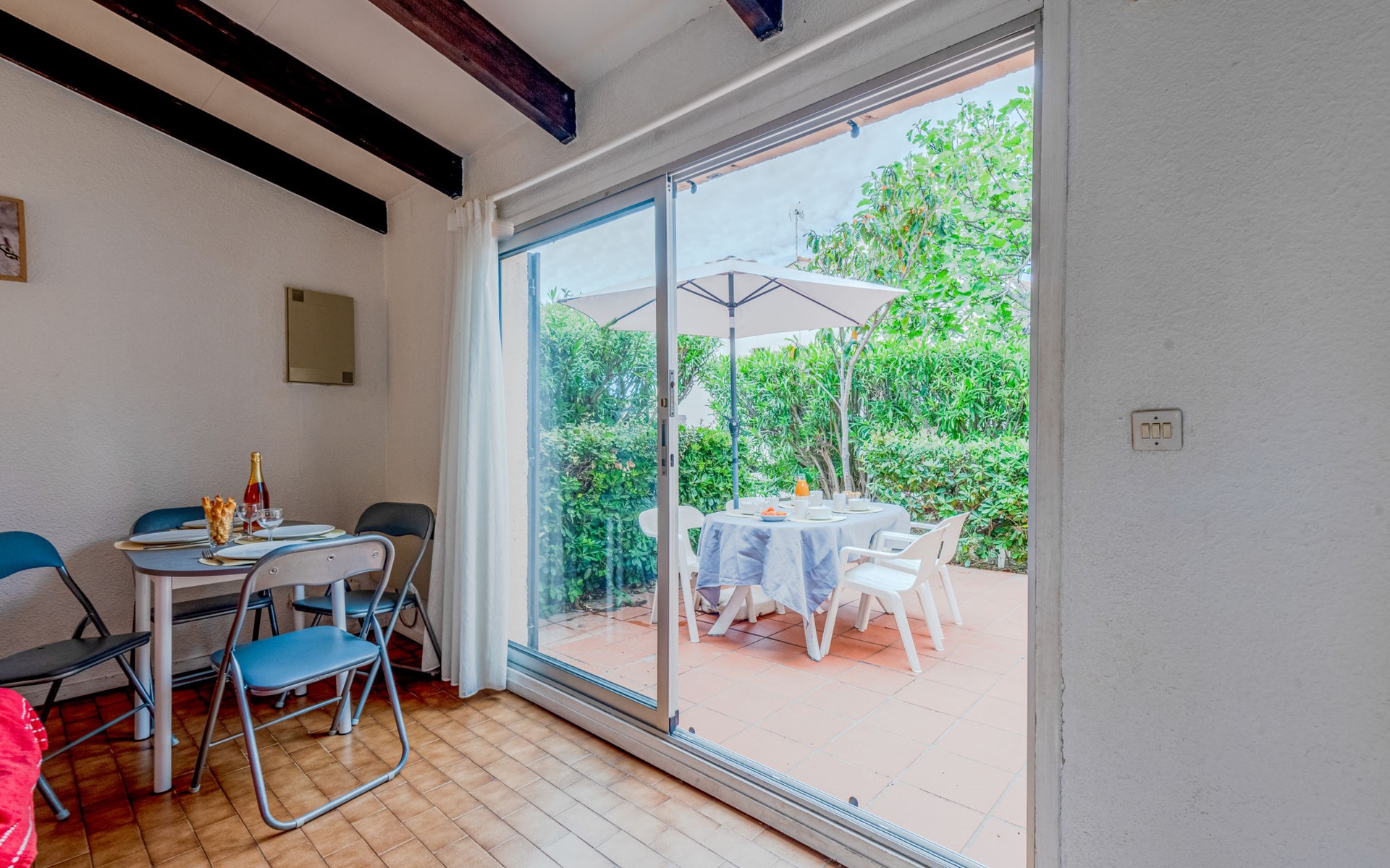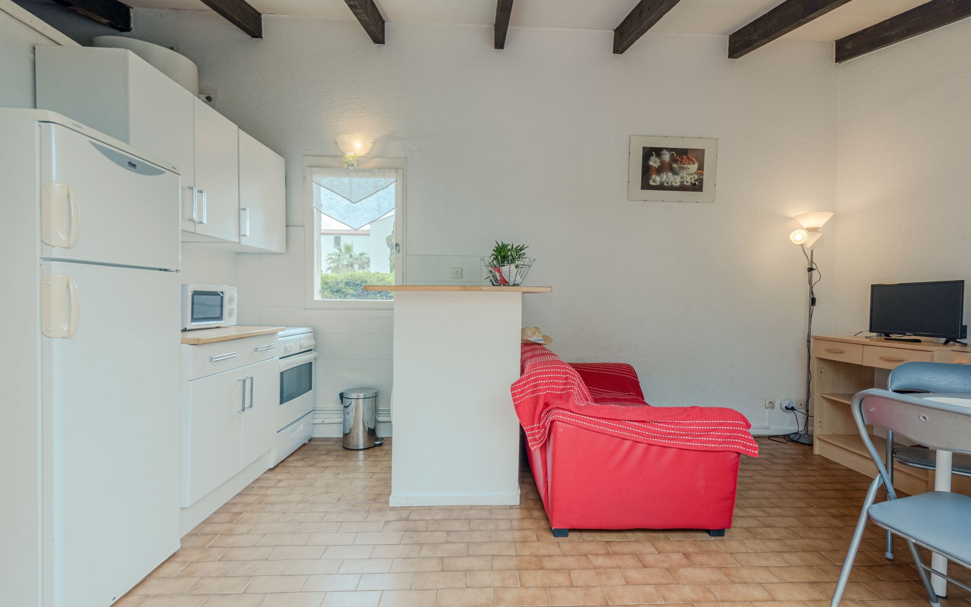 Residence "Le Hameau des Capellans". In the district of Les Capellans, 800 m from the sea, 800 m from the beach, direct access to the lagoon. For shared use: swimming pool (20 x 10 m, depth 105 - 240 cm, seasonal availability: 01.Jul. - 31.Aug.). Shop, grocery 800 m, supermarket 2.7 km, restaurant 800 m, bus stop 150 m, railway station "Elne" 8 km, sandy beach "Plage du pont tournant" 800 m. Sports harbour 1.5 km, golf course (27 hole) 4.7 km, sailing school 1.2 km, minigolf 3.4 km, riding stable 1.6 km, sports centre 1.5 km. Nearby attractions: Aqualand 2.6 km.