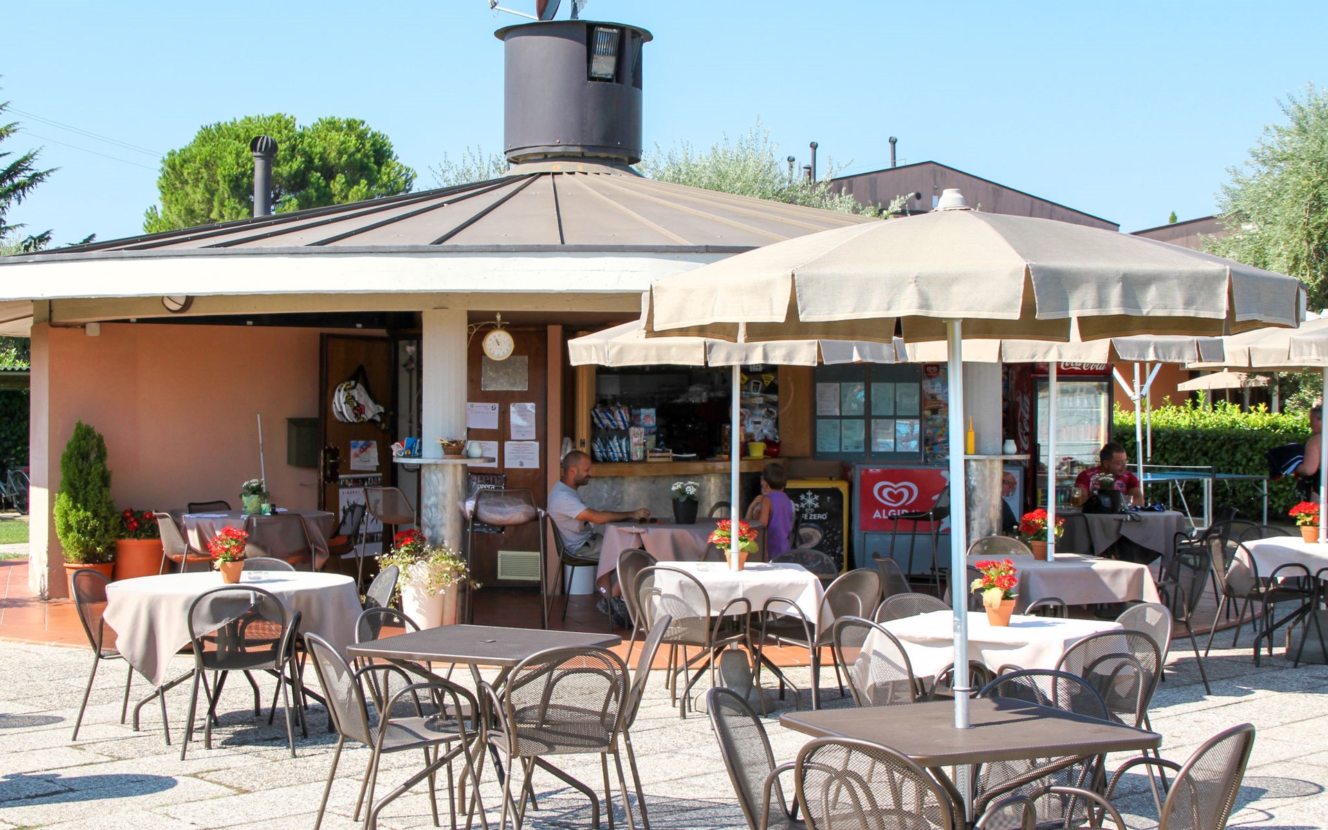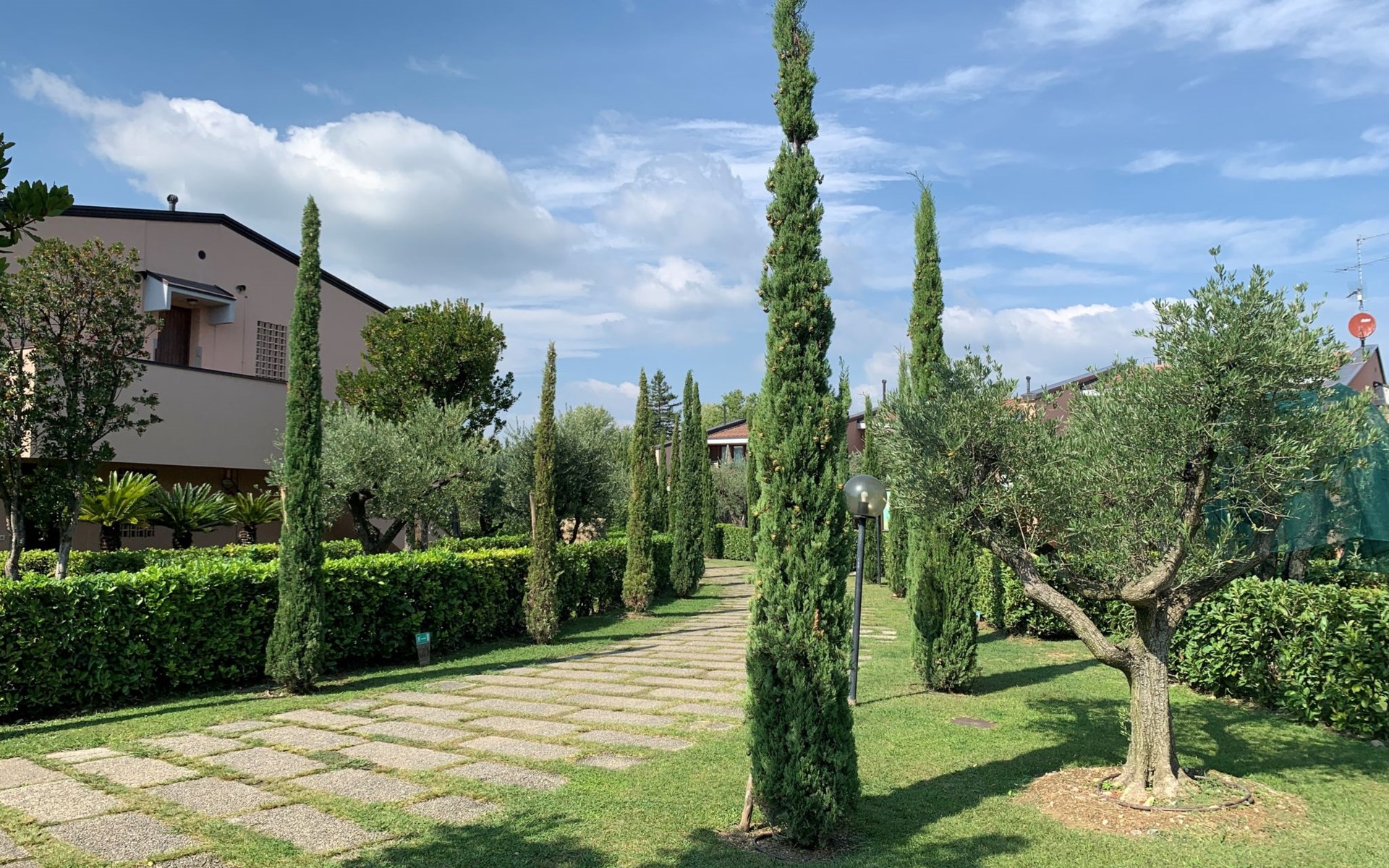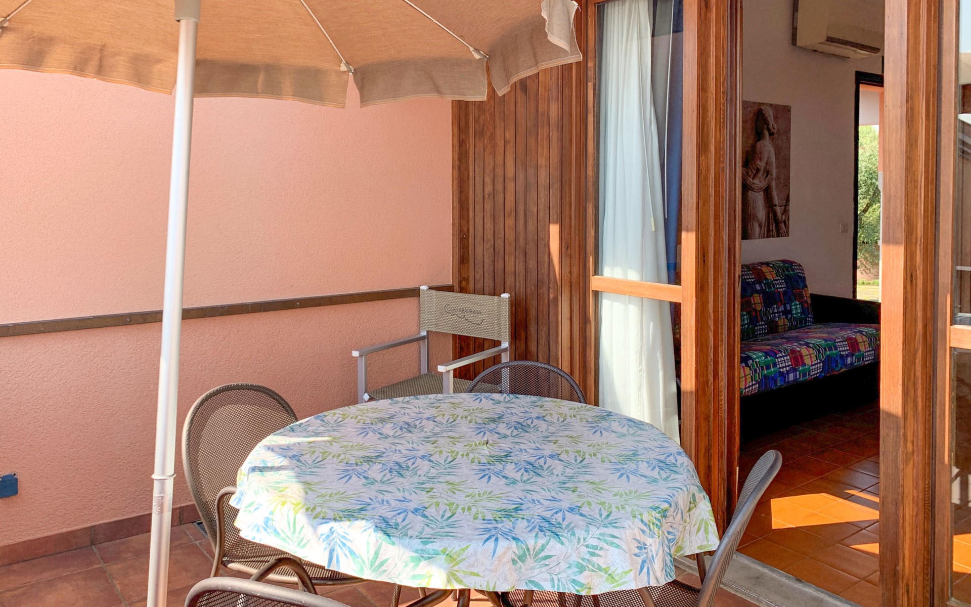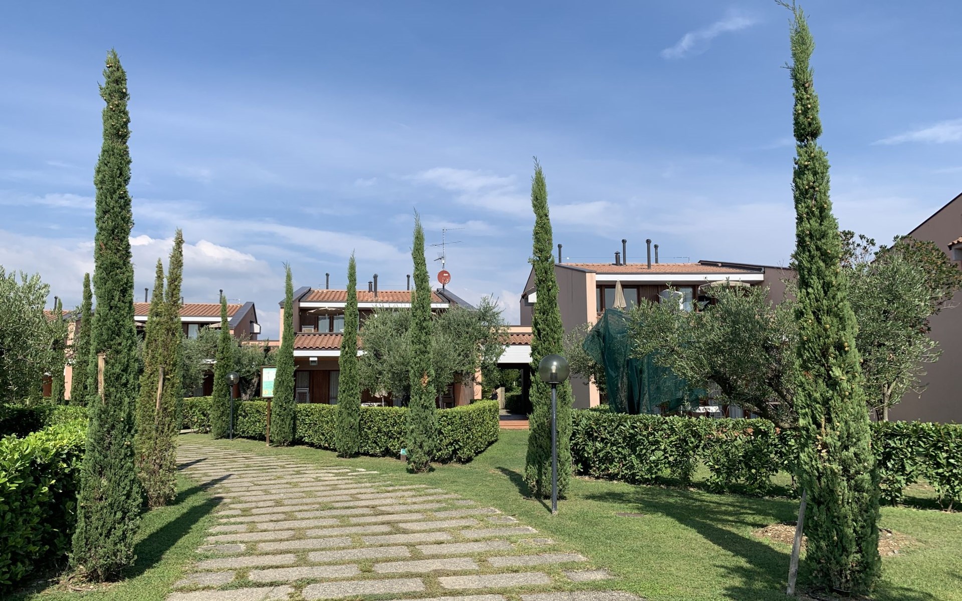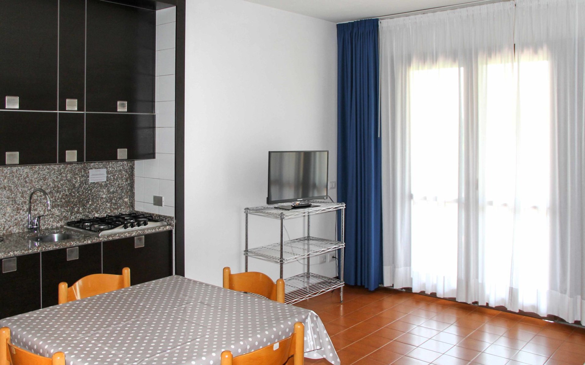 Child friendly resort "Barbara". 43 apartments in the residence. Outside the resort, 2 km from the centre of Moniga del Garda, 1 km from the lake. For shared use: property 10'000 m2 (fenced), lawn and trees, swimming pool kidney-shaped (seasonal availability: 15.Mar. - 15.Nov.). Children's pool, table tennis, beach volleyball, barbecue, children's playground. In the complex: reception, bar, WiFi, washing machine (for shared use, extra). Linen change weekly. Towel change weekly. Bread roll service, breakfast and half board on request (extra). Parking on the premises. Shop 50 m, supermarket 2 km, restaurant 50 m, bus stop 800 m, railway station "Desenzano del Garda" 12 km, pebble beach 1 km. Golf course 5 km. Please note: entertainment in the season. Suitable for families, baby equipment on request (extra). The owner does not accept any groups. Please note: WIFI in object only on balcony / terrasse.
