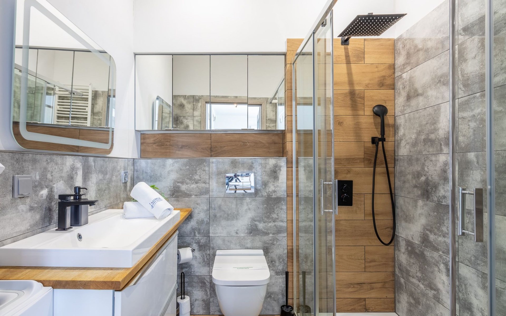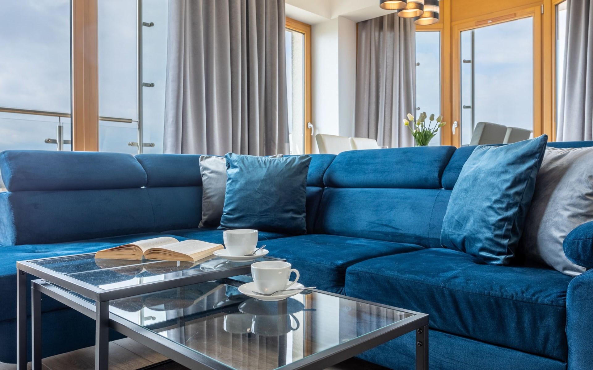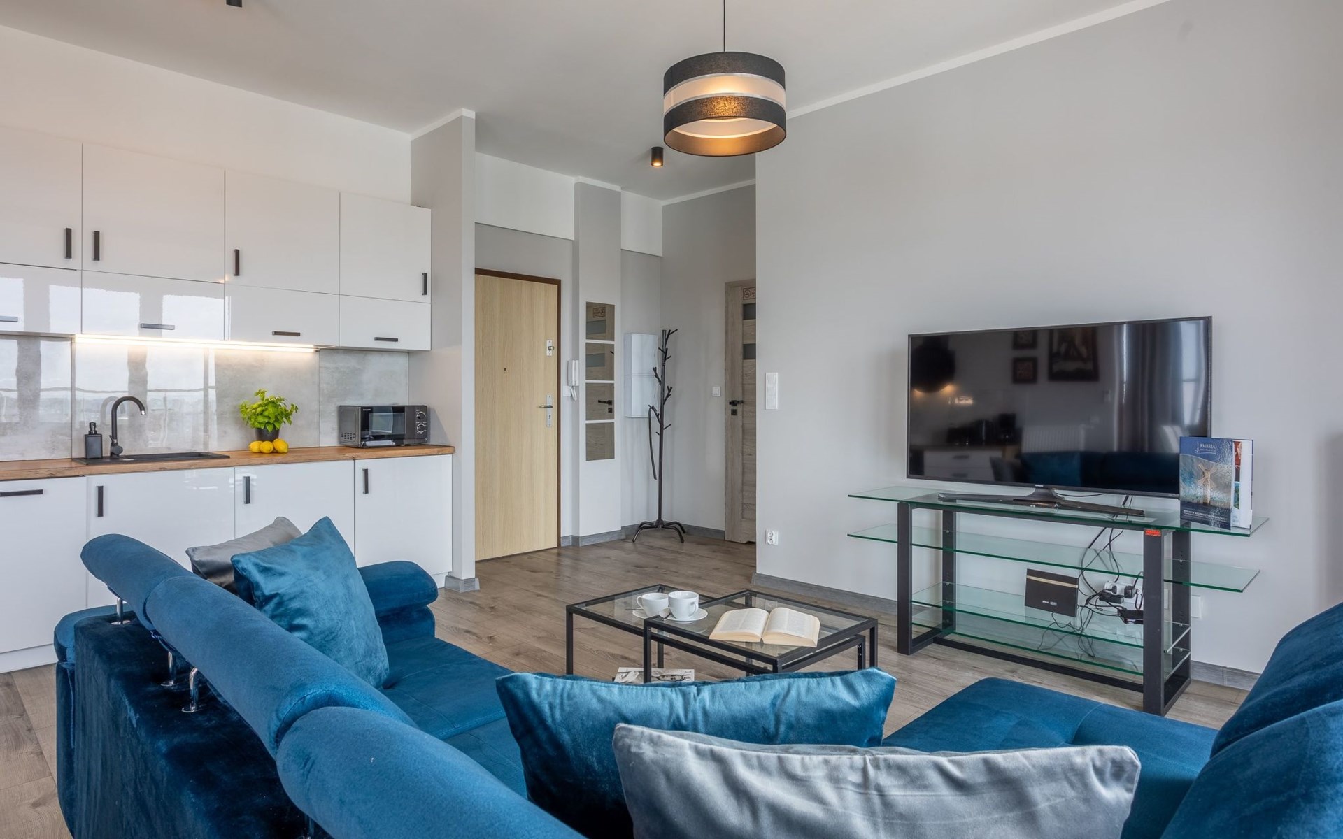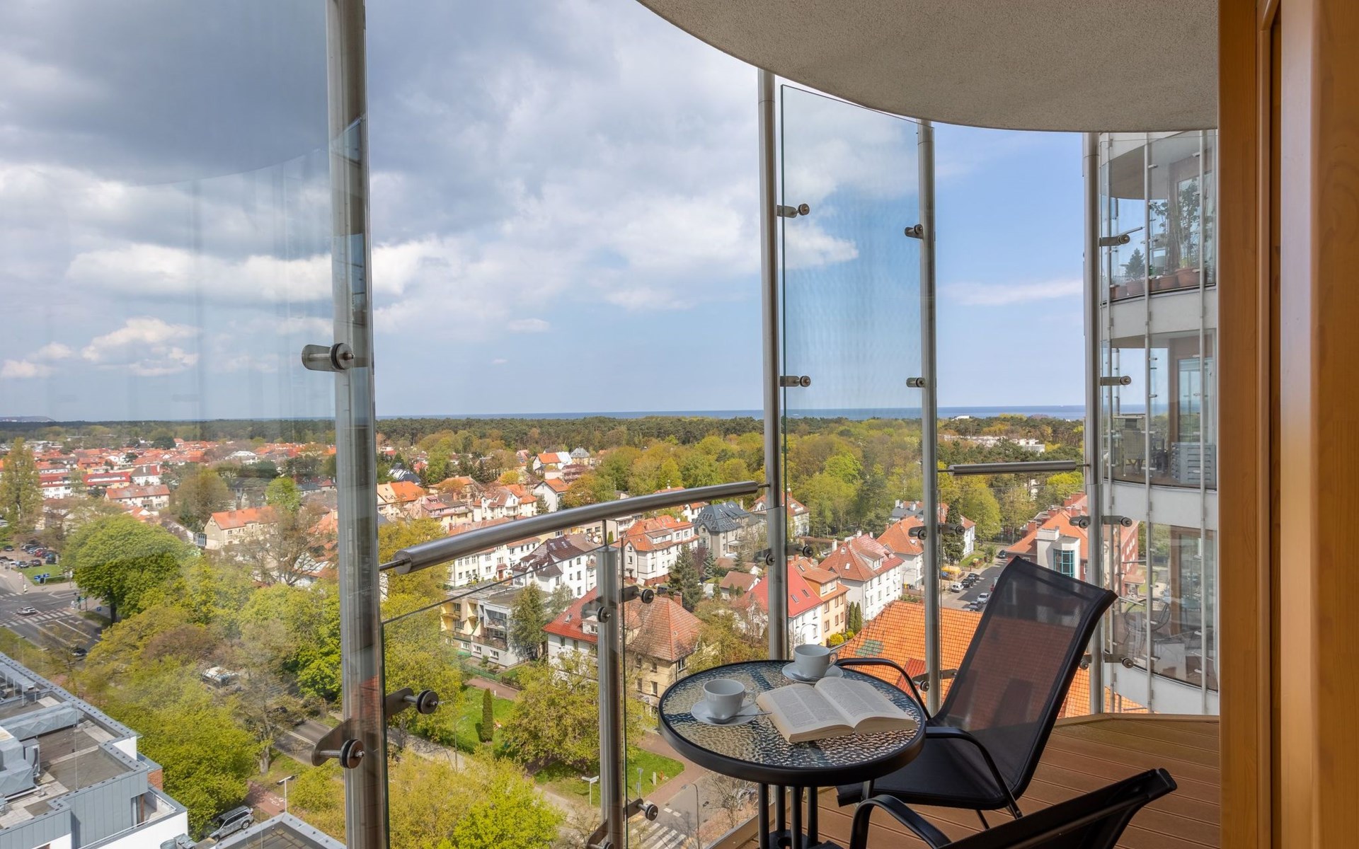 The "Tower 97" flat in Świnoujście is particularly appreciated by our guests for its excellent location, high standard of furnishings and breathtaking views of the city, the sea and Golm Mountain from the windows. It is located in a modern building that was put into operation in January 2020 and is part of the Platan complex.