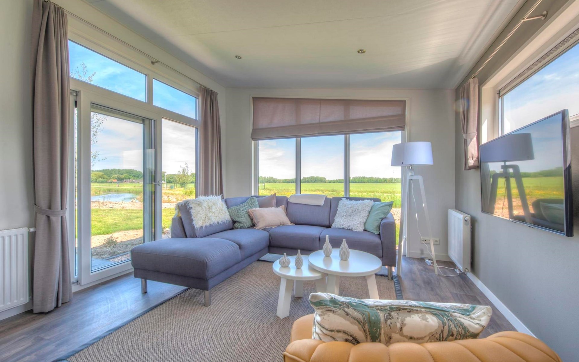 The Pavilion 6 is a ground floor, detached chalet for 6 persons. In the bright living room you will find a sitting area and television. The kitchen is equipped with a dishwasher, electric kettle, microwave and a coffee machine. In the holiday home you will find 3 bedrooms, each with 2 single beds or a bunk bed. In addition, the house has a bathroom with shower and toilet. Through the sliding doors in the living room you can step onto the terrace with garden furniture. You can park 1 car at the house and there is free WiFi.
