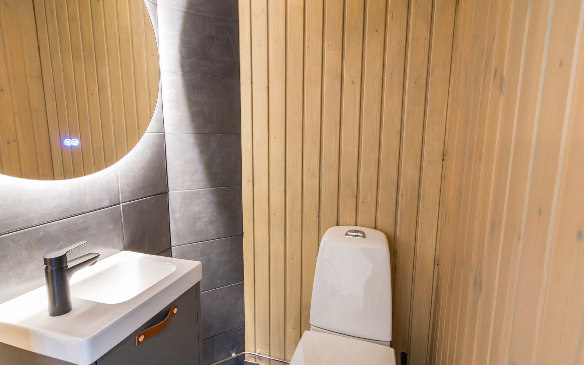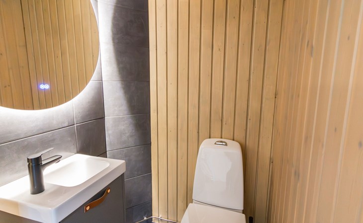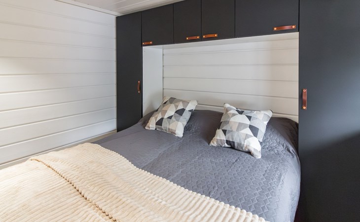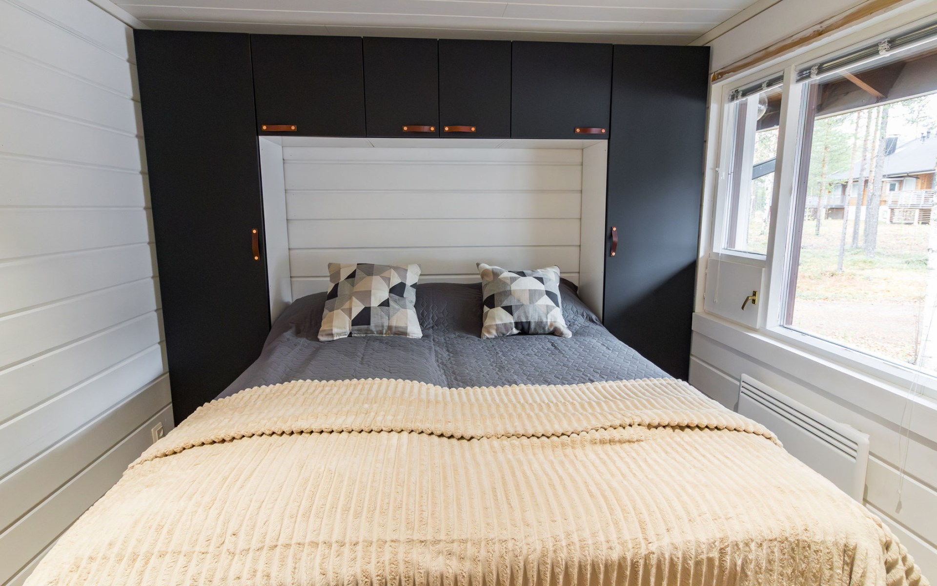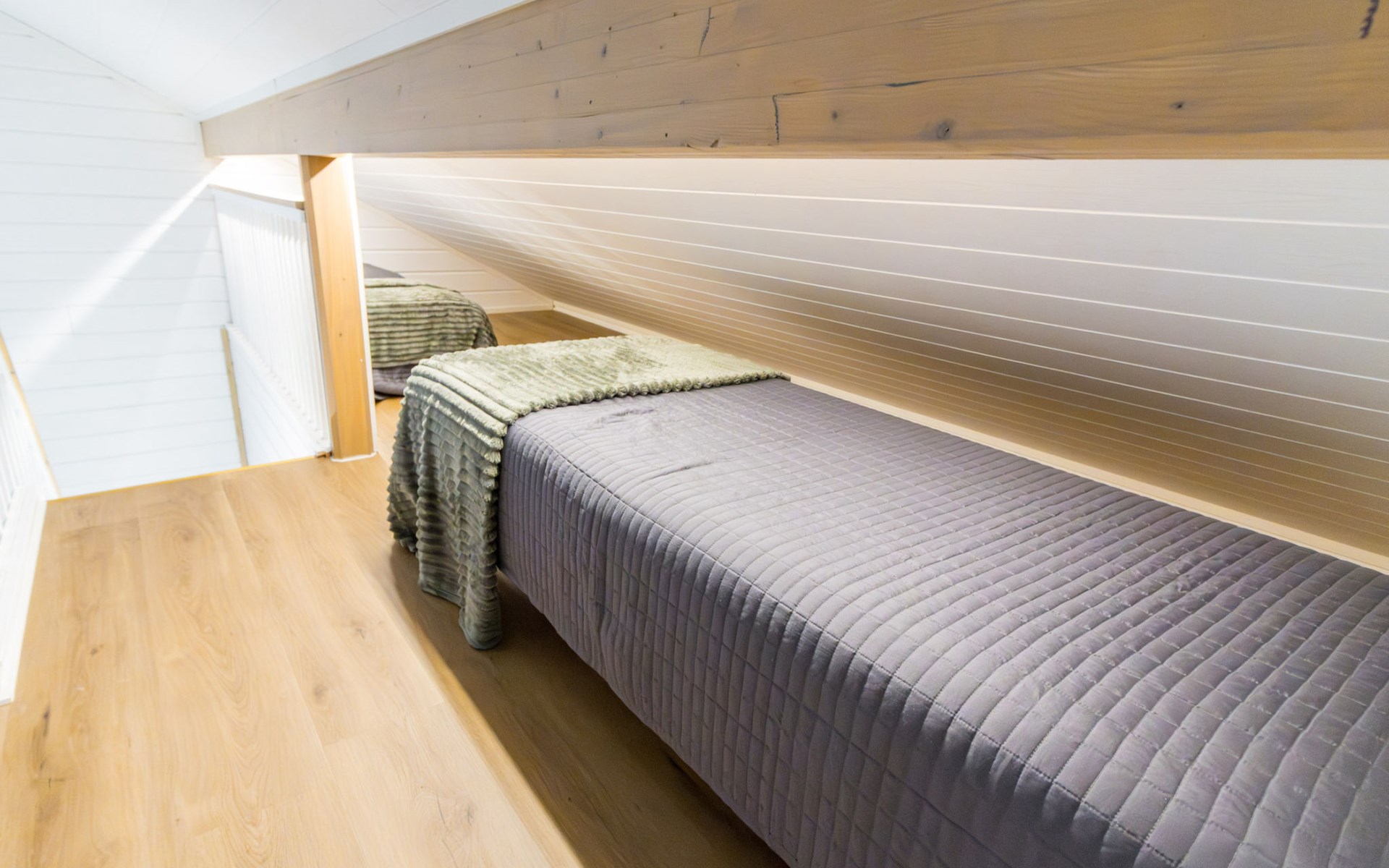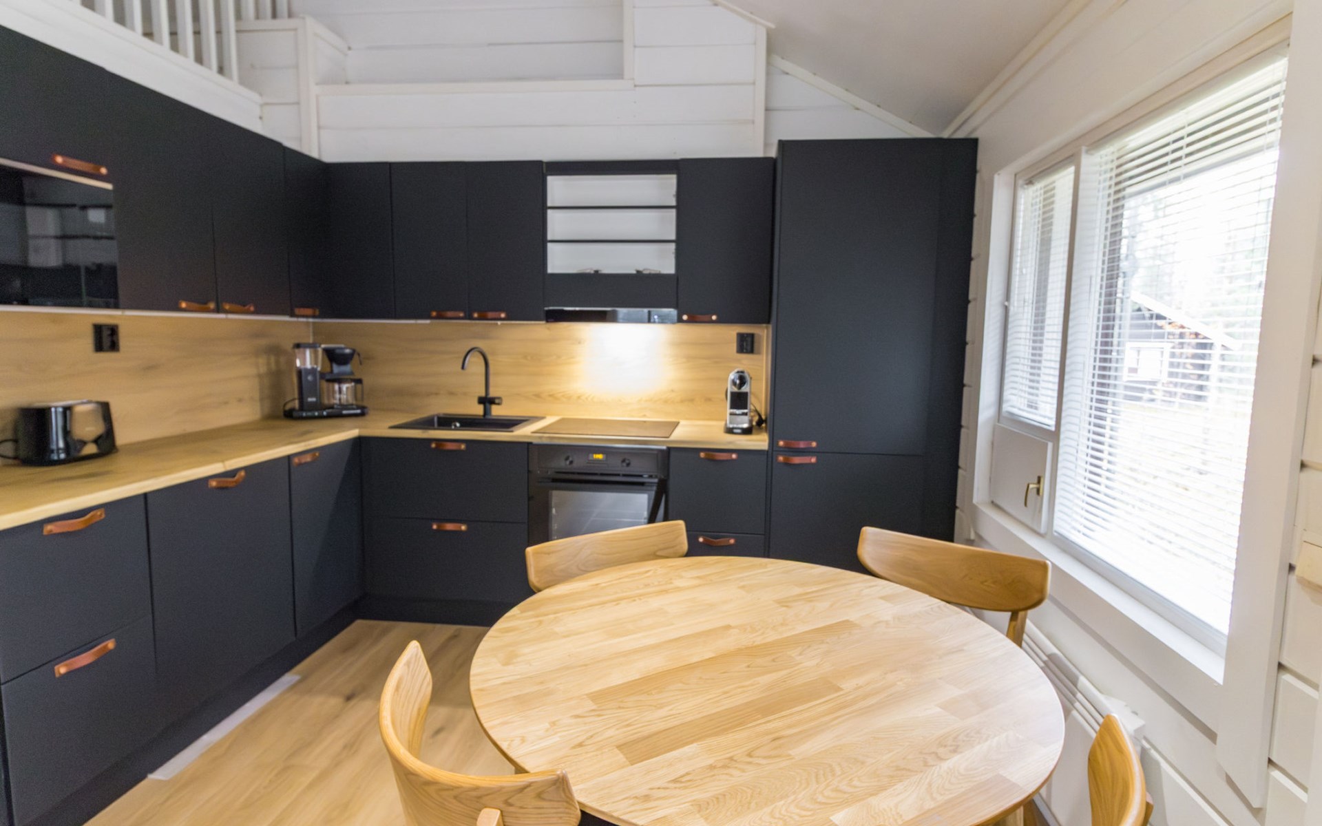 The log semi-detached house was originally built in 1990, but completely renovated in 2025. The living room includes a kitchenette. The bedroom has a 160 cm double bed, and the loft has two single beds (80 cm wide each). The apartment also features an electric sauna, a washroom, and a separate WC.