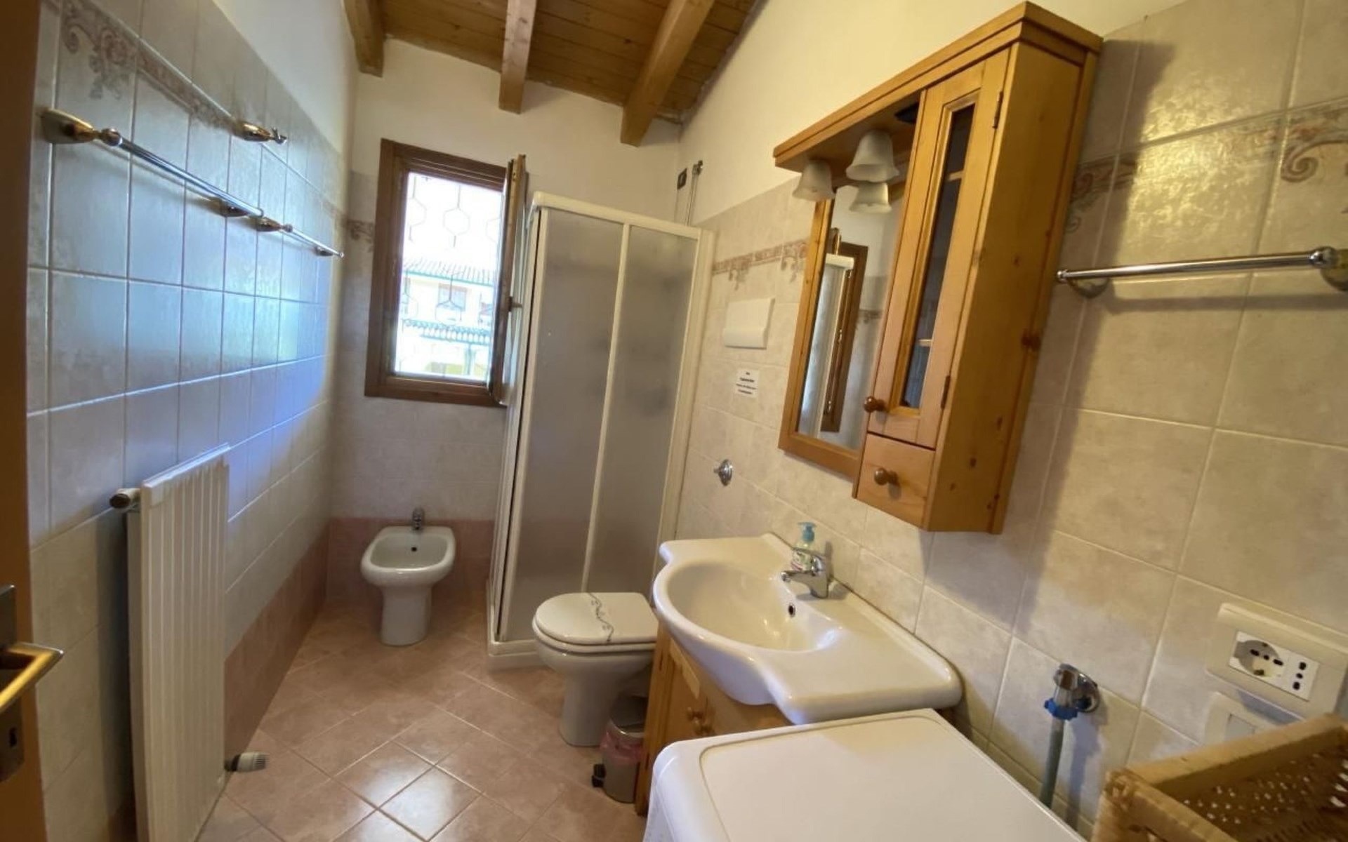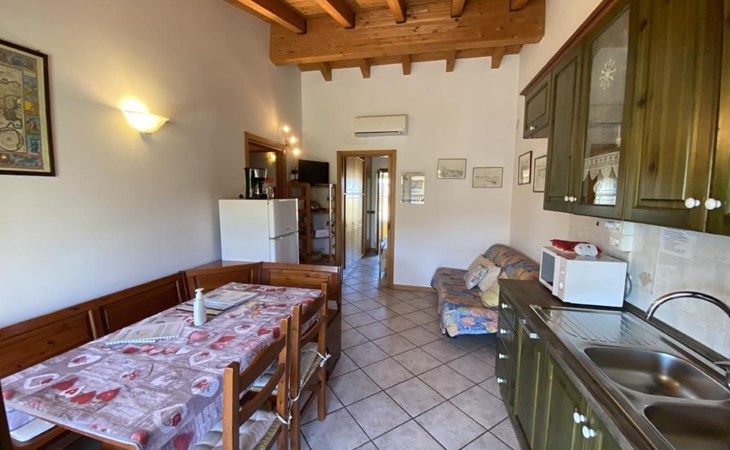 Inside, you will find a lovingly furnished flat with two comfortable bedrooms, one with a double bed and another with bunk beds, ideal for your children. An elegant bathroom with shower, WC, bidet and washbasin is at your disposal. The living room is equipped with a practical kitchenette that leaves nothing to be desired: satellite TV with international channels, free WiFi, air conditioning, dishwasher, washing machine, hairdryer and a variety of kitchen appliances will enrich your stay and provide the comfort of your home.