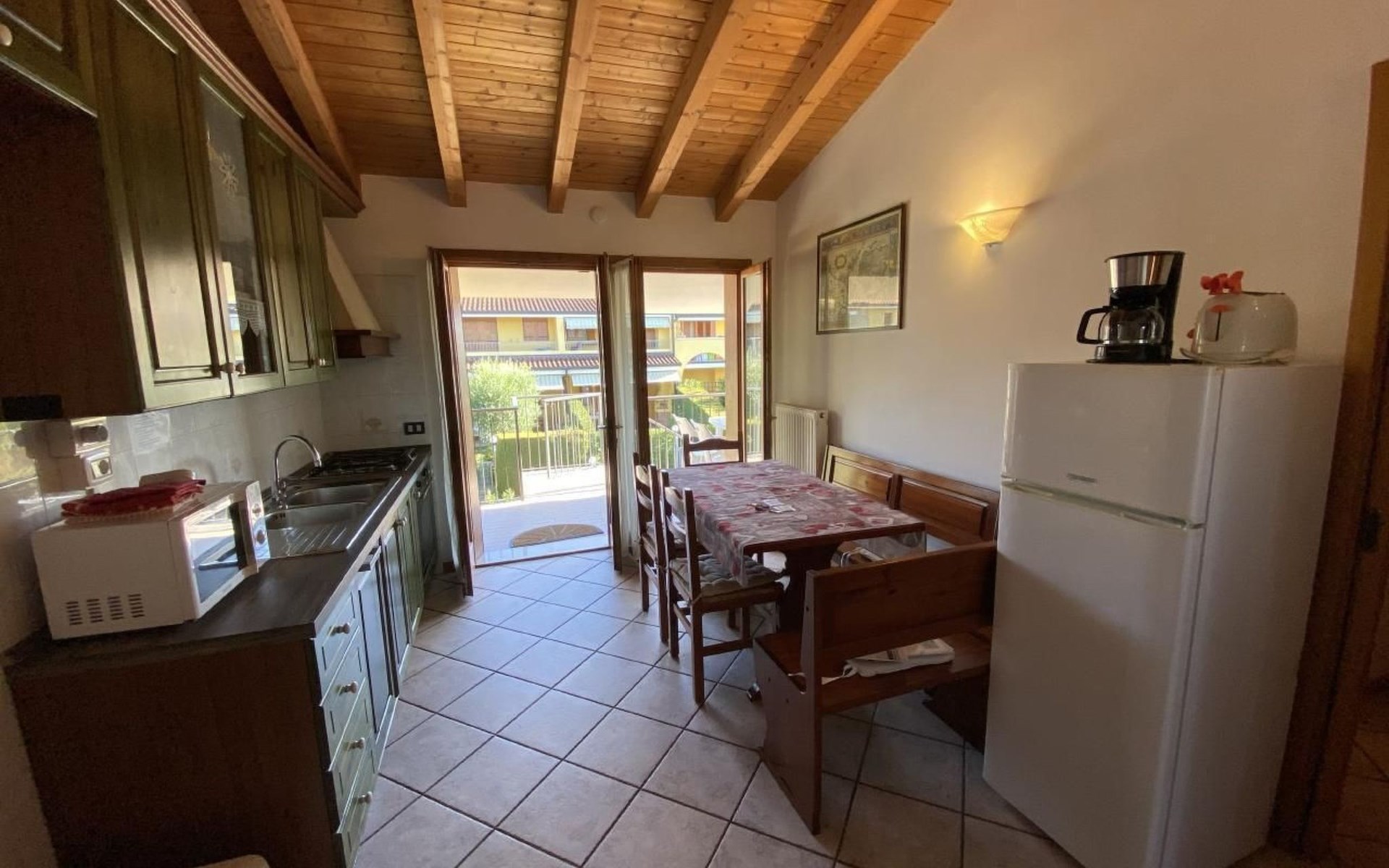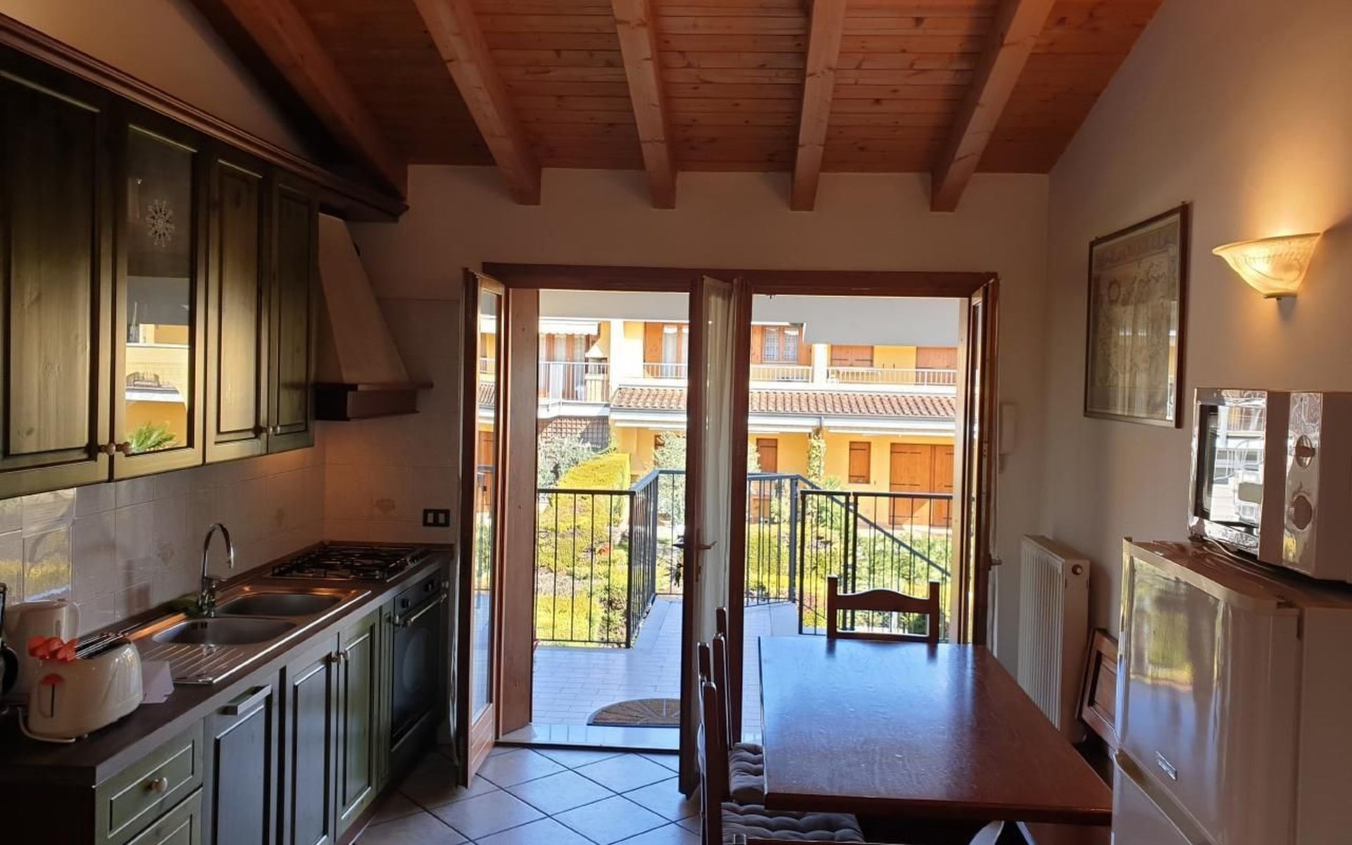 Situated just a few minutes' walk from the centre of Colá, there is a supermarket, bakery, bank, post office, hairdresser's and numerous restaurants within easy reach. The holiday flat is the ideal starting point for exploring: In the immediate vicinity are famous amusement parks such as Gardaland, Caneva Aquapark and Movieland, as well as the Colá thermal park. The charming towns of Lazise, Garda, Bardolino, Peschiera, Sirmione, Valeggio and Verona are within easy reach and offer cultural and natural attractions.